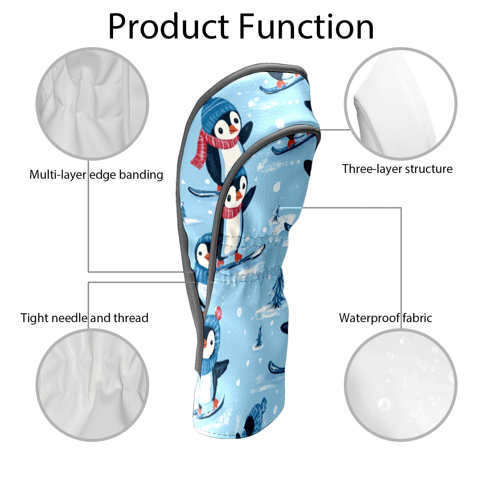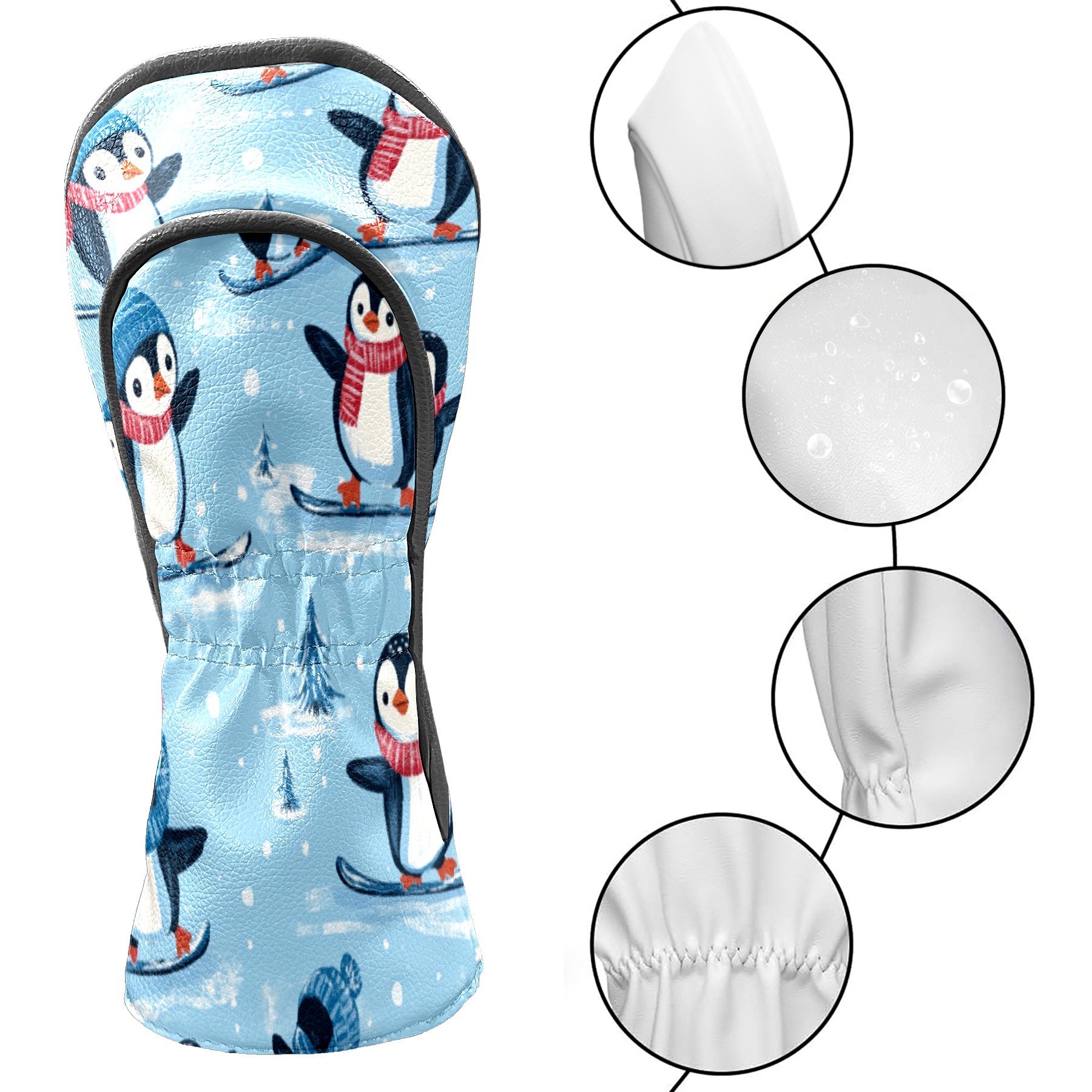 Golf Club Head Covers for Driver and Fairway Woods, Waterproof Leather Headcovers for Golf Clubs, Ideal Golf Accessories Gift for Men Women (Penguins)