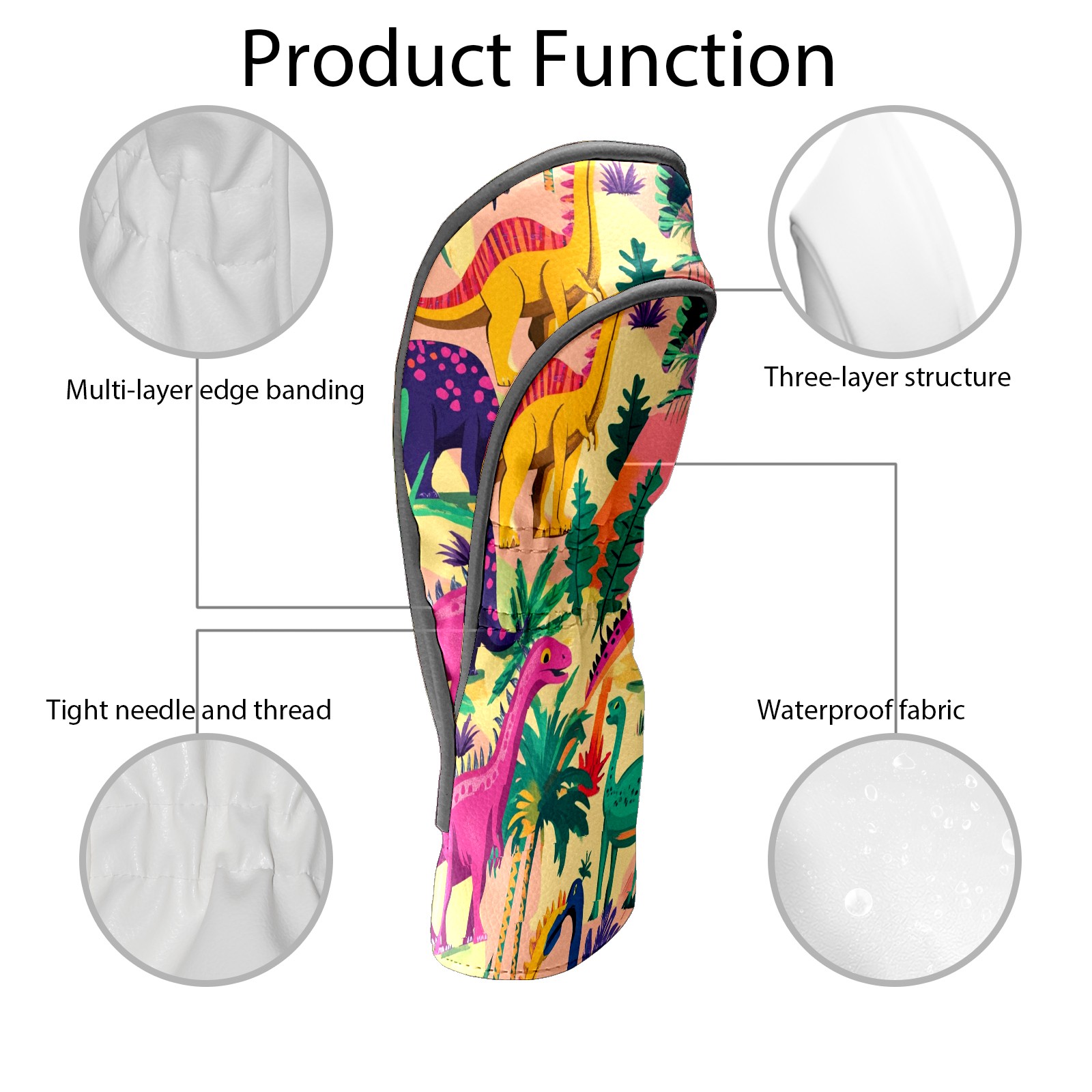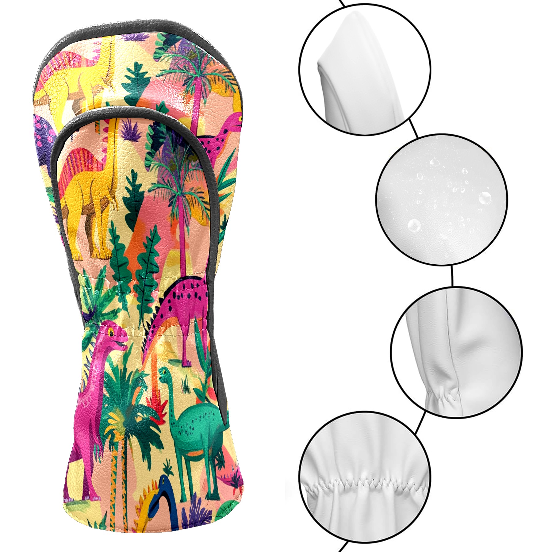 Golf Club Head Covers for Driver and Fairway Woods, Waterproof Leather Headcovers for Golf Clubs, Ideal Golf Accessories Gift for Men Women (Dinosaurs)