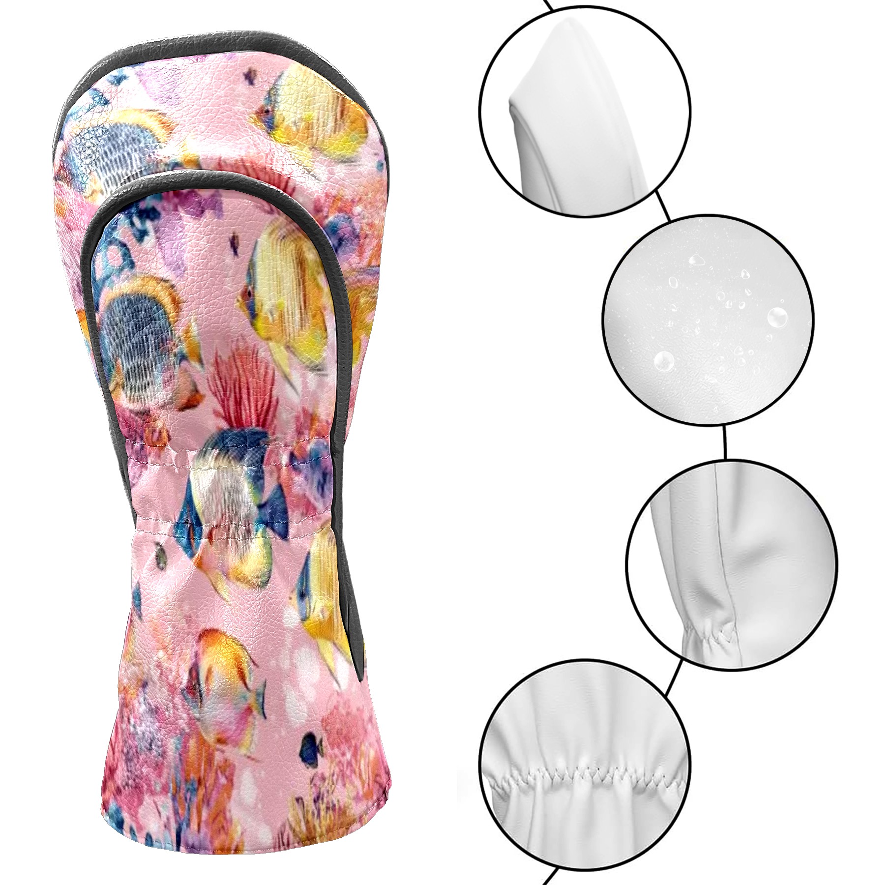 Golf Club Head Covers for Driver and Fairway Woods, Waterproof Leather Headcovers for Golf Clubs, Ideal Golf Accessories Gift for Men Women (Tropical Fish)