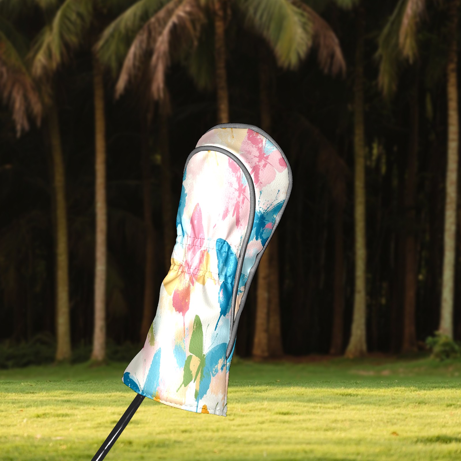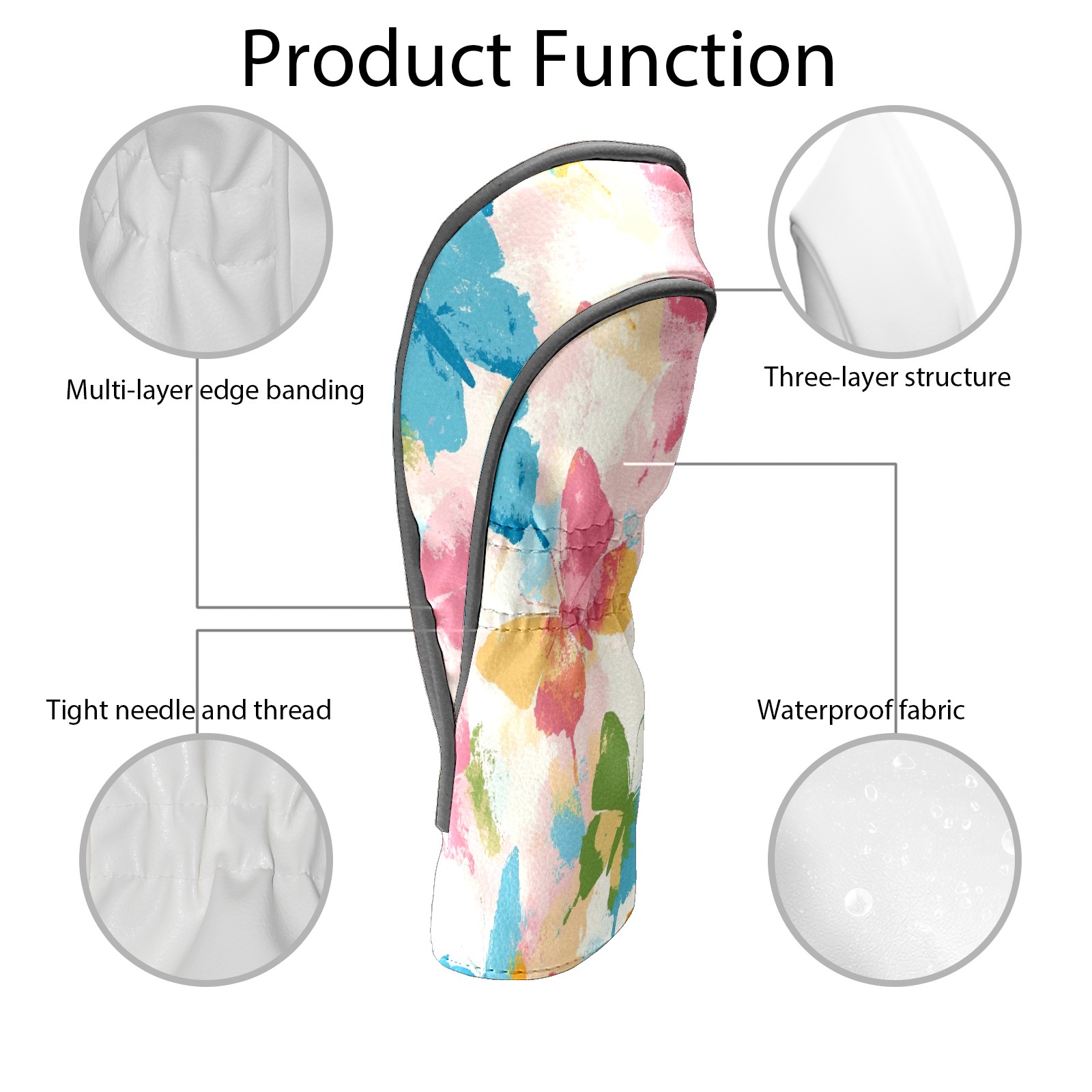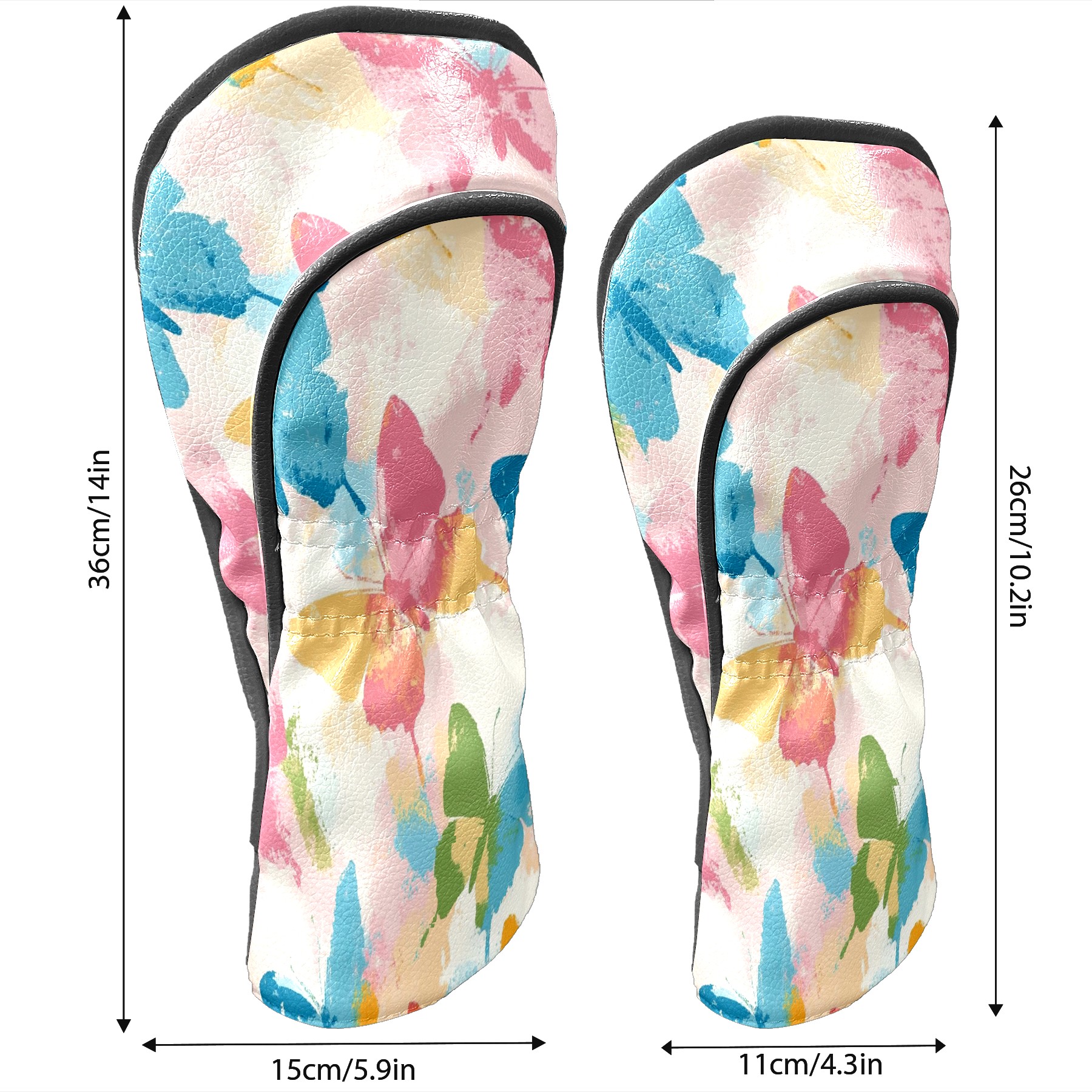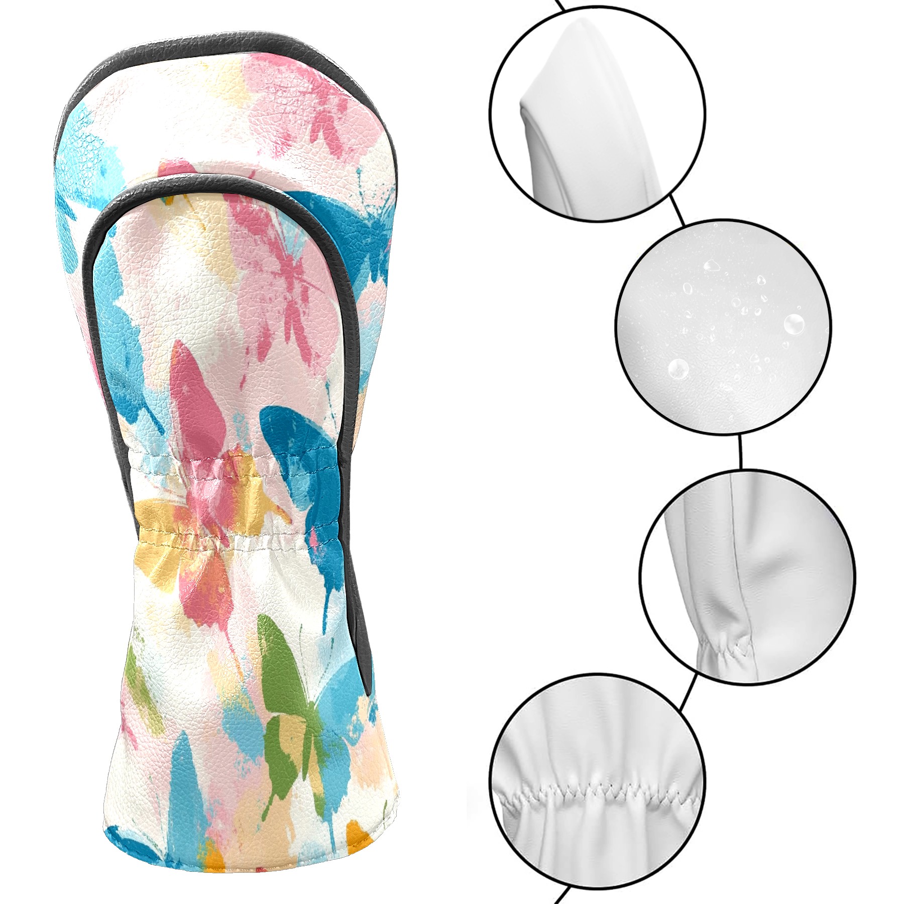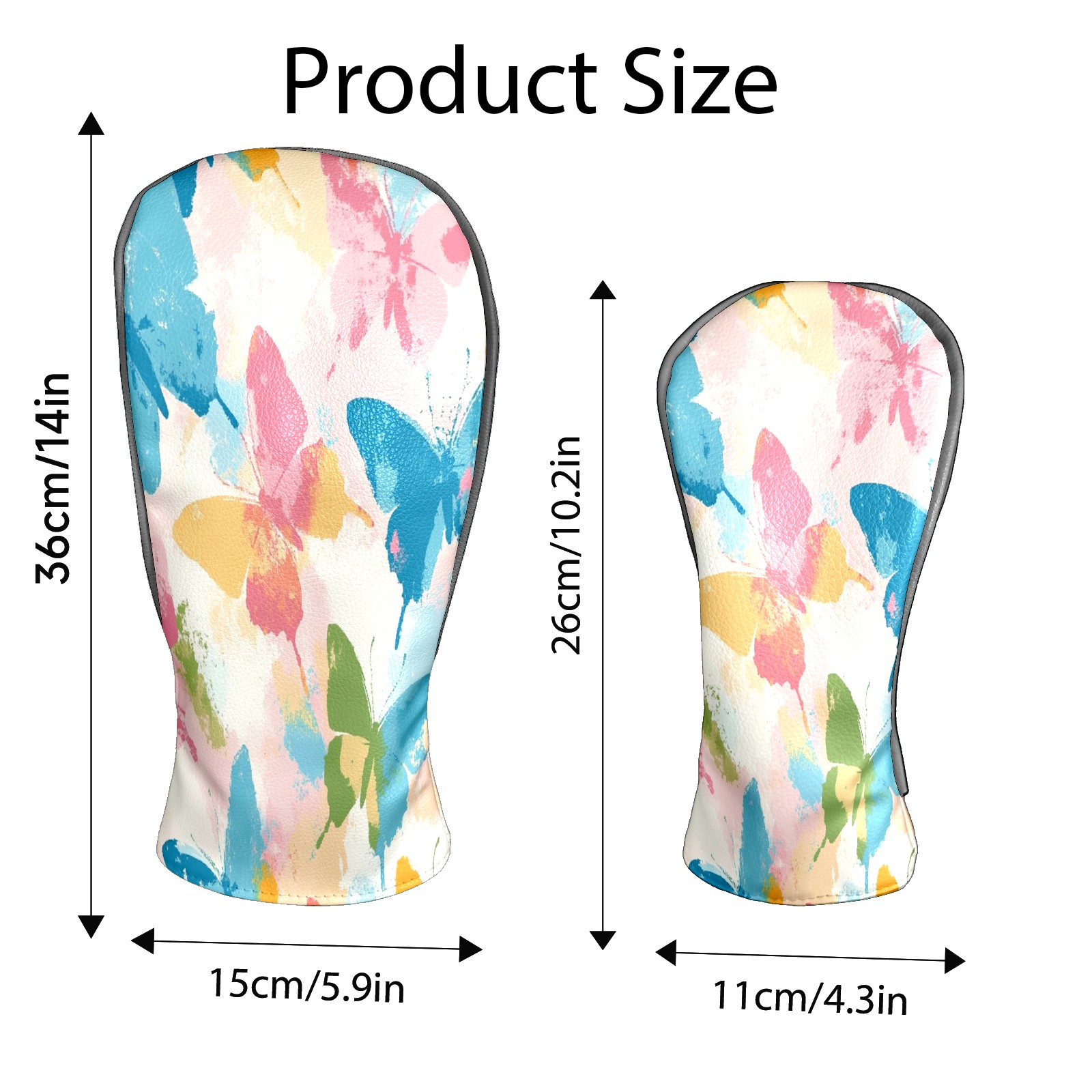 Golf Club Head Covers for Driver and Fairway Woods, Waterproof Leather Headcovers for Golf Clubs, Ideal Golf Accessories Gift for Men Women (Butterflies In Pastel Colors)