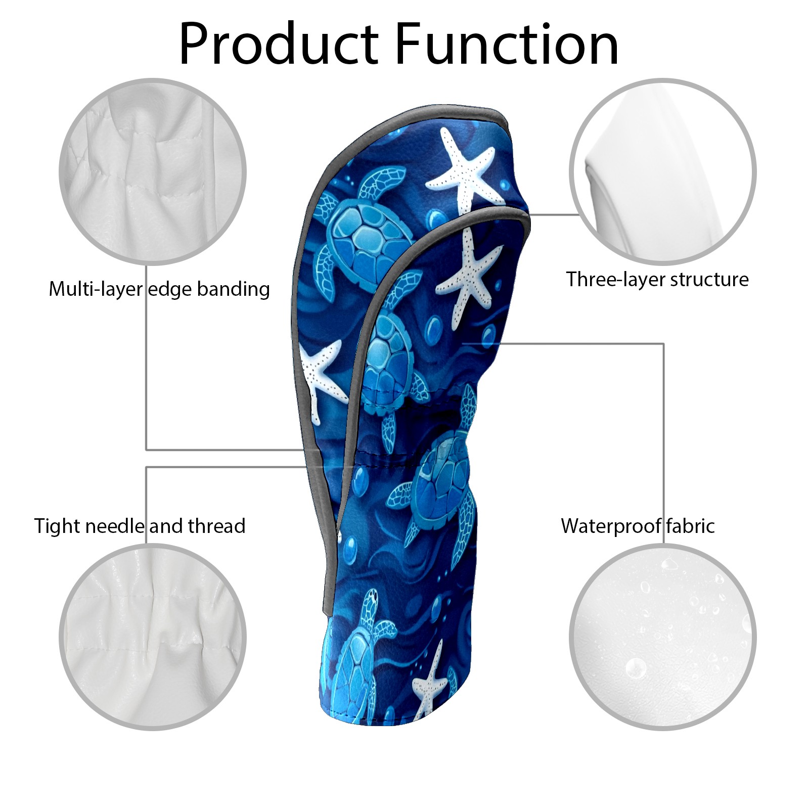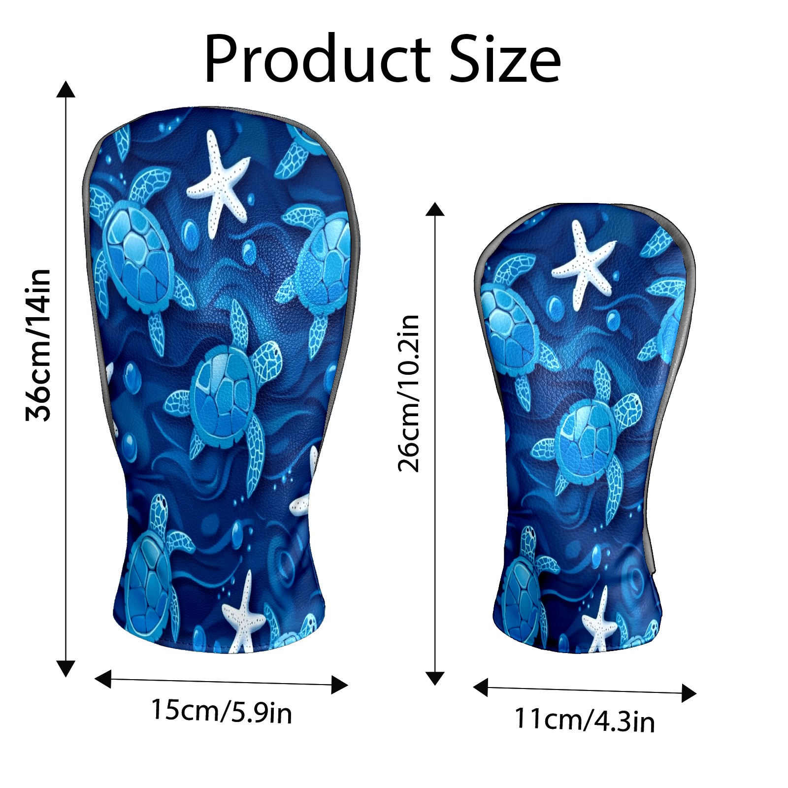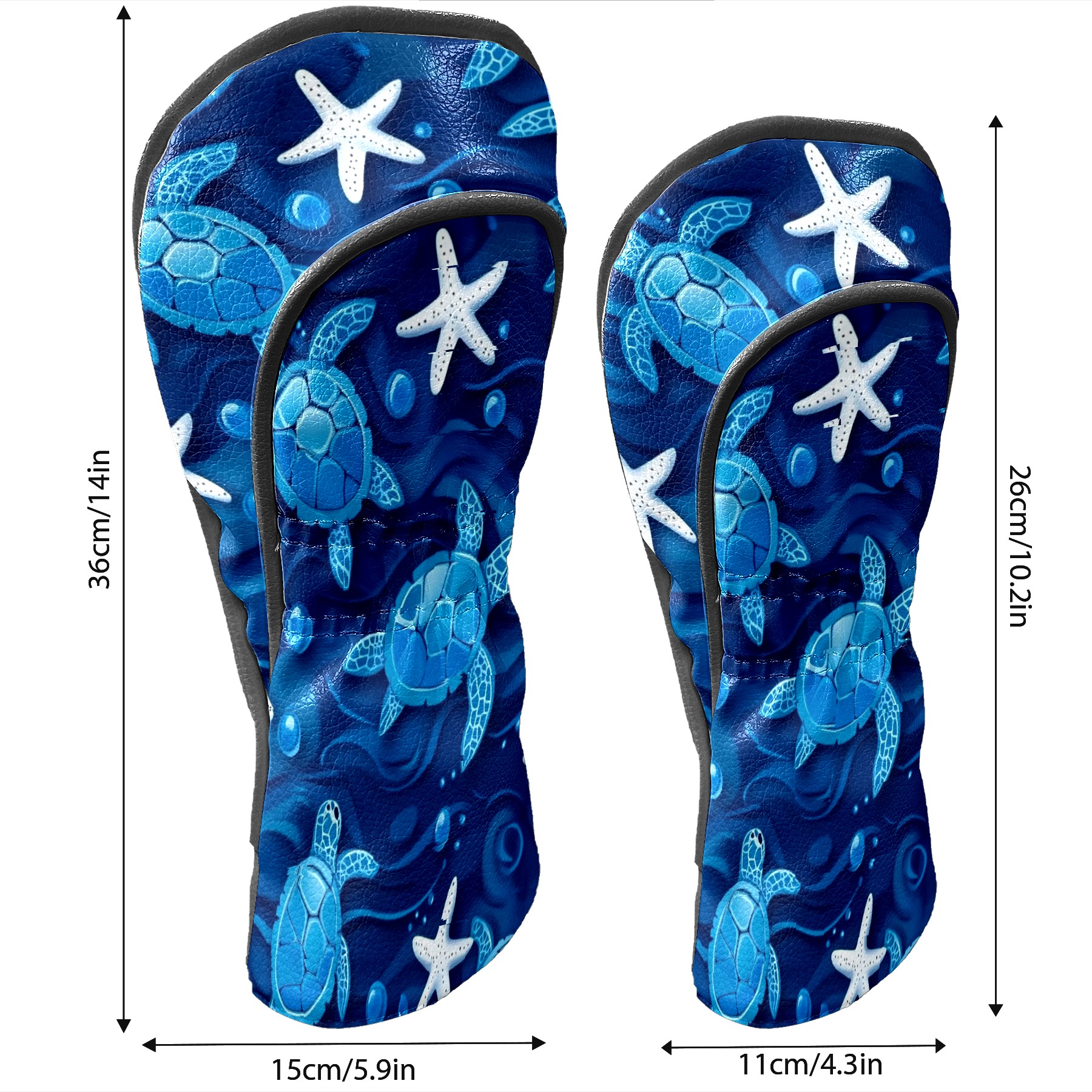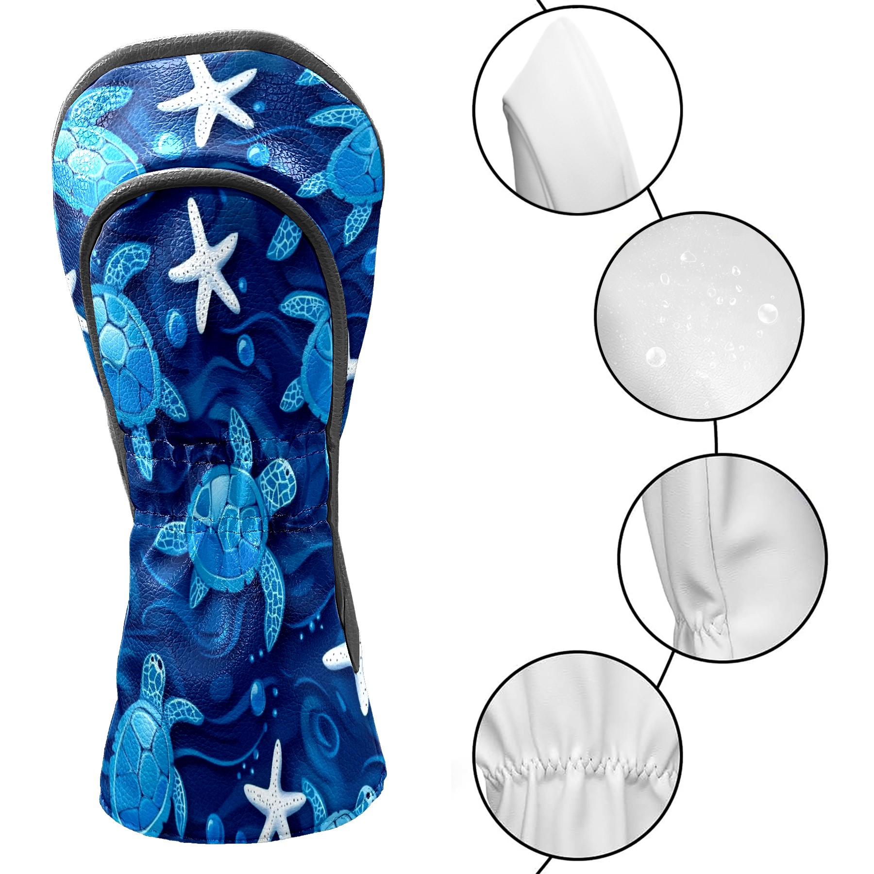 Golf Club Head Covers for Driver and Fairway Woods, Waterproof Leather Headcovers for Golf Clubs, Ideal Golf Accessories Gift for Men Women (Blue Sea Turtles And White Starfish)