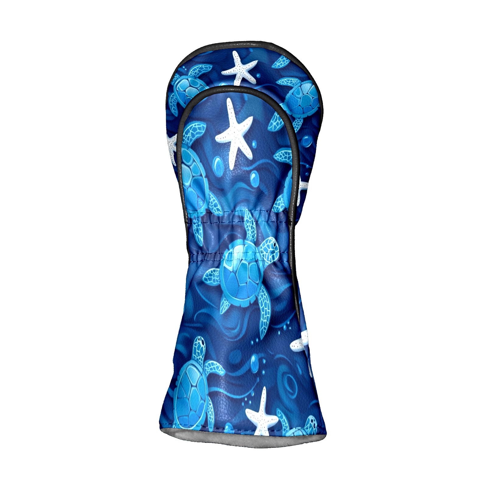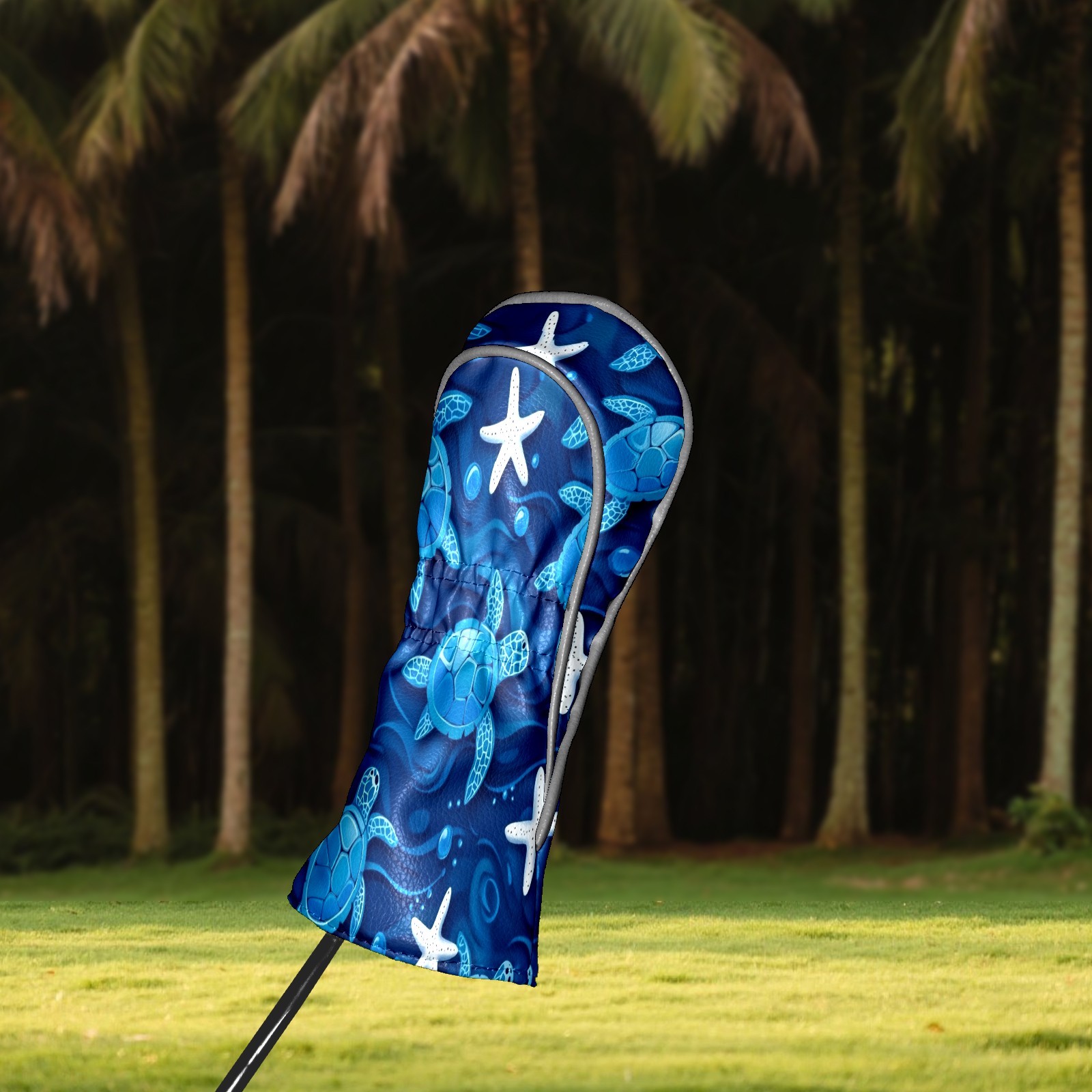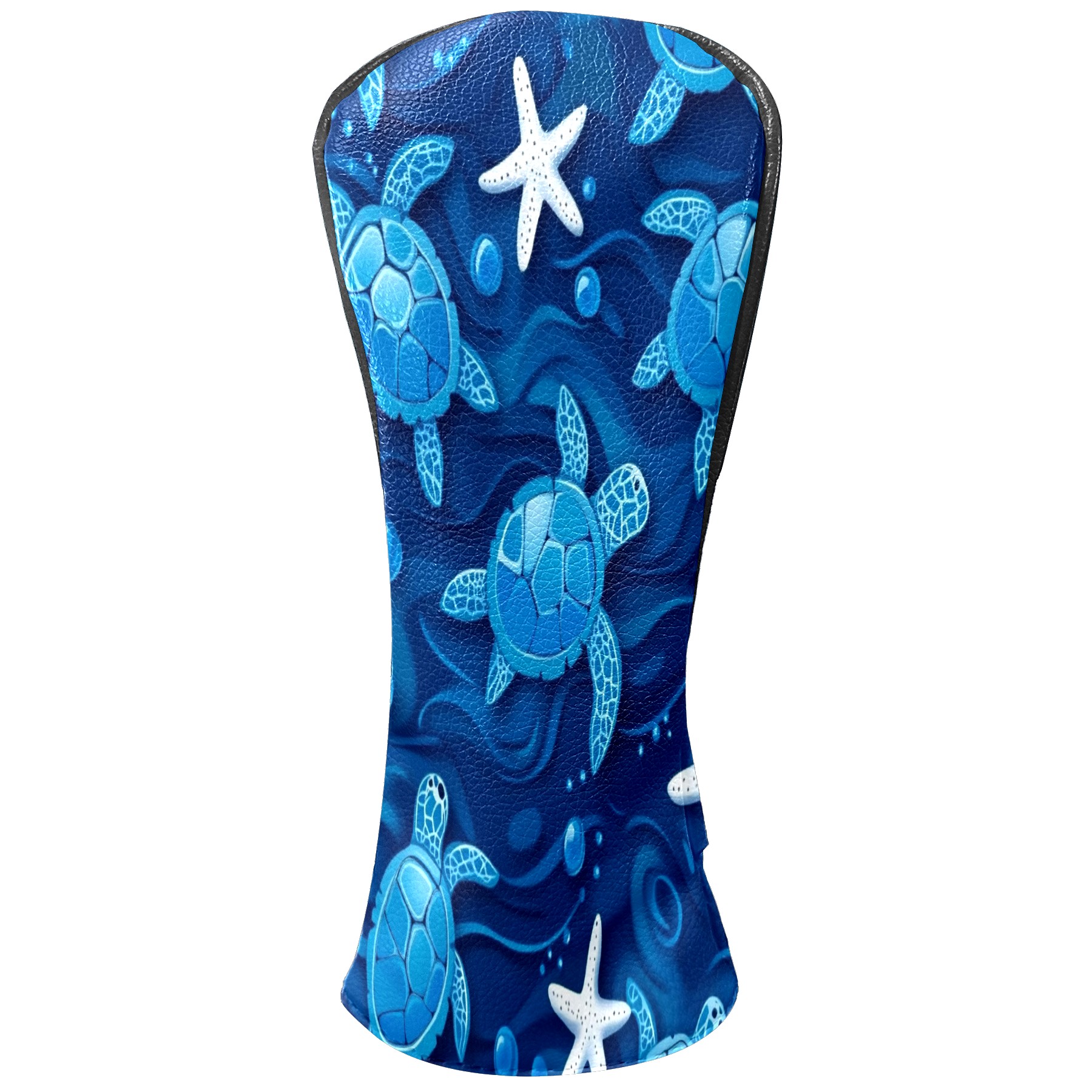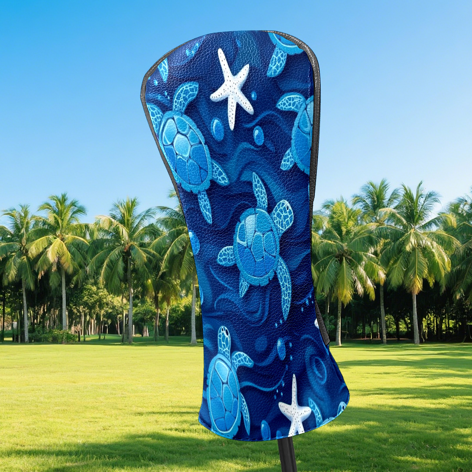 Golf Club Head Covers for Driver and Fairway Woods, Waterproof Leather Headcovers for Golf Clubs, Ideal Golf Accessories Gift for Men Women (Blue Sea Turtles And White Starfish)