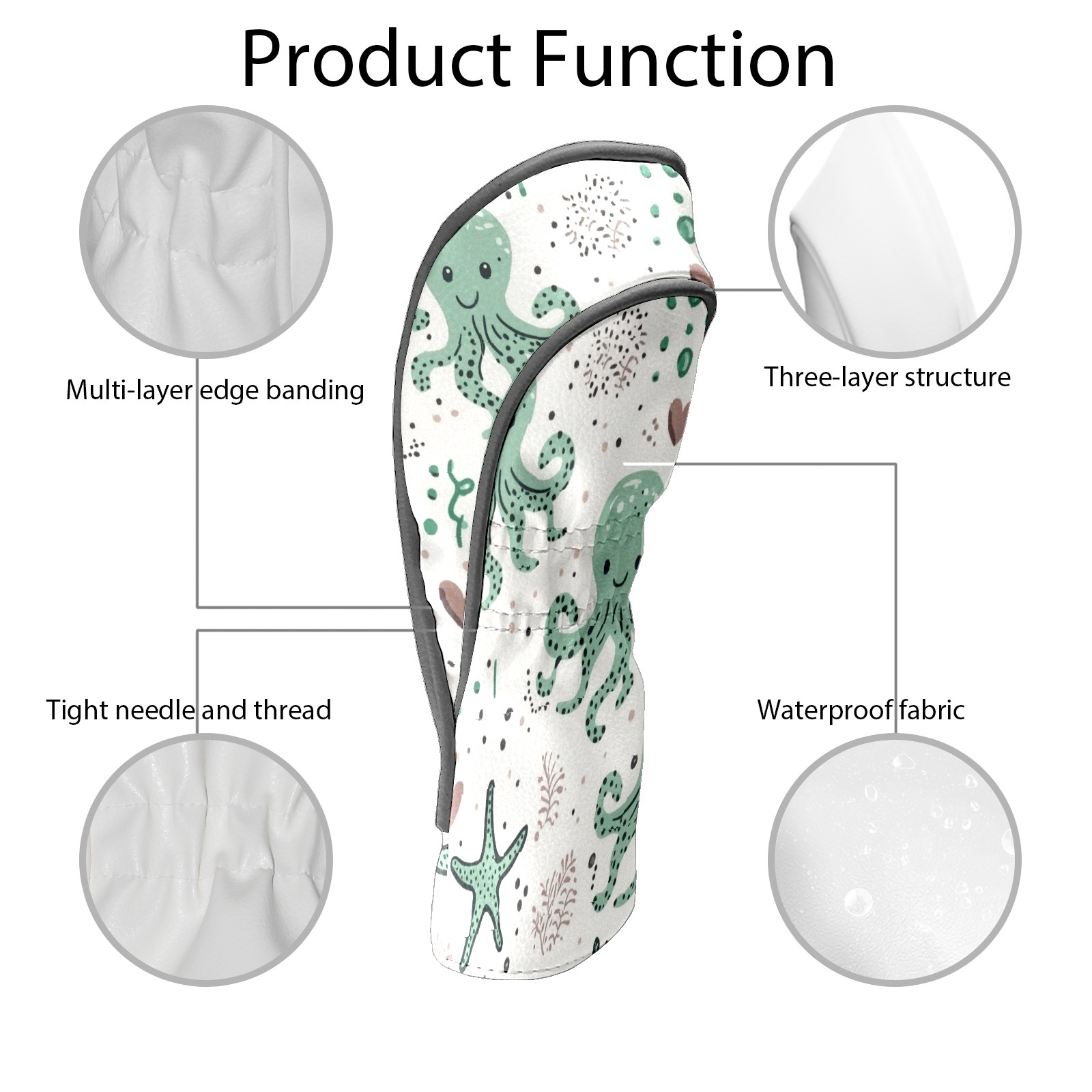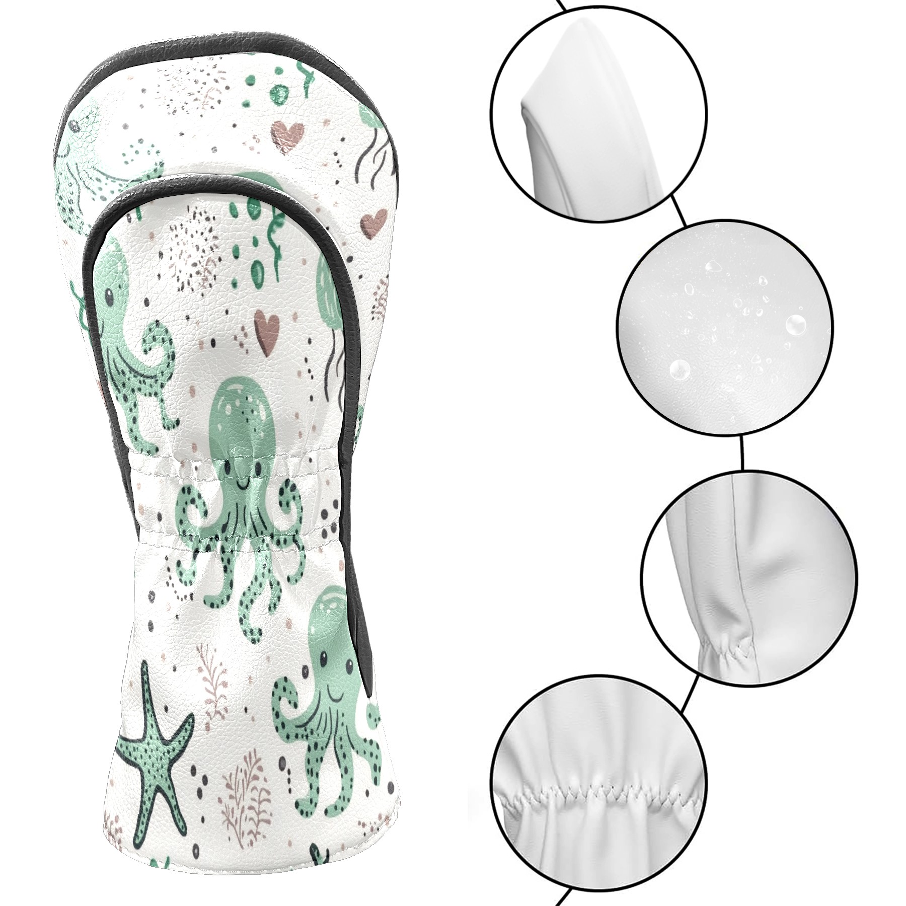 Golf Club Head Covers for Driver and Fairway Woods, Waterproof Leather Headcovers for Golf Clubs, Ideal Golf Accessories Gift for Men Women (Cute Octopuses)