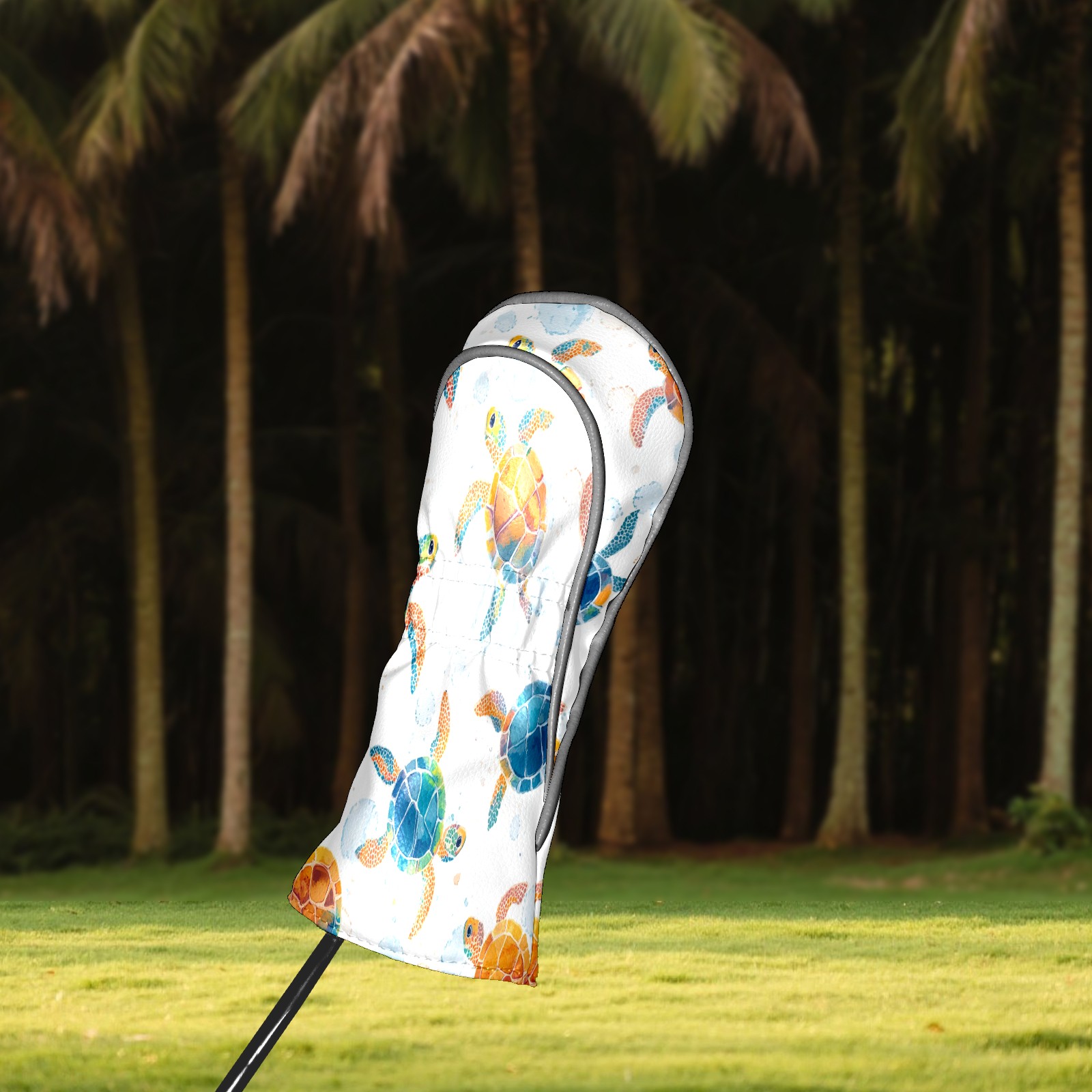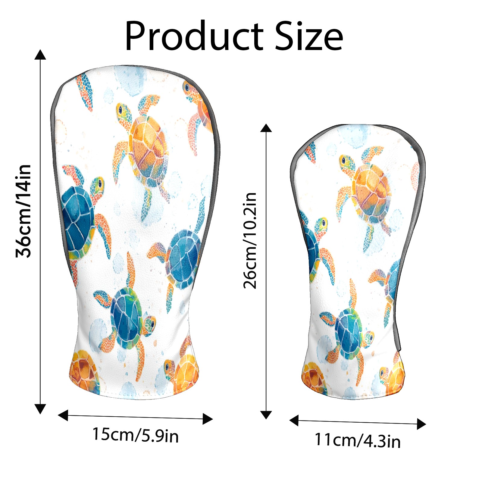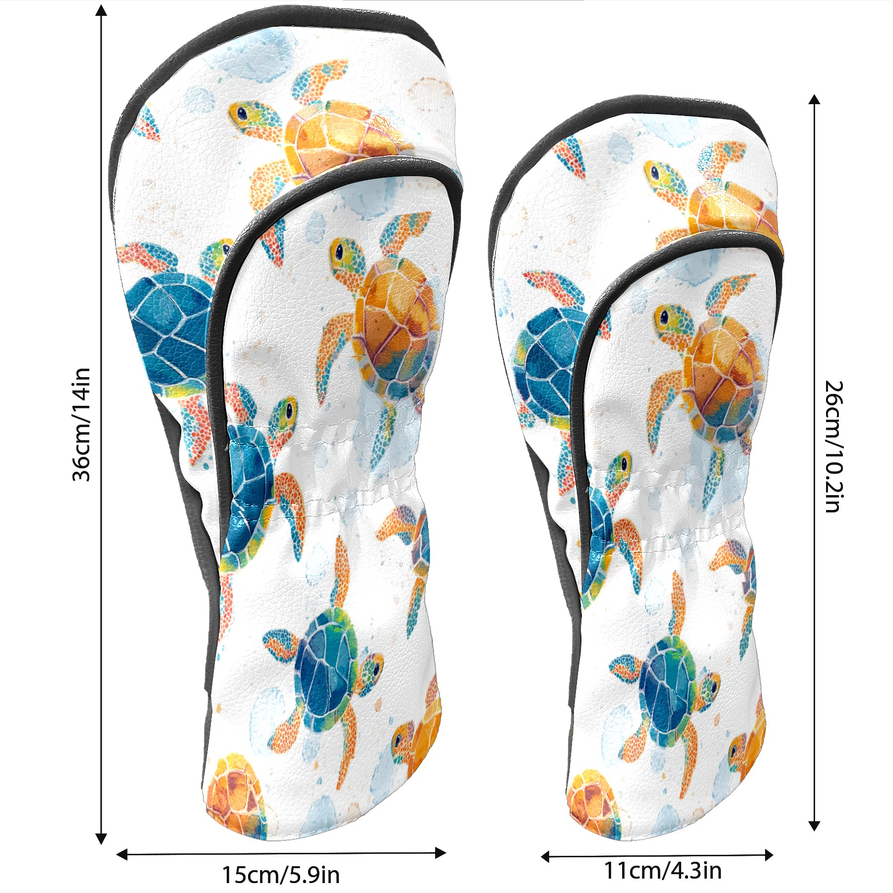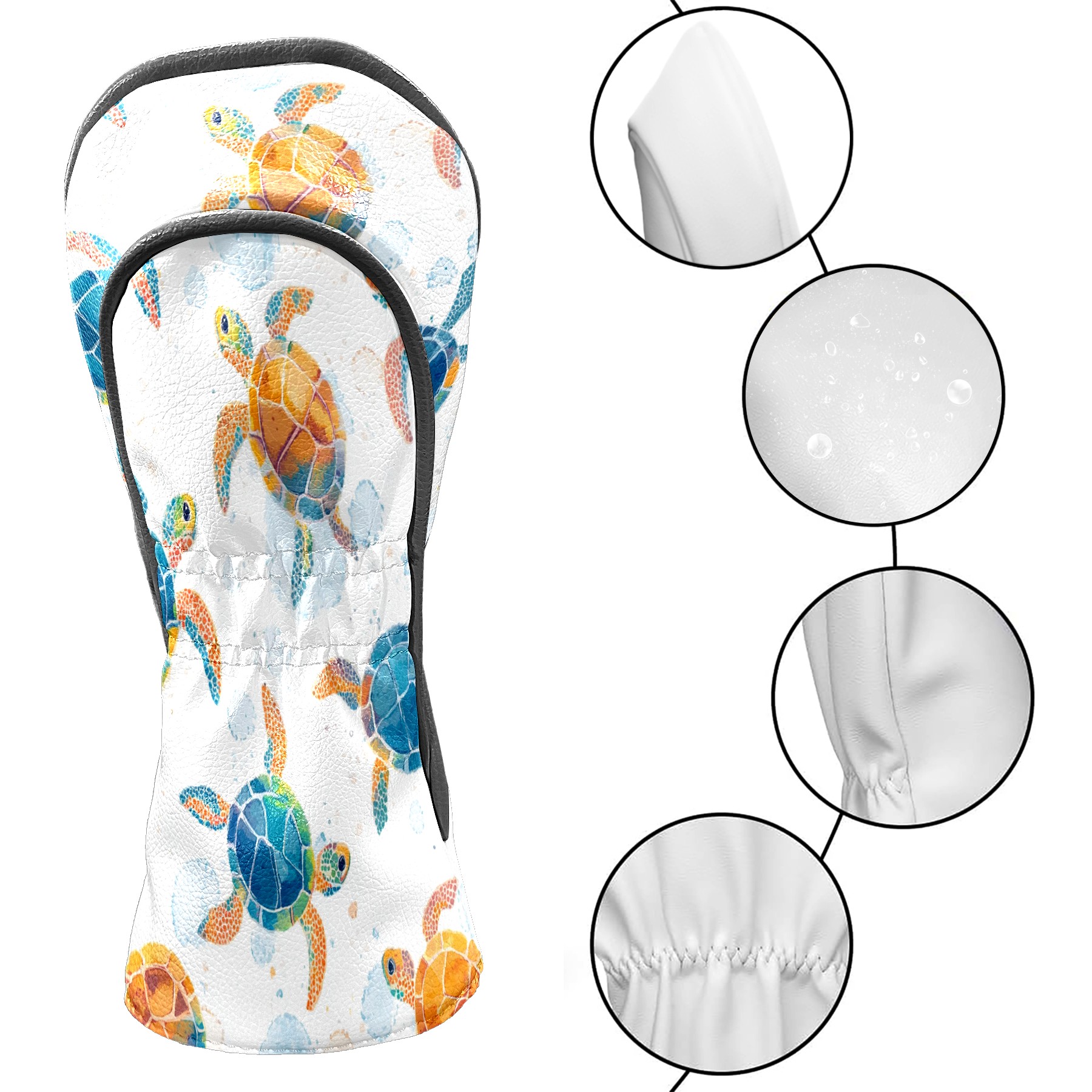 Golf Club Head Covers for Driver and Fairway Woods, Waterproof Leather Headcovers for Golf Clubs, Ideal Golf Accessories Gift for Men Women (Colorful Sea Turtles)