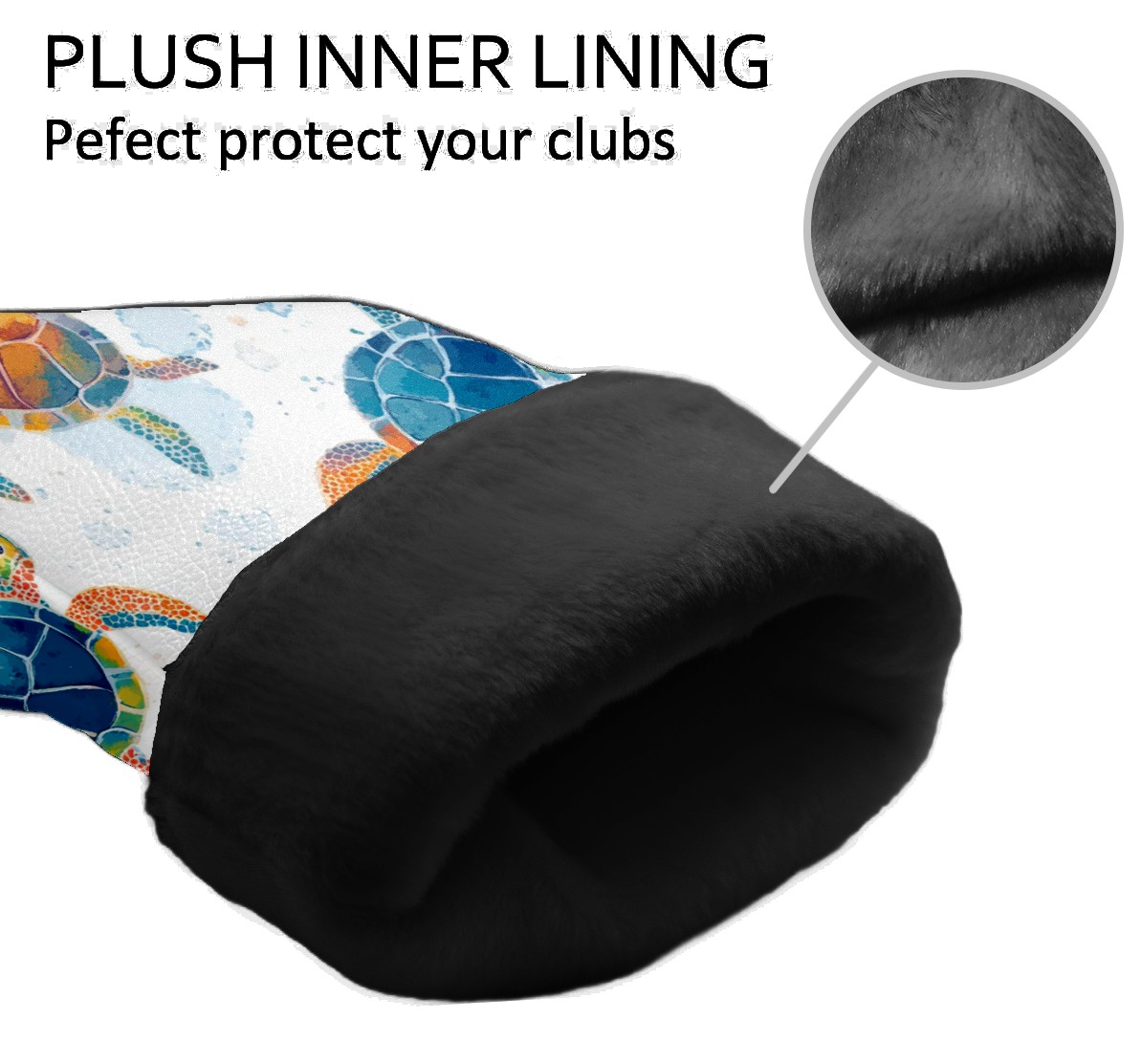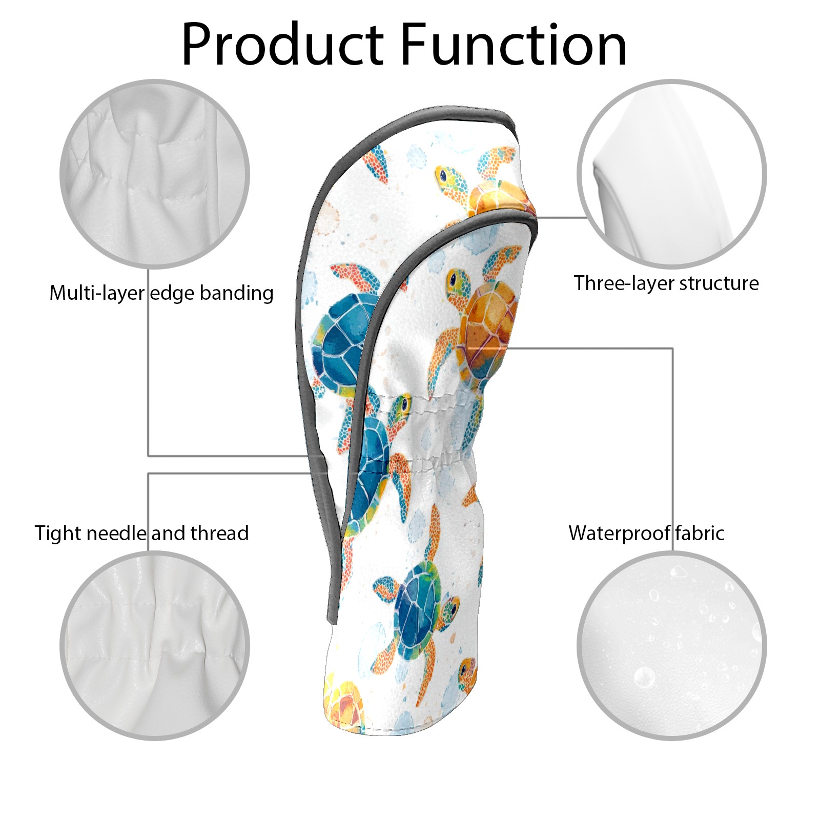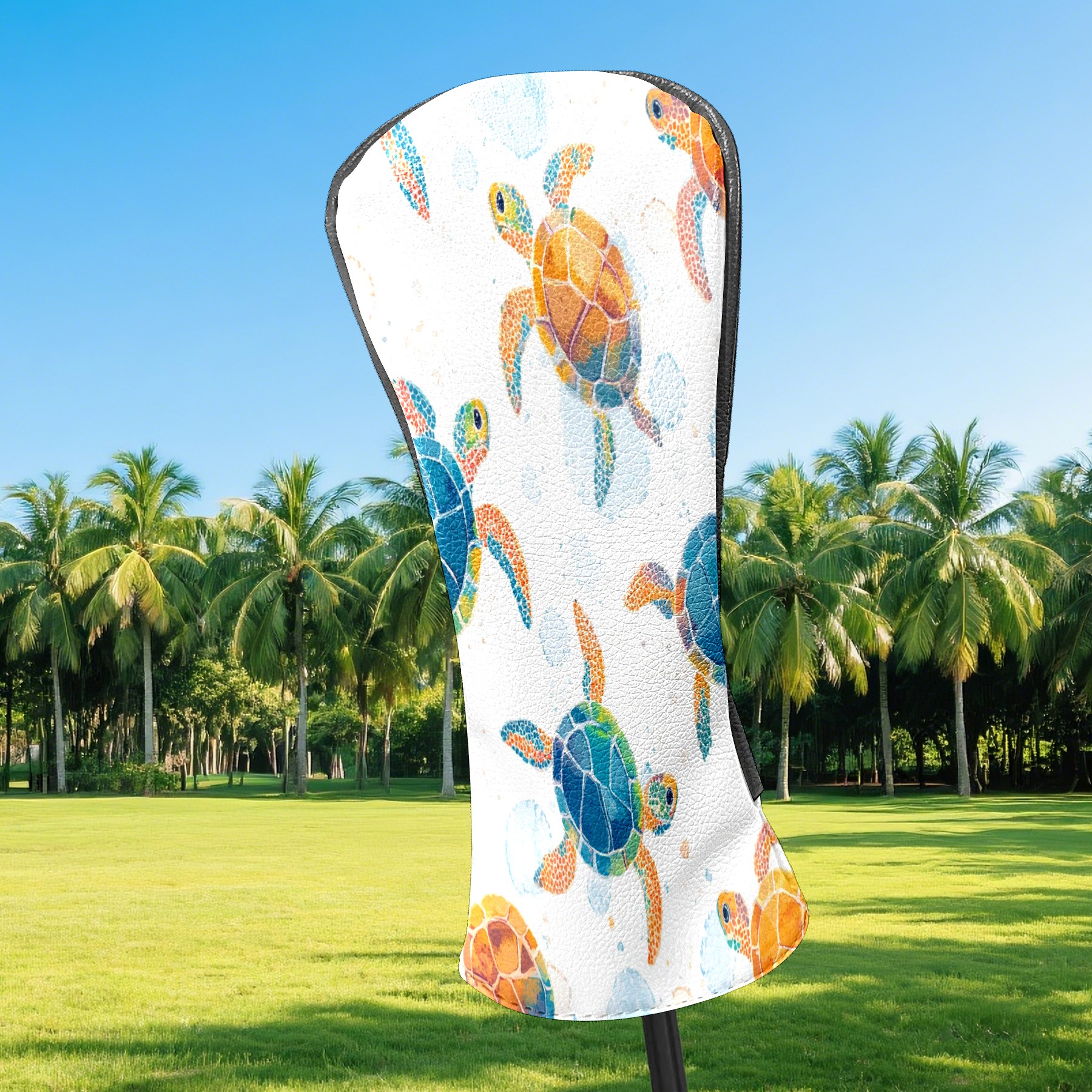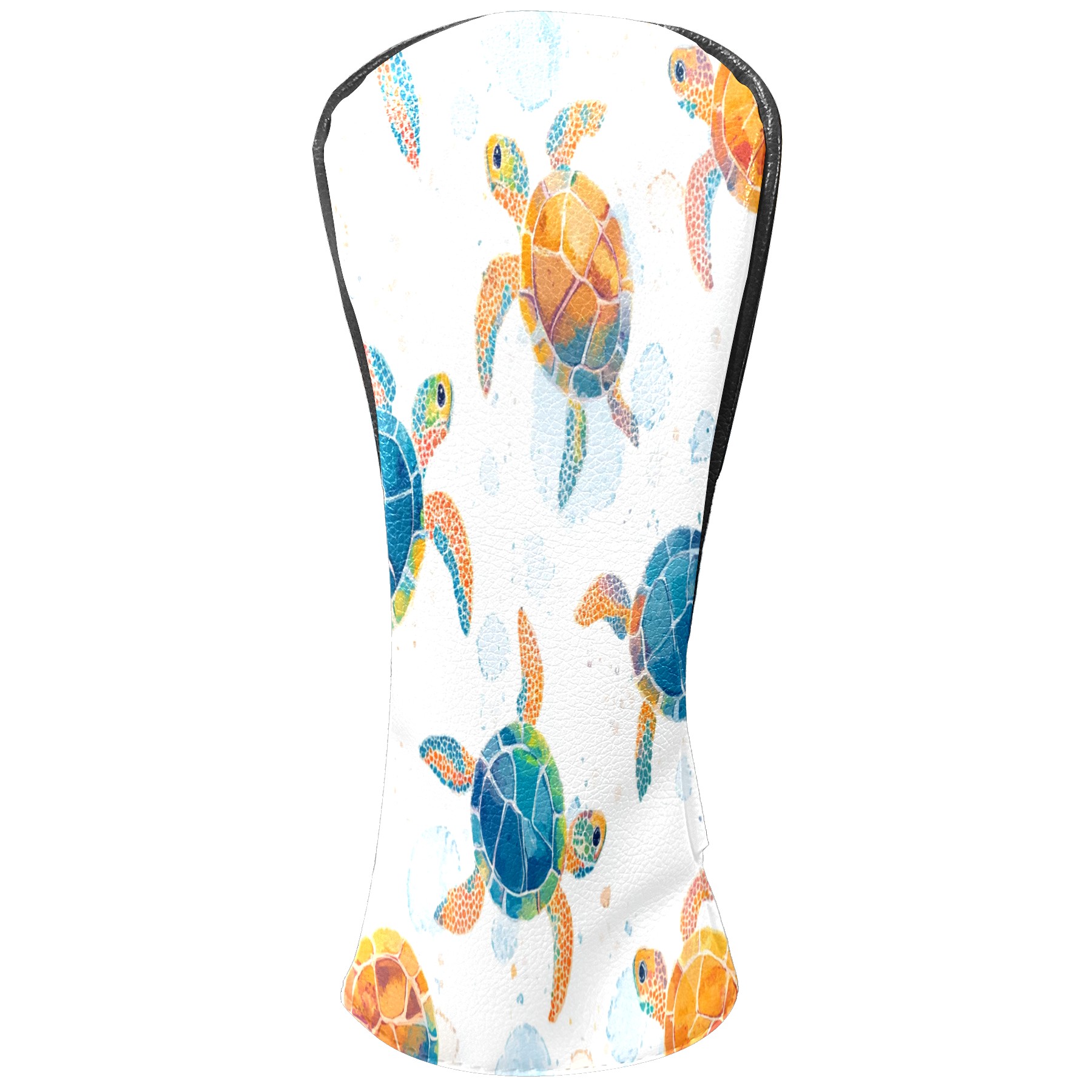 Golf Club Head Covers for Driver and Fairway Woods, Waterproof Leather Headcovers for Golf Clubs, Ideal Golf Accessories Gift for Men Women (Colorful Sea Turtles)