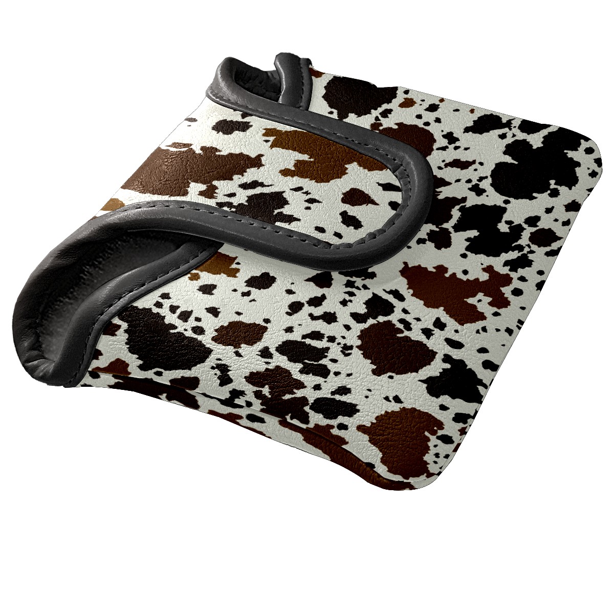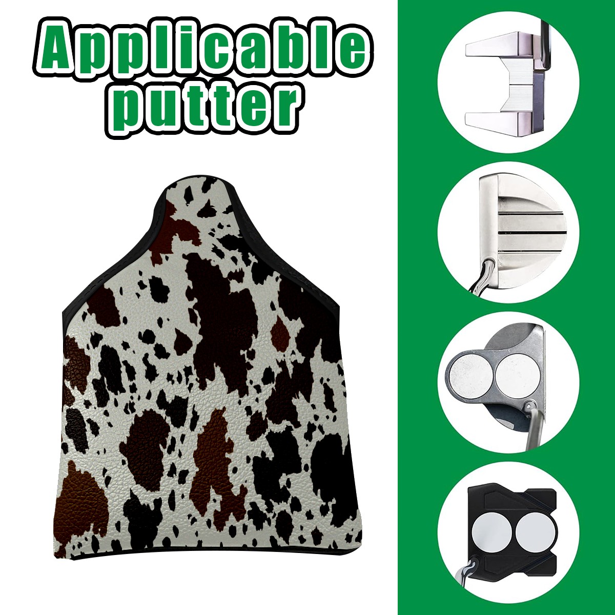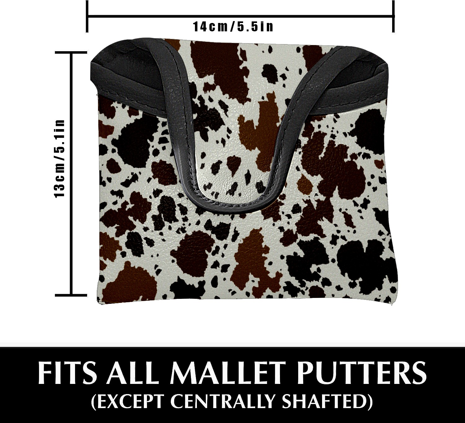 Mallet Putter Cover Magnetic PU Leather Golf Putter Headcover with Plush Lining, Mallet Putter Head Cover for Men Women Golf Club Covers (Brown And Black Cow Print)