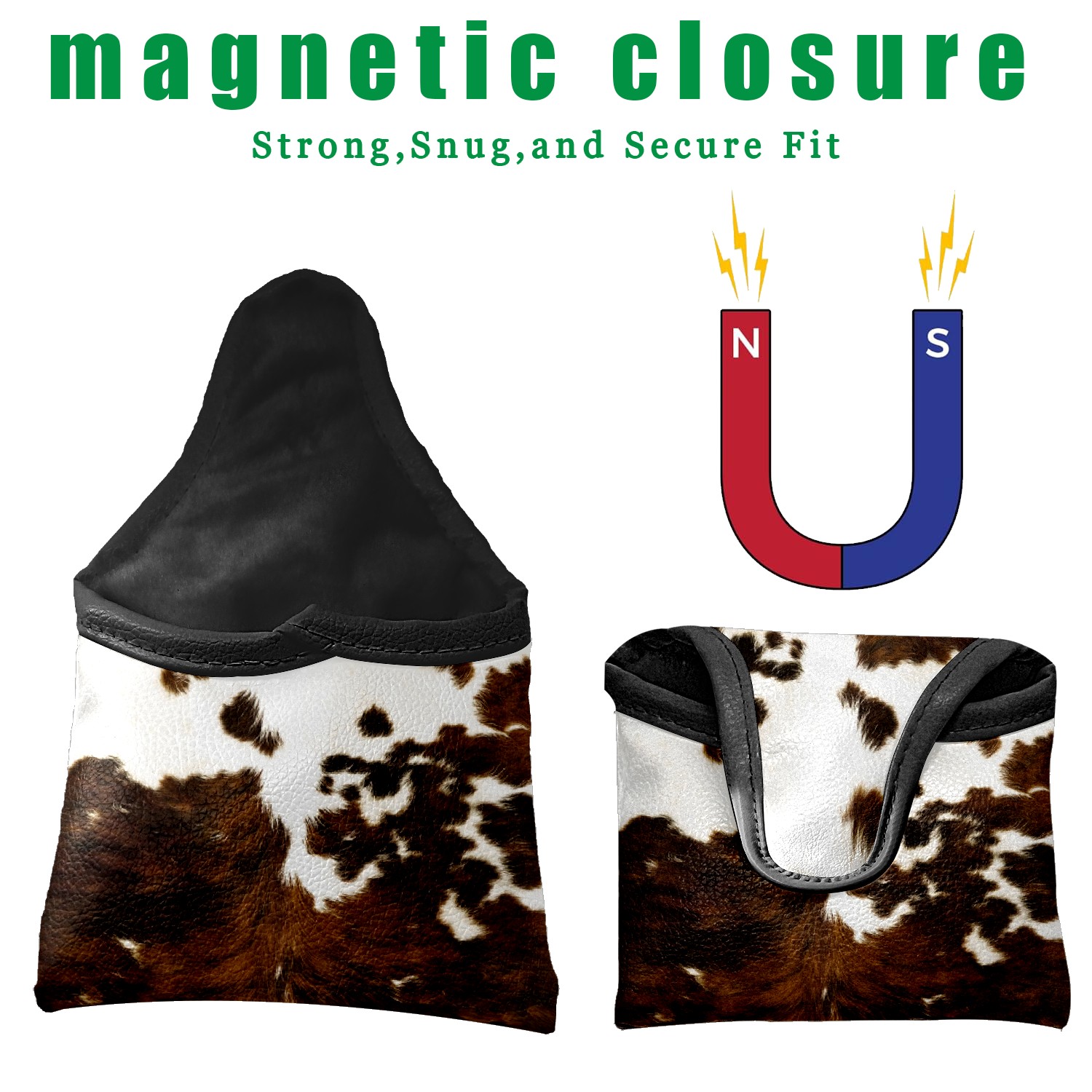 Mallet Putter Cover Magnetic PU Leather Golf Putter Headcover with Plush Lining, Mallet Putter Head Cover for Men Women Golf Club Covers (Brown Cowhide Print)
