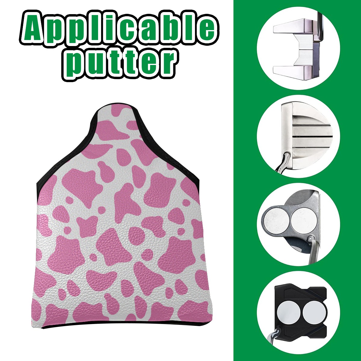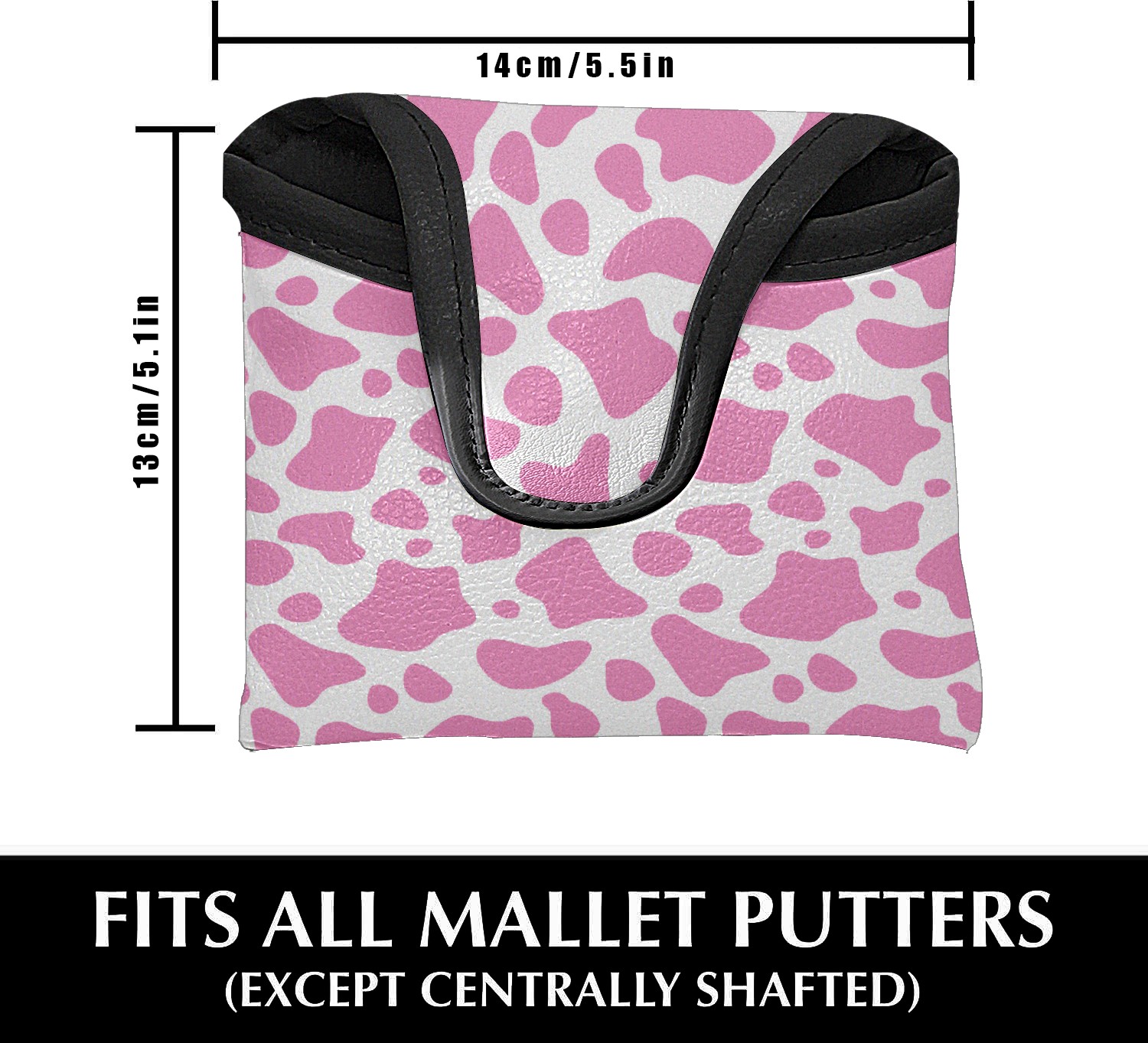 Mallet Putter Cover Magnetic PU Leather Golf Putter Headcover with Plush Lining, Mallet Putter Head Cover for Men Women Golf Club Covers (Cute Pink Cow Print)