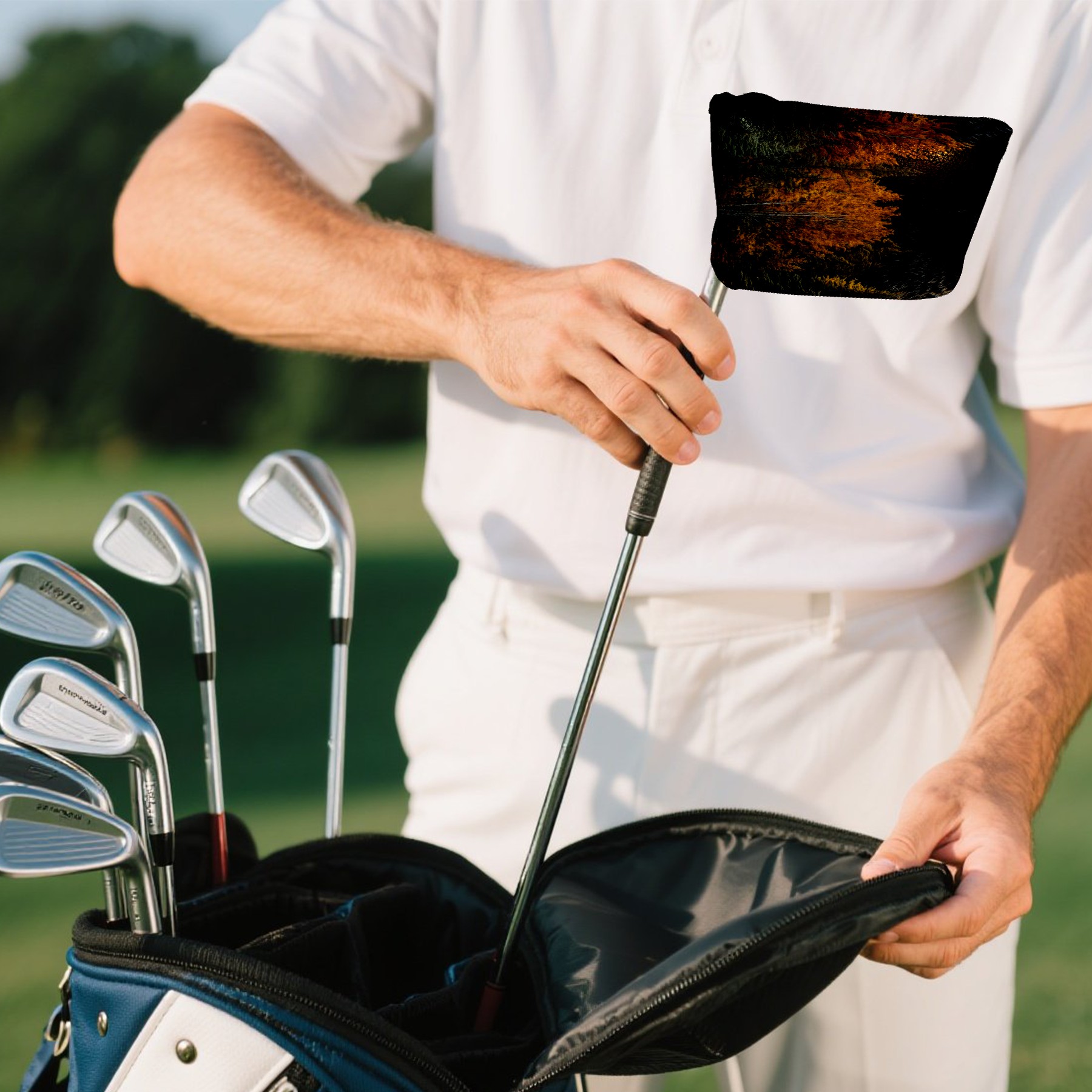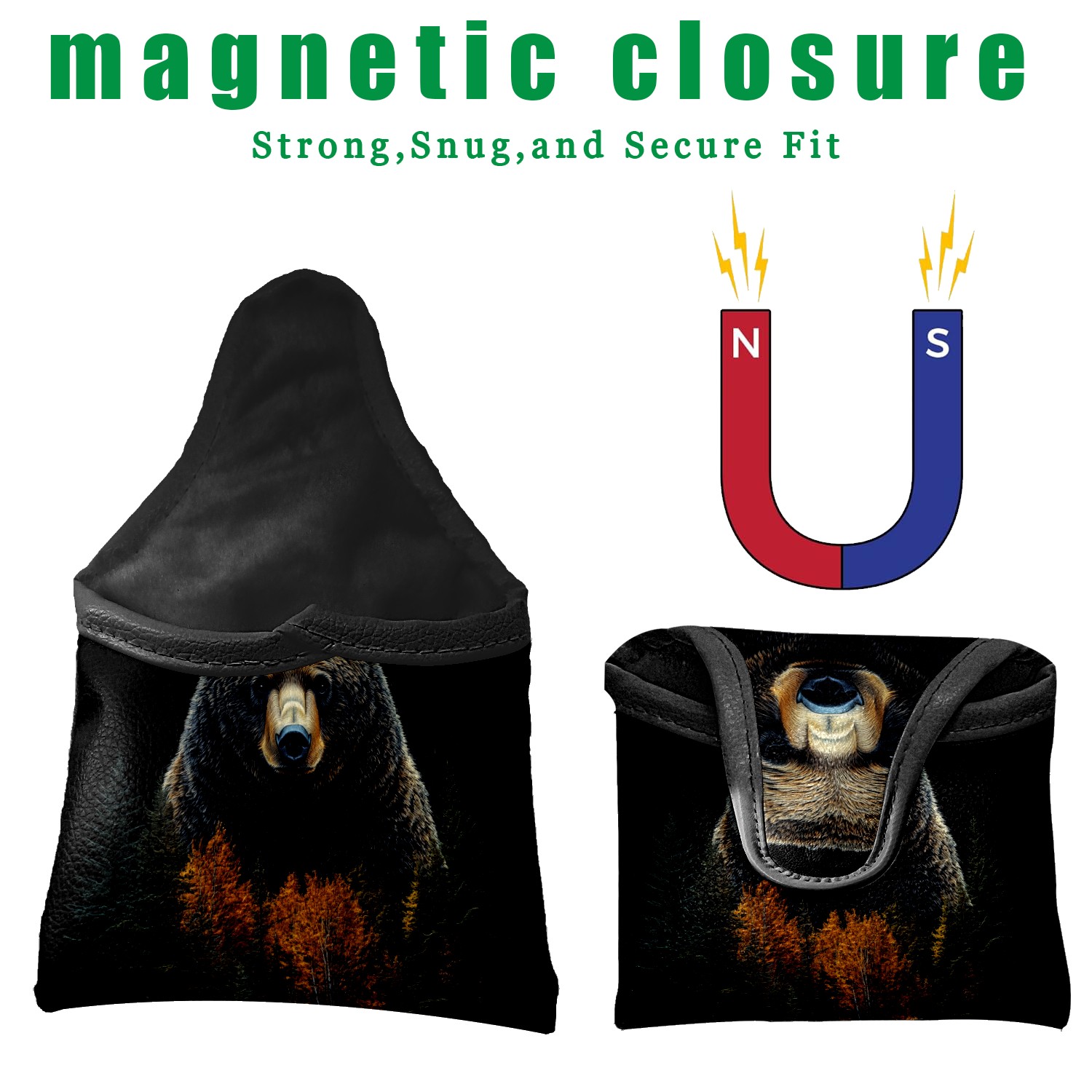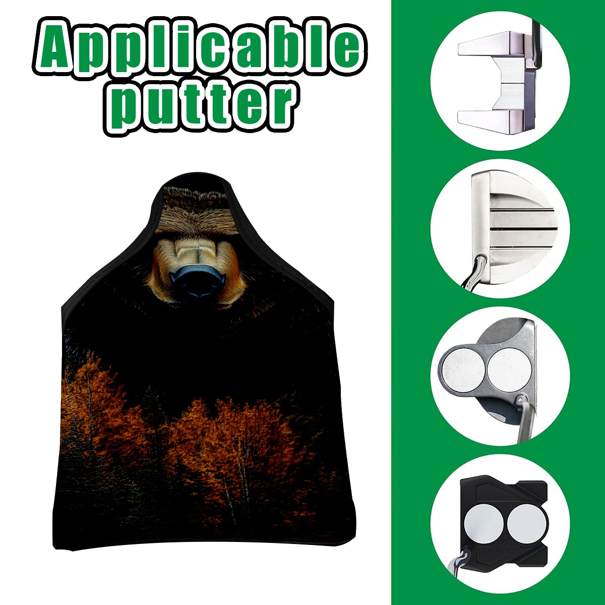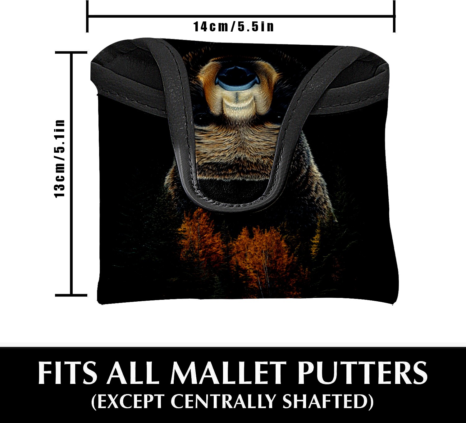 Mallet Putter Cover Magnetic PU Leather Golf Putter Headcover with Plush Lining, Mallet Putter Head Cover for Men Women Golf Club Covers (Bear_and_forest_trees)