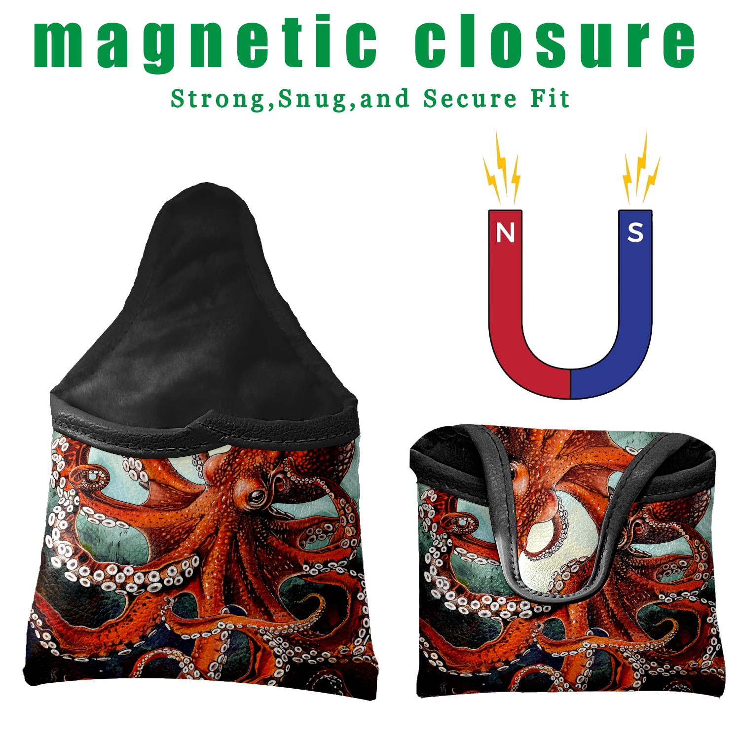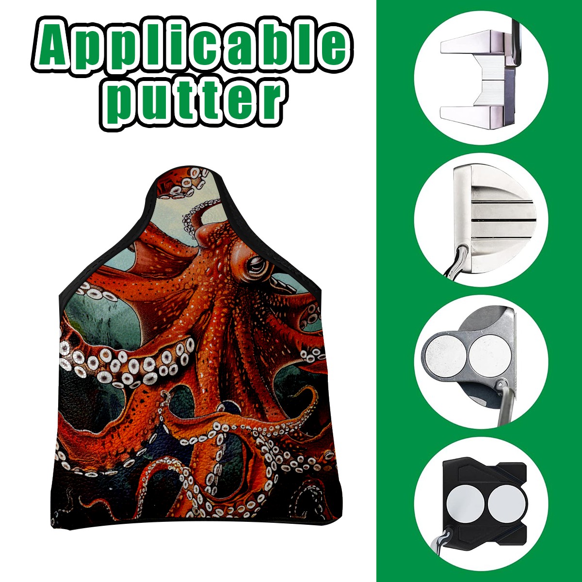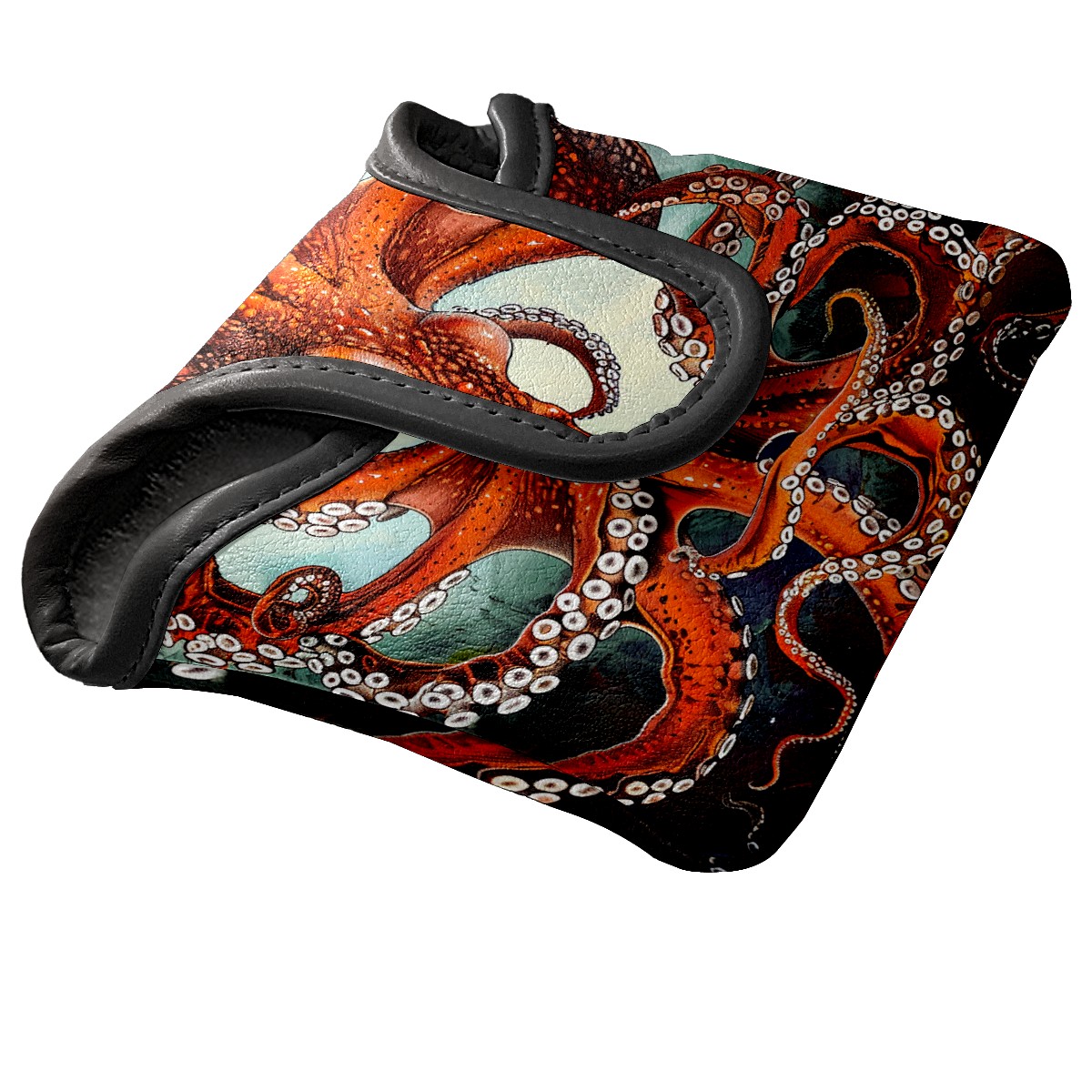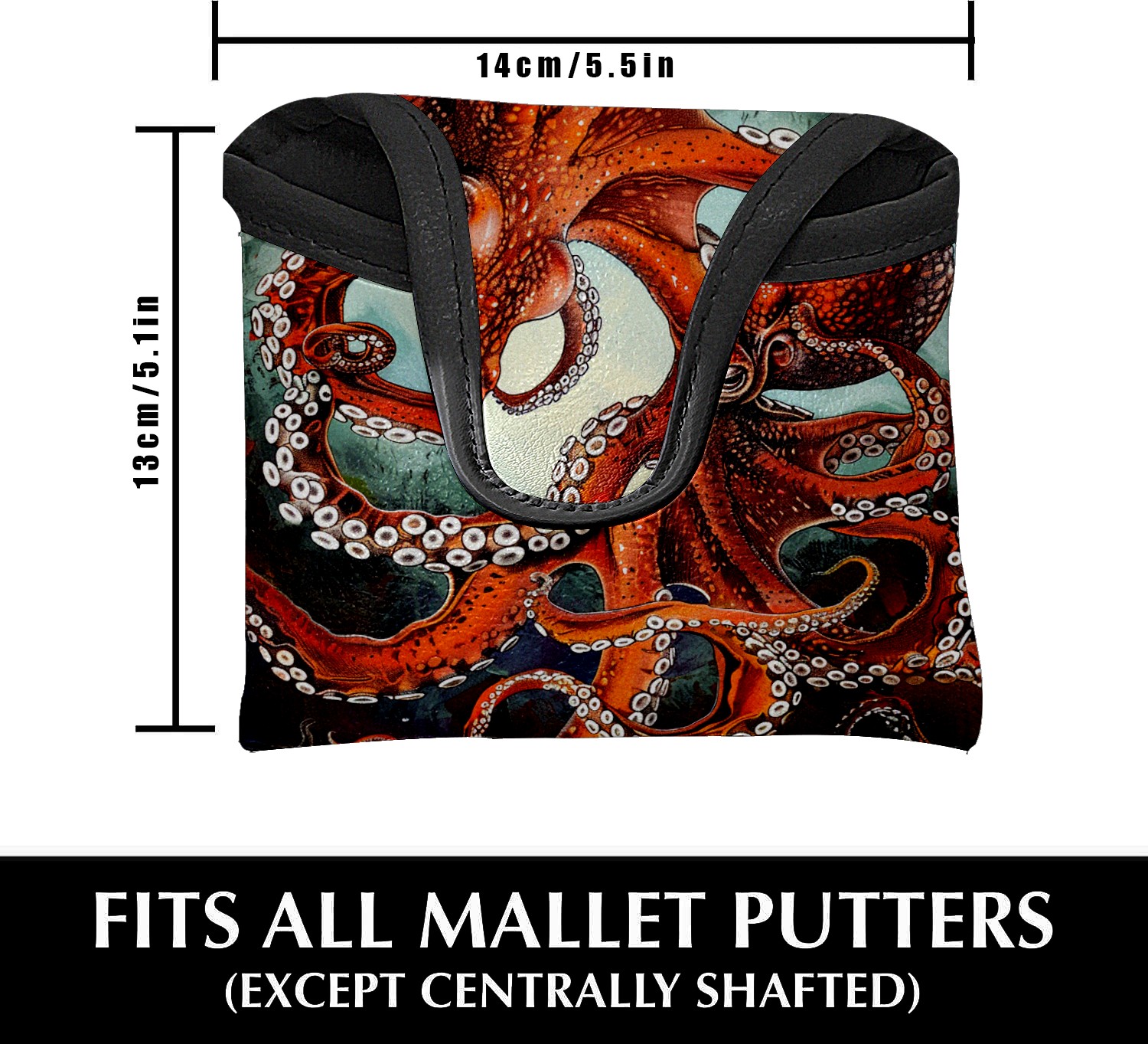 Mallet Putter Cover Magnetic PU Leather Golf Putter Headcover with Plush Lining, Mallet Putter Head Cover for Men Women Golf Club Covers (Red Octopus)