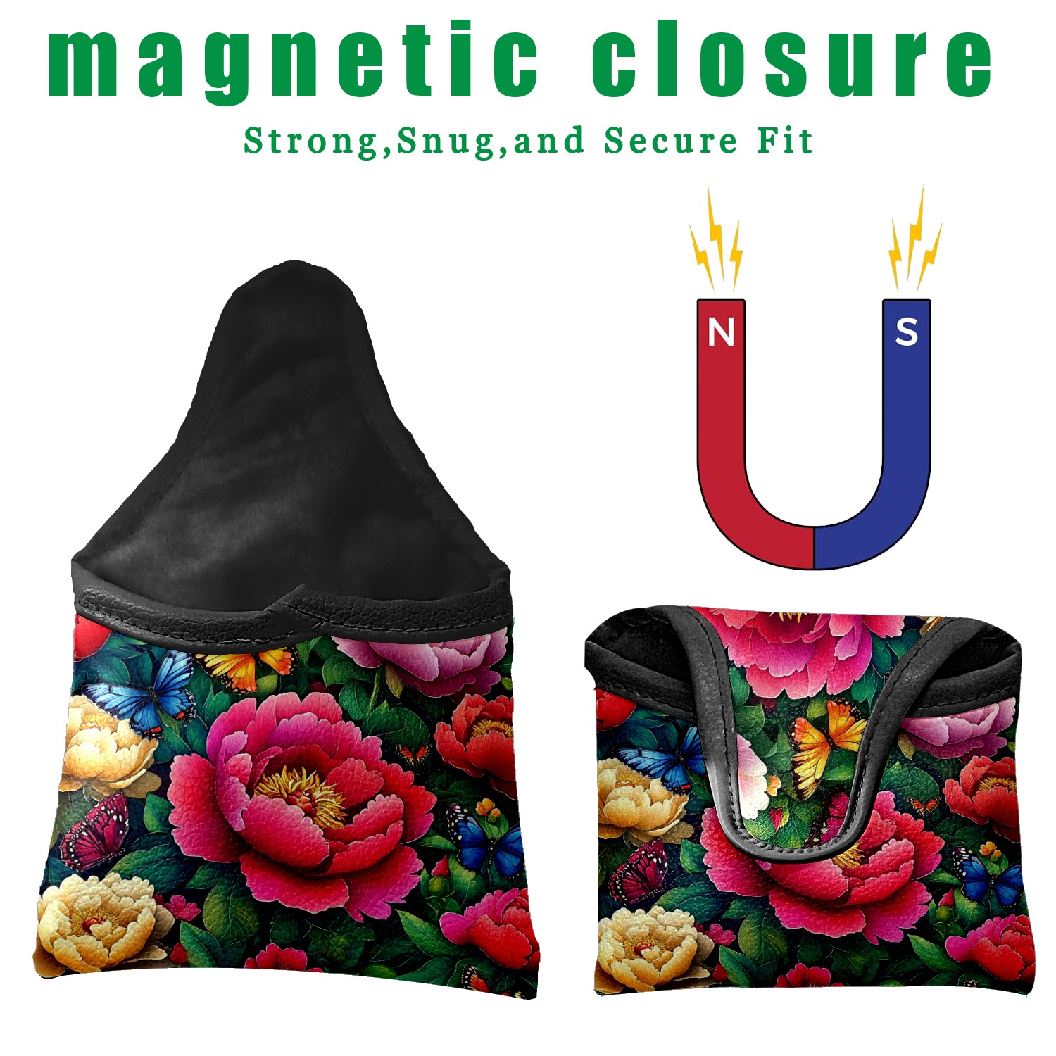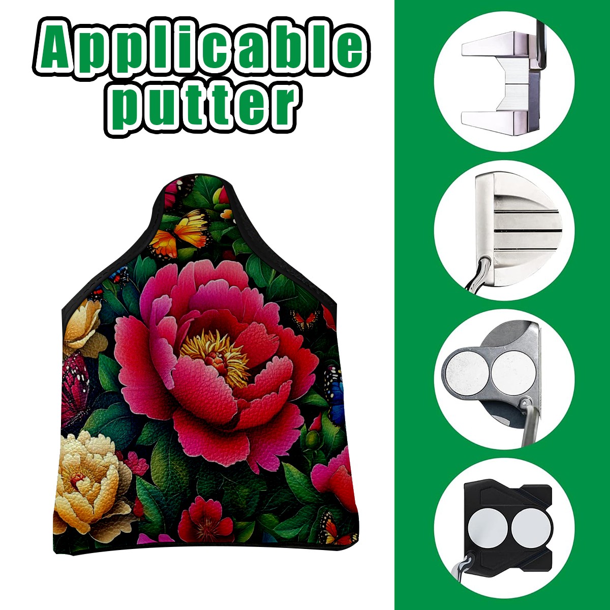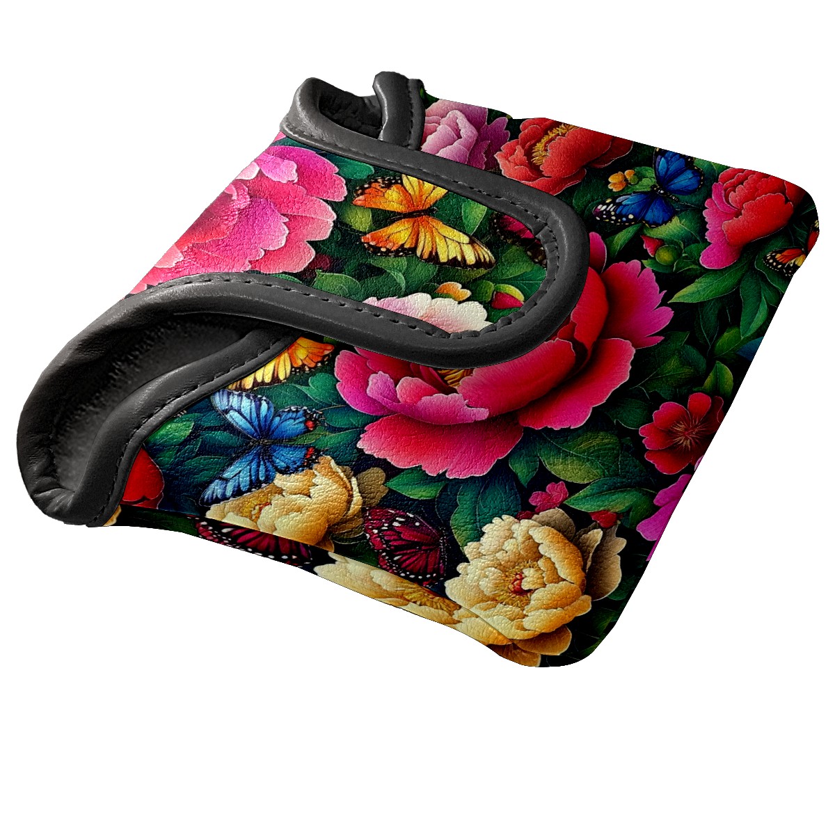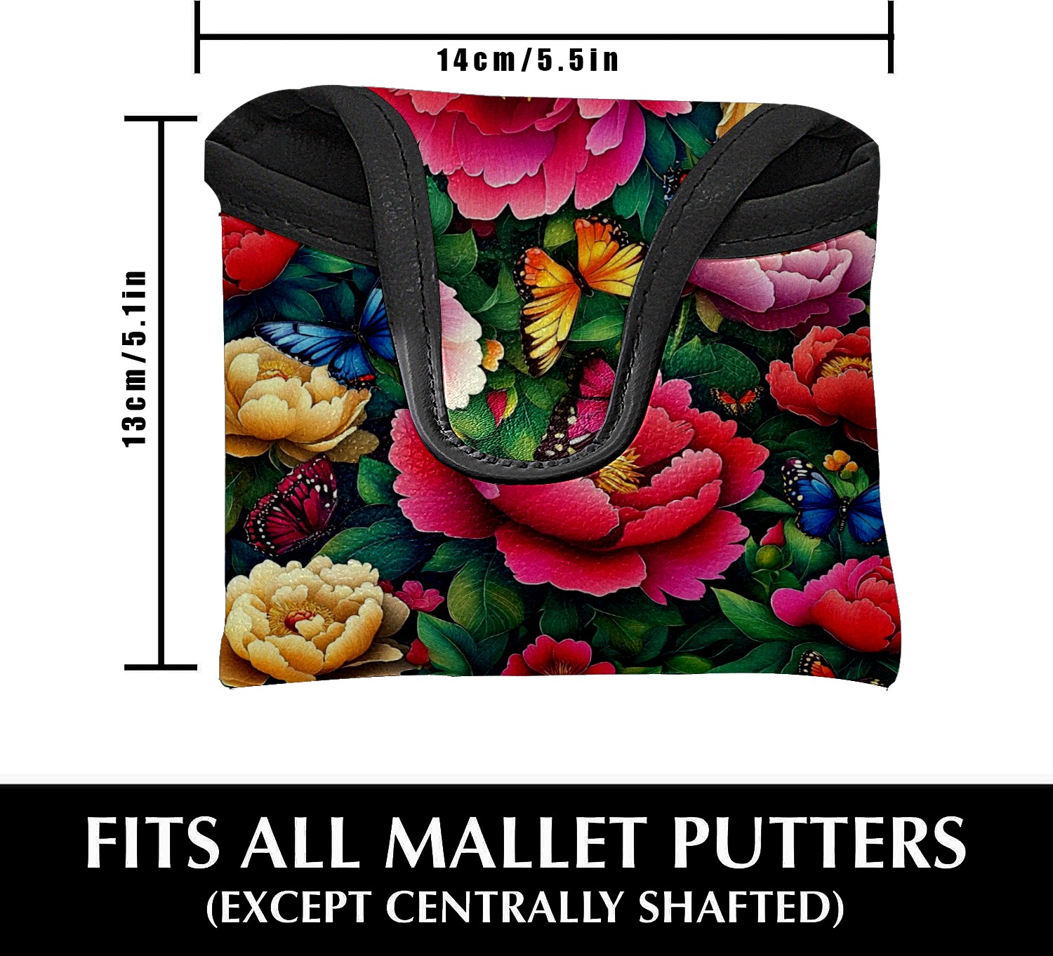 Mallet Putter Cover Magnetic PU Leather Golf Putter Headcover with Plush Lining, Mallet Putter Head Cover for Men Women Golf Club Covers (Colorful Peonies Butterflies)