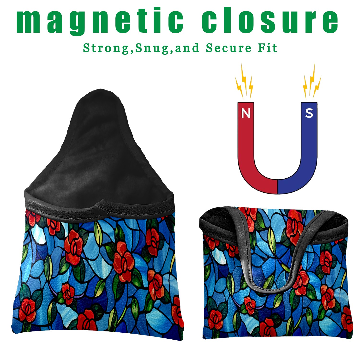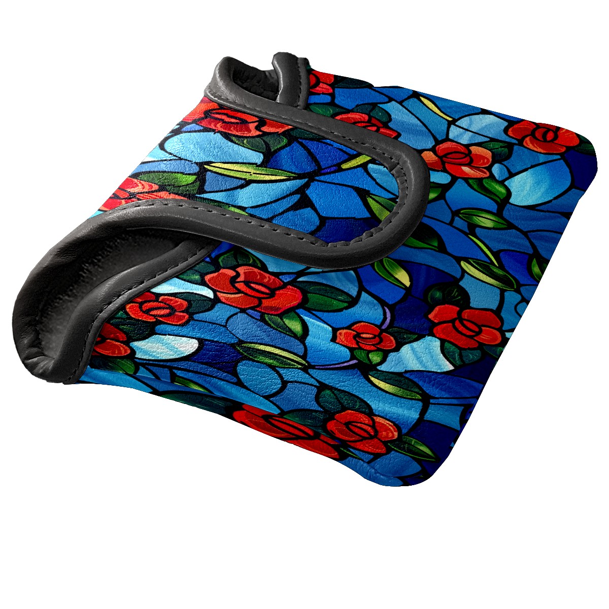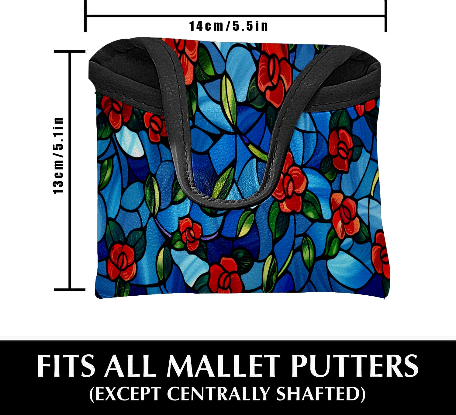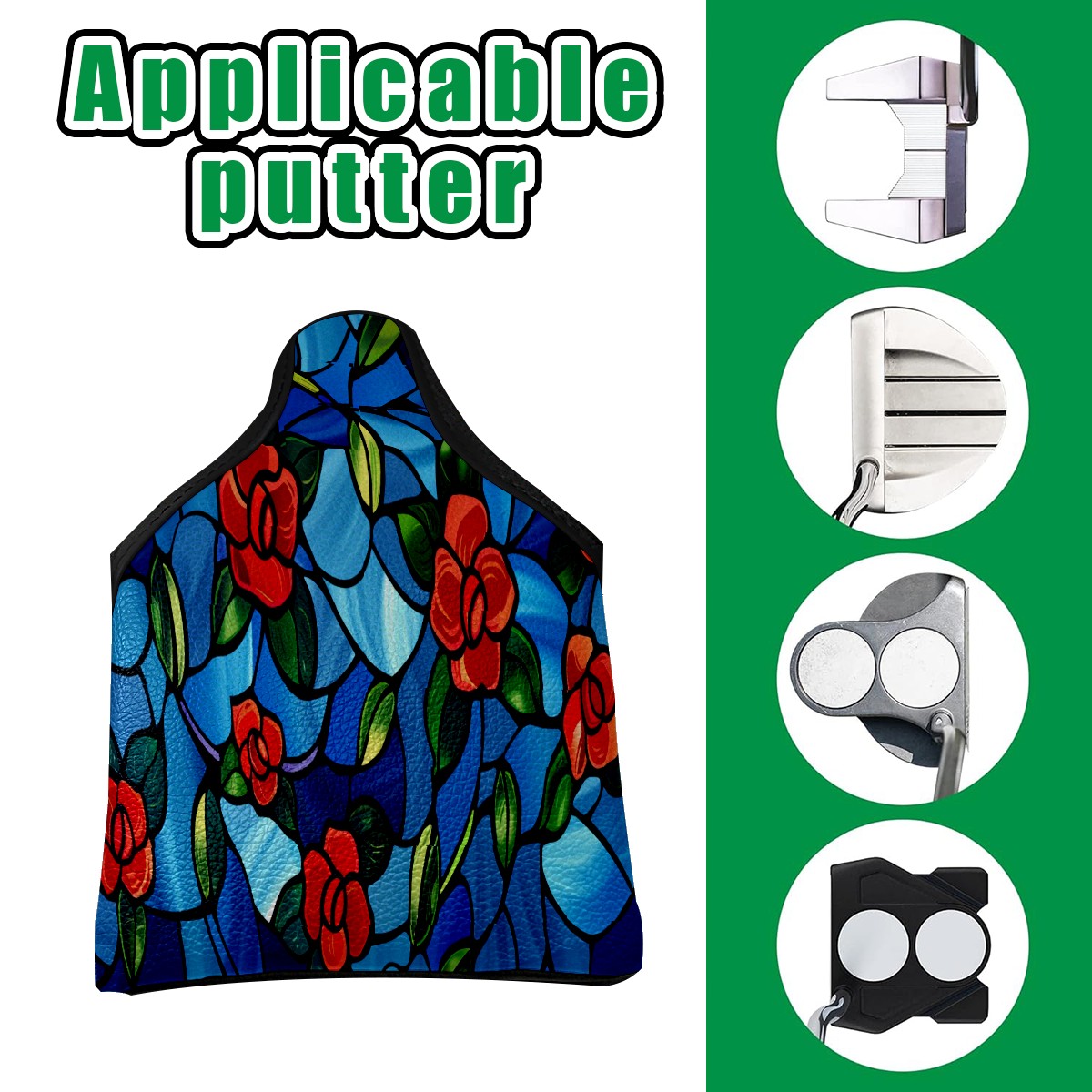 Mallet Putter Cover Magnetic PU Leather Golf Putter Headcover with Plush Lining, Mallet Putter Head Cover for Men Women Golf Club Covers (Stained Glass Flowers Blue)