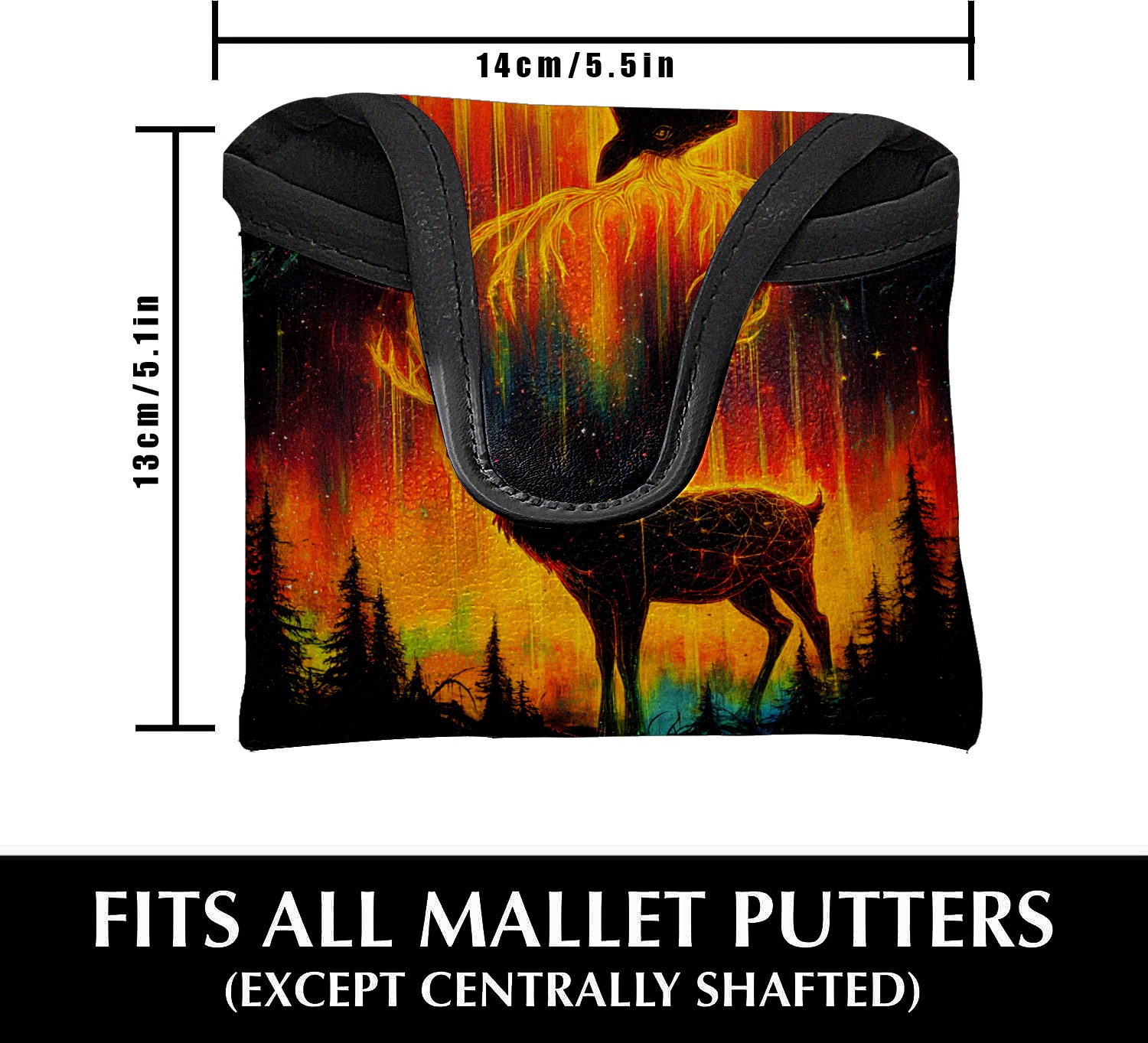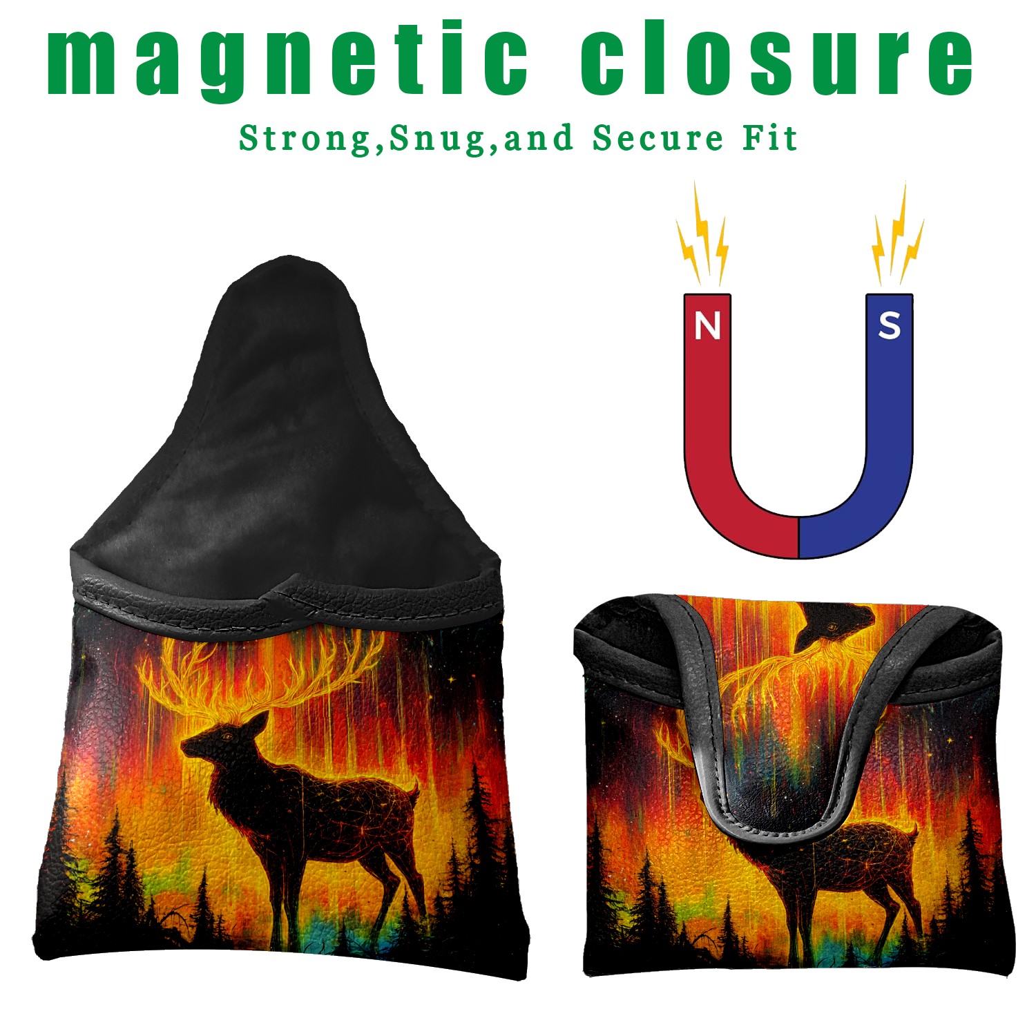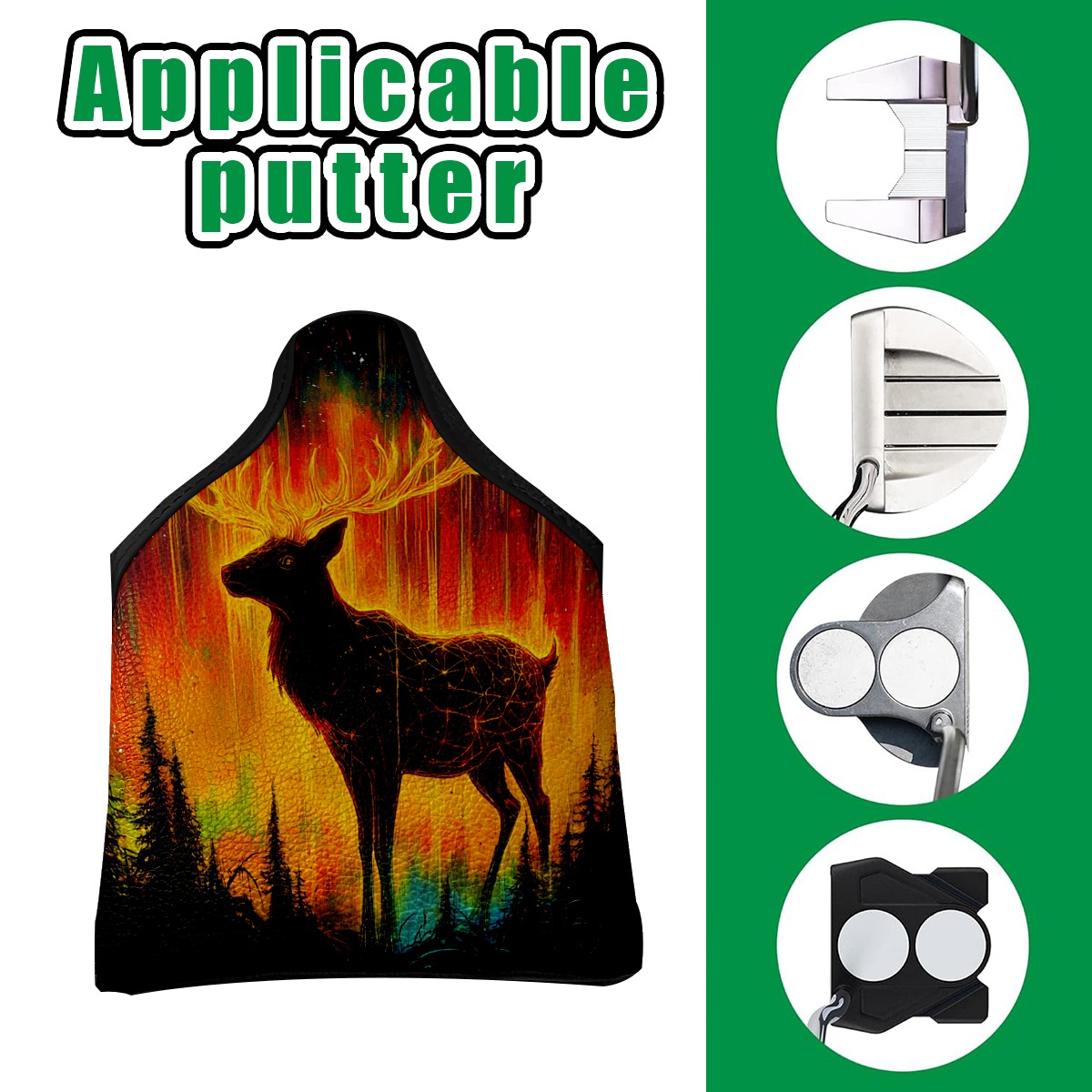 Mallet Putter Cover Magnetic PU Leather Golf Putter Headcover with Plush Lining, Mallet Putter Head Cover for Men Women Golf Club Covers (Neon Elk Deer)