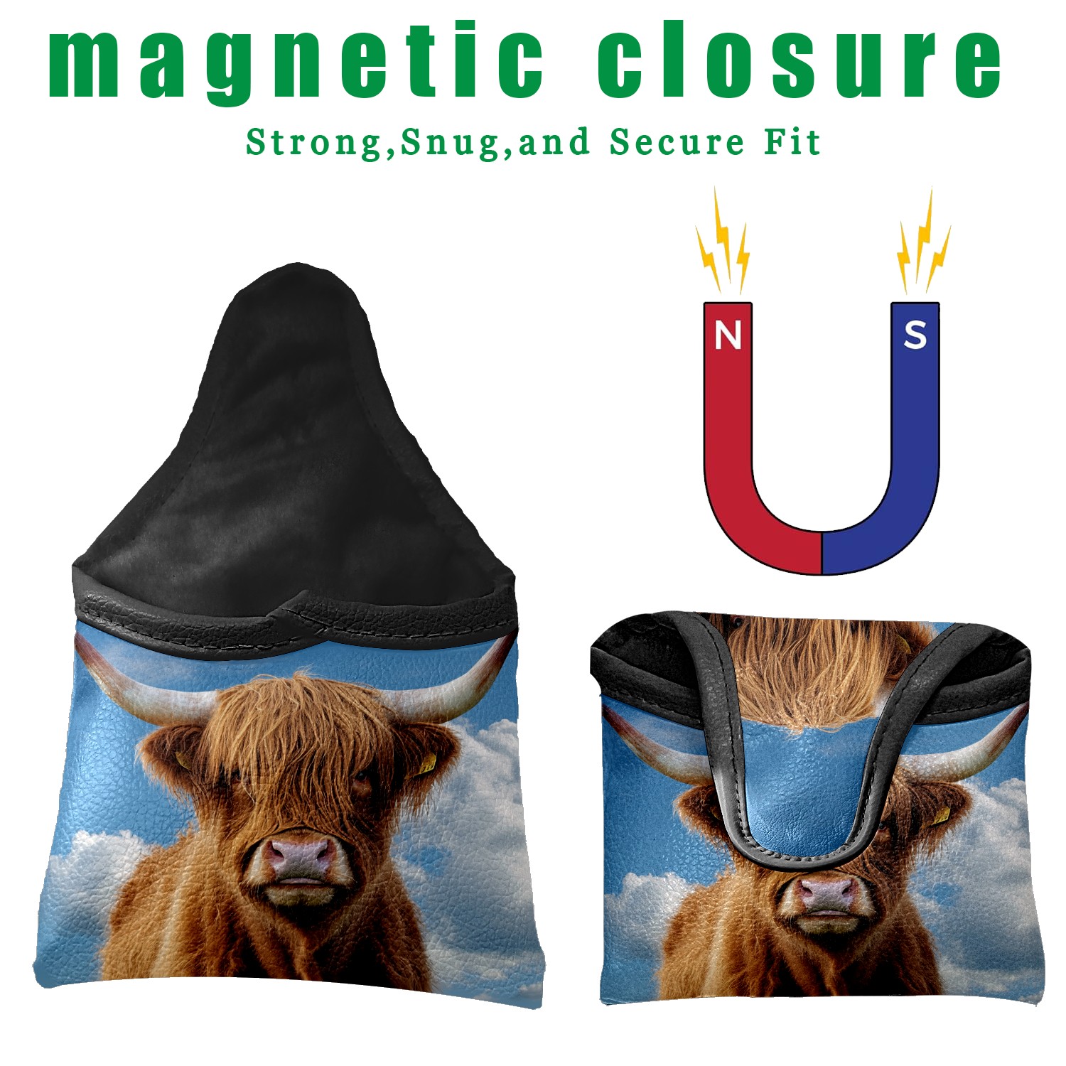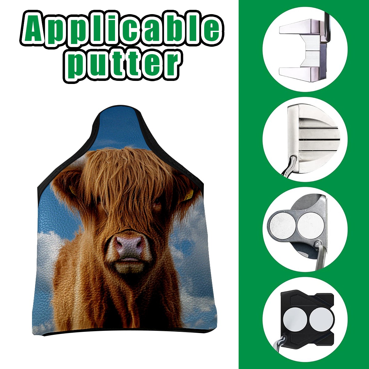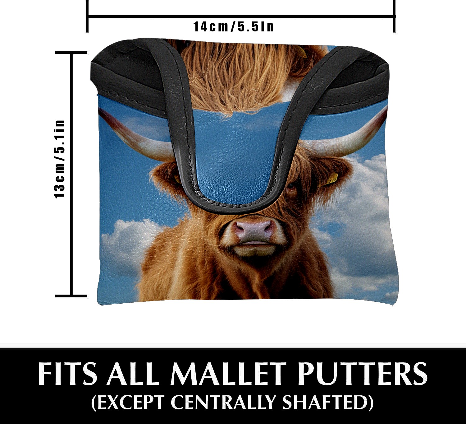 Mallet Putter Cover Magnetic PU Leather Golf Putter Headcover with Plush Lining, Mallet Putter Head Cover for Men Women Golf Club Covers (Highland Cow)