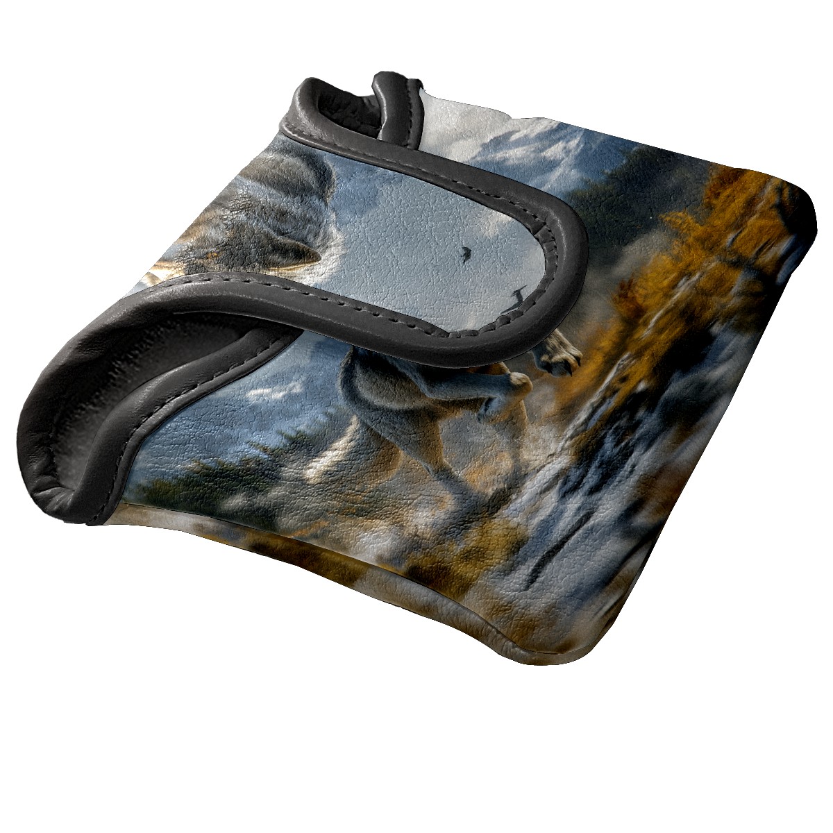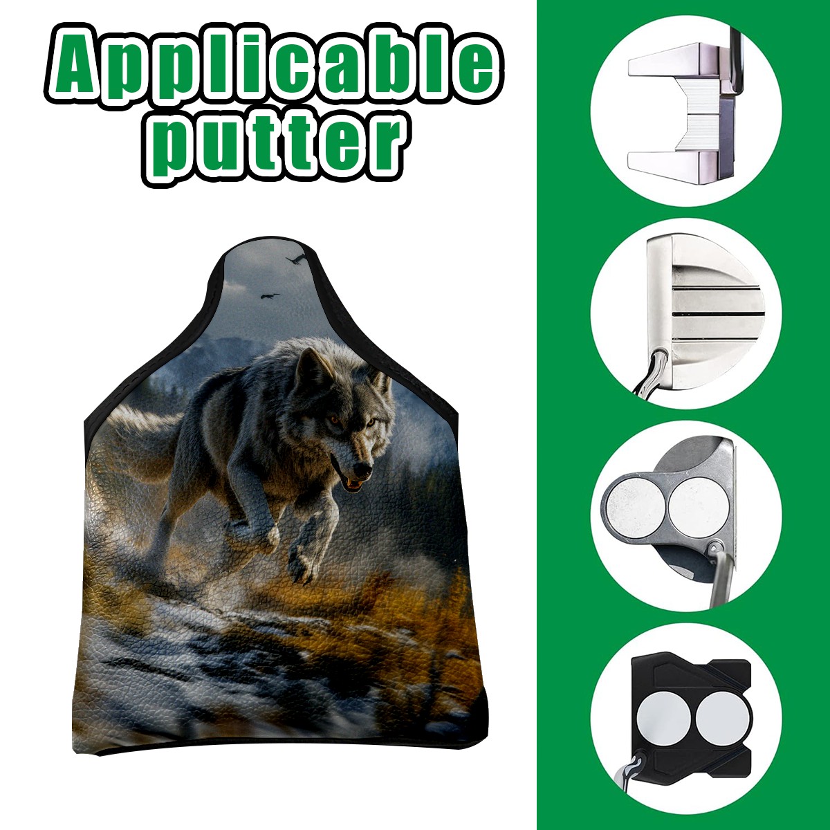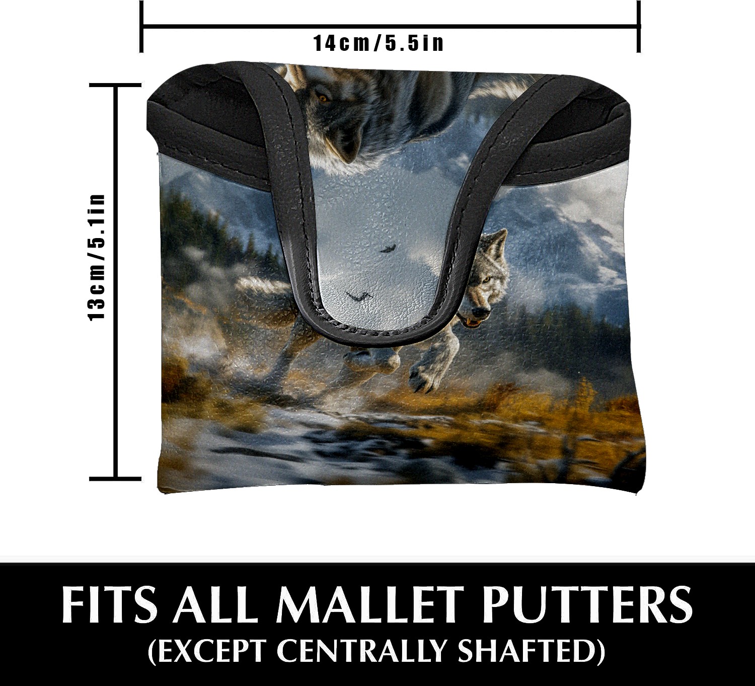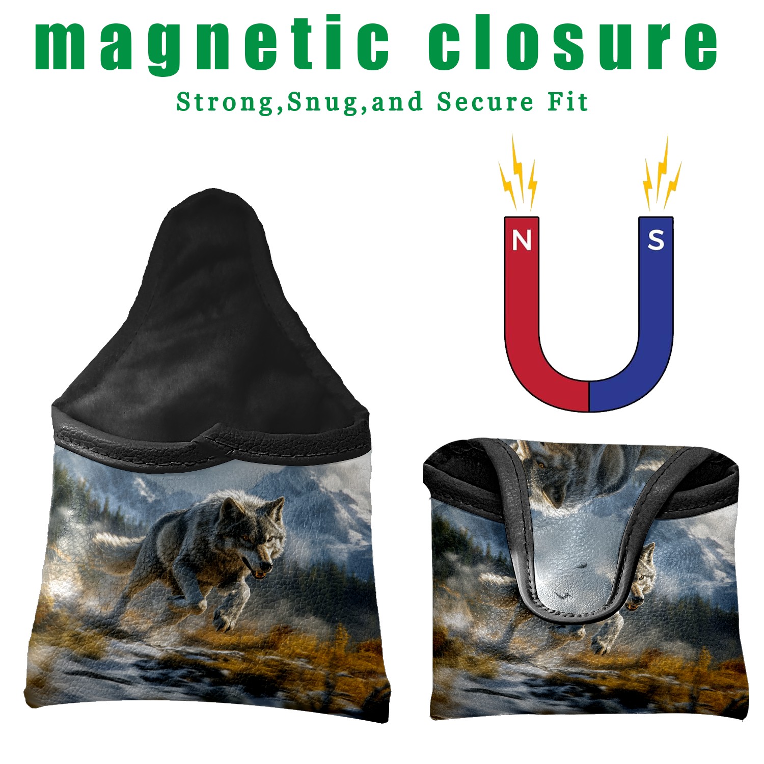 Mallet Putter Cover Magnetic PU Leather Golf Putter Headcover with Plush Lining, Mallet Putter Head Cover for Men Women Golf Club Covers (Wolf_running_with_fantasy_universy)