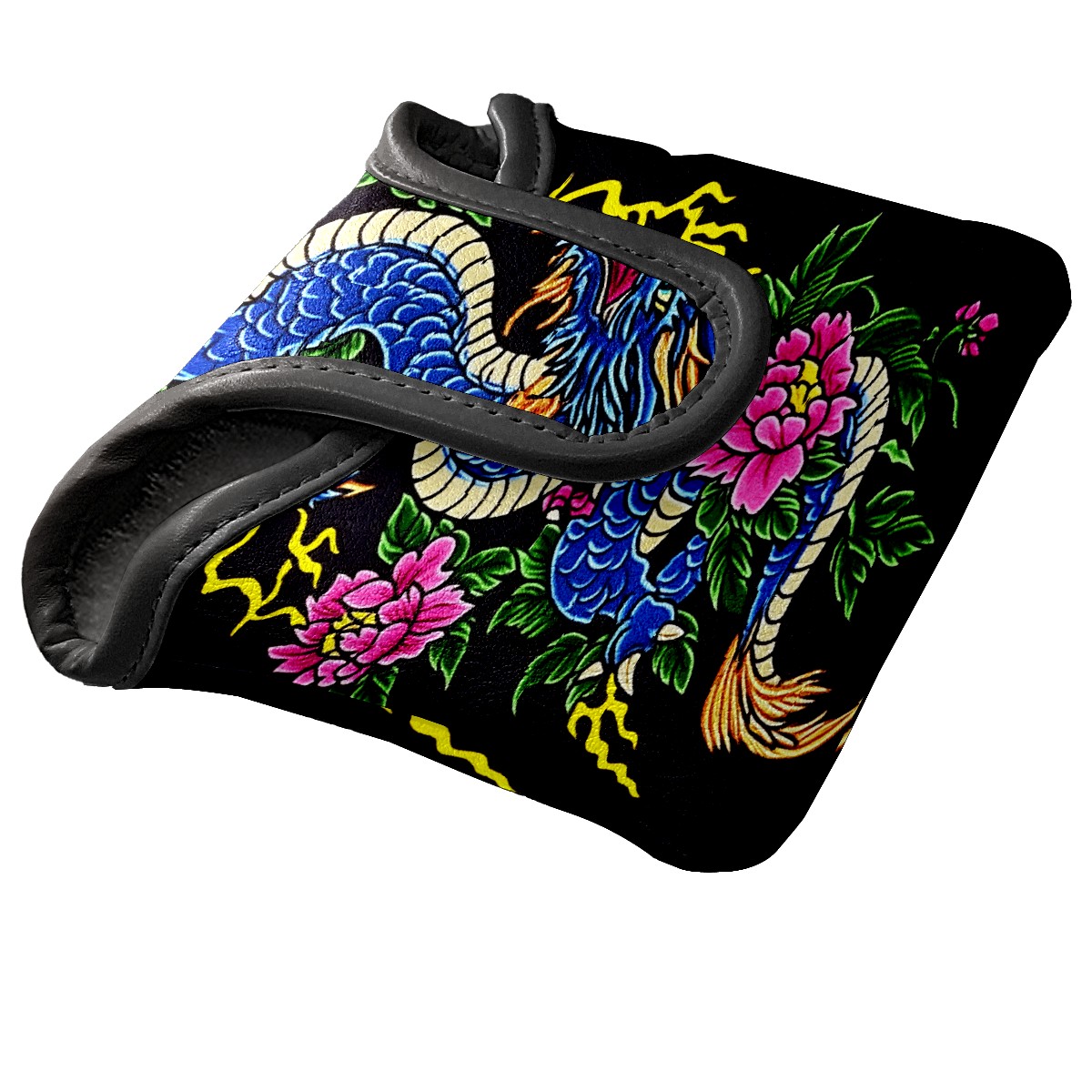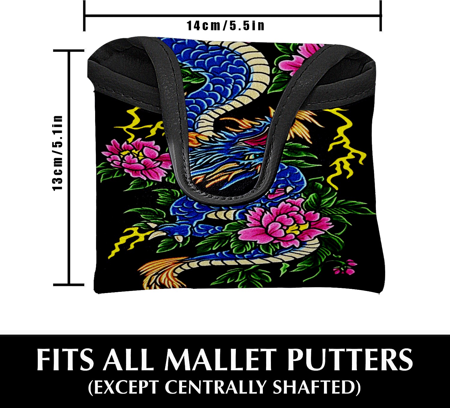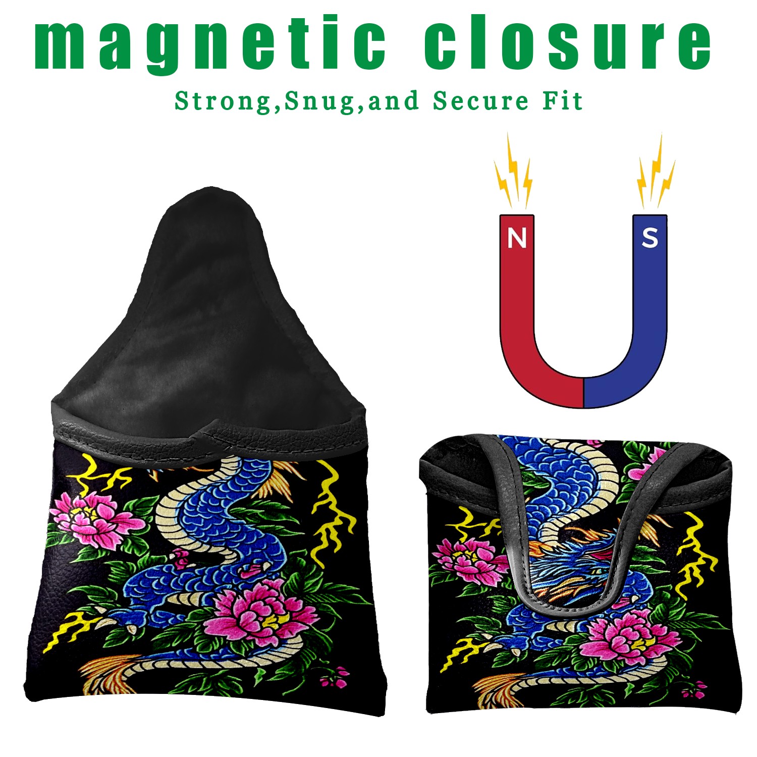 Mallet Putter Cover Magnetic PU Leather Golf Putter Headcover with Plush Lining, Mallet Putter Head Cover for Men Women Golf Club Covers (Blue Dragon)