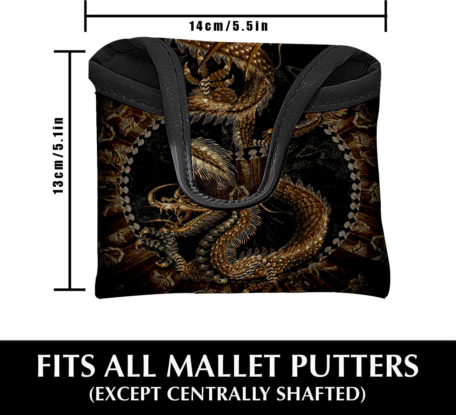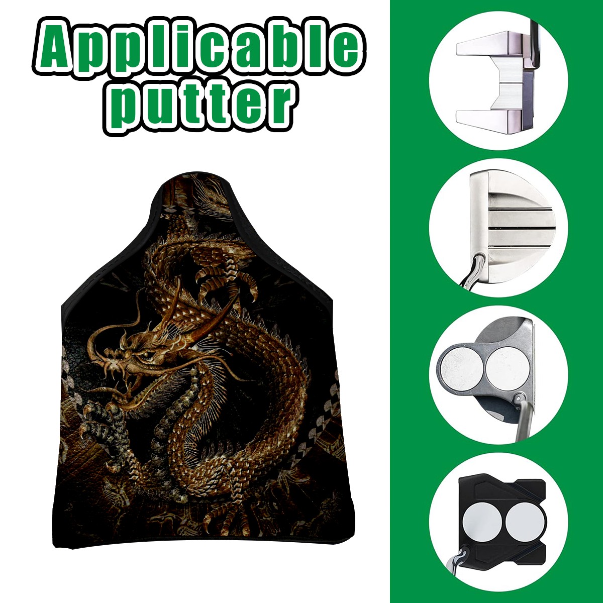 Mallet Putter Cover Magnetic PU Leather Golf Putter Headcover with Plush Lining, Mallet Putter Head Cover for Men Women Golf Club Covers (Chinese Dragon Loong)