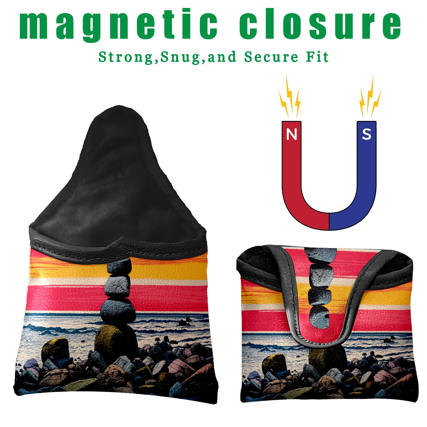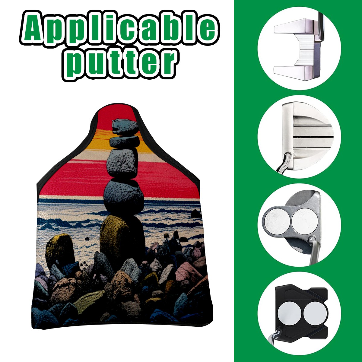 • <p><b>Protect Your Mallet Putter with Style</b></p> <p>Our magnetic mallet putter cover is designed for golfers who demand both protection and elegance. Made from premium PU leather and lined with soft plush fleece, it shields your putter from scratches, dings, and weather damage, keeping it in pristine condition.</p> <p><b>Features:</b></p> <p><b>Water &amp; UV-Resistant: </b>The golf mallet putter head cover withstands rain and sun exposure, perfect for all-course conditions.</p> <p><b>Secure Magnetic Closure: </b>Tthe strong magnet ensures quick access and a tight fit.</p> <p><b>Universal Compatibility:</b> Fits most mallet putter heads (5.5" x 5.1"). Ideal for golfers seeking a no-slip, quiet, and lightweight cover.</p> <p><b>Package Includes: </b>1 x Mallet Putter Cover</p>