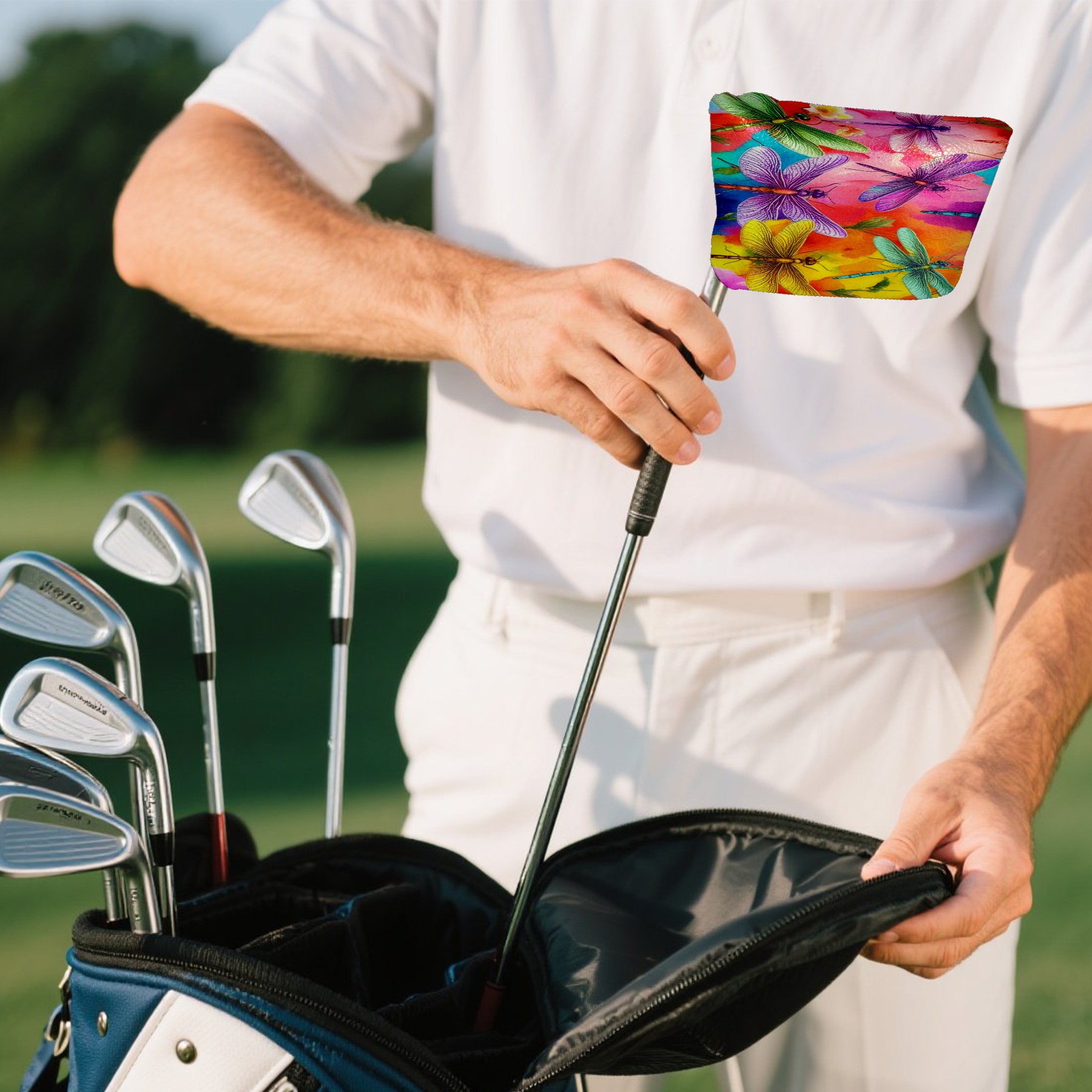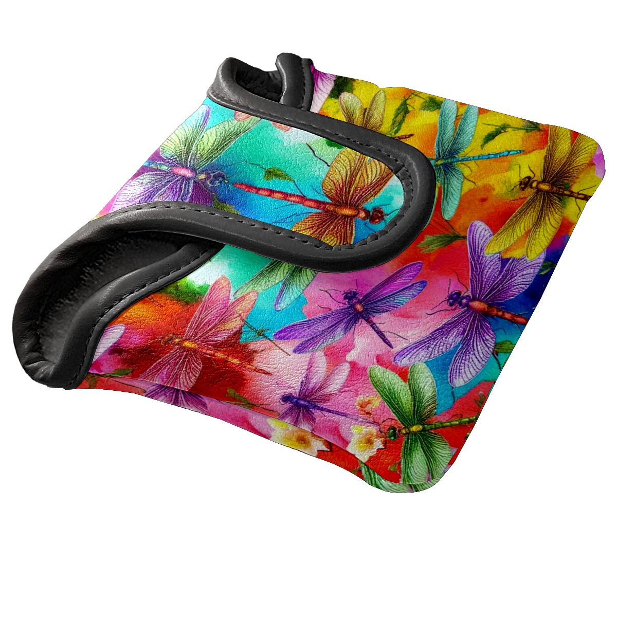 Mallet Putter Cover Magnetic PU Leather Golf Putter Headcover with Plush Lining, Mallet Putter Head Cover for Men Women Golf Club Covers (Colorful Dragonflies)