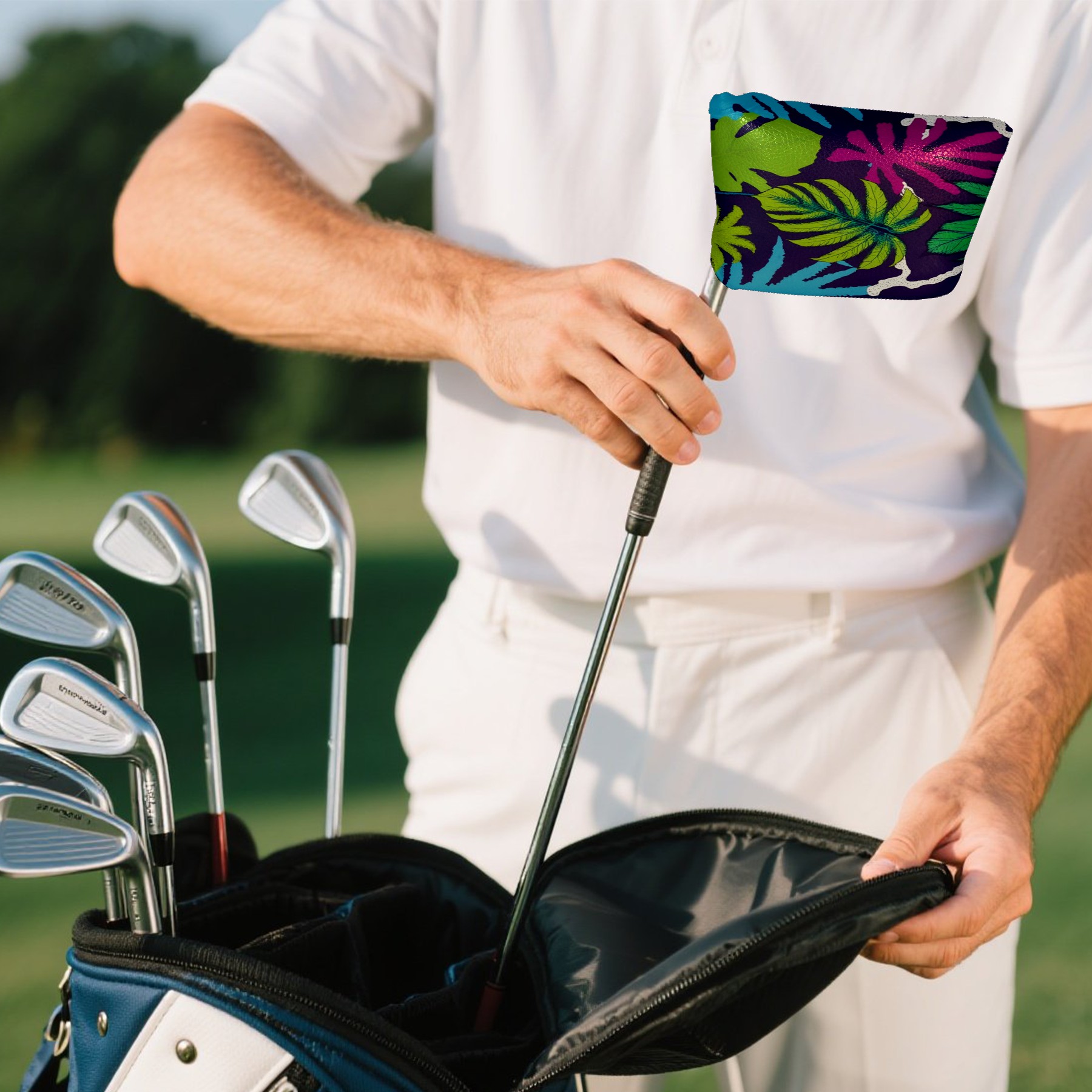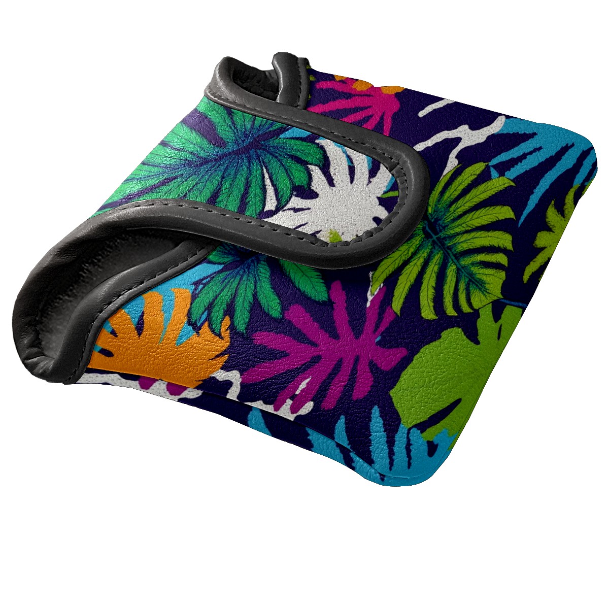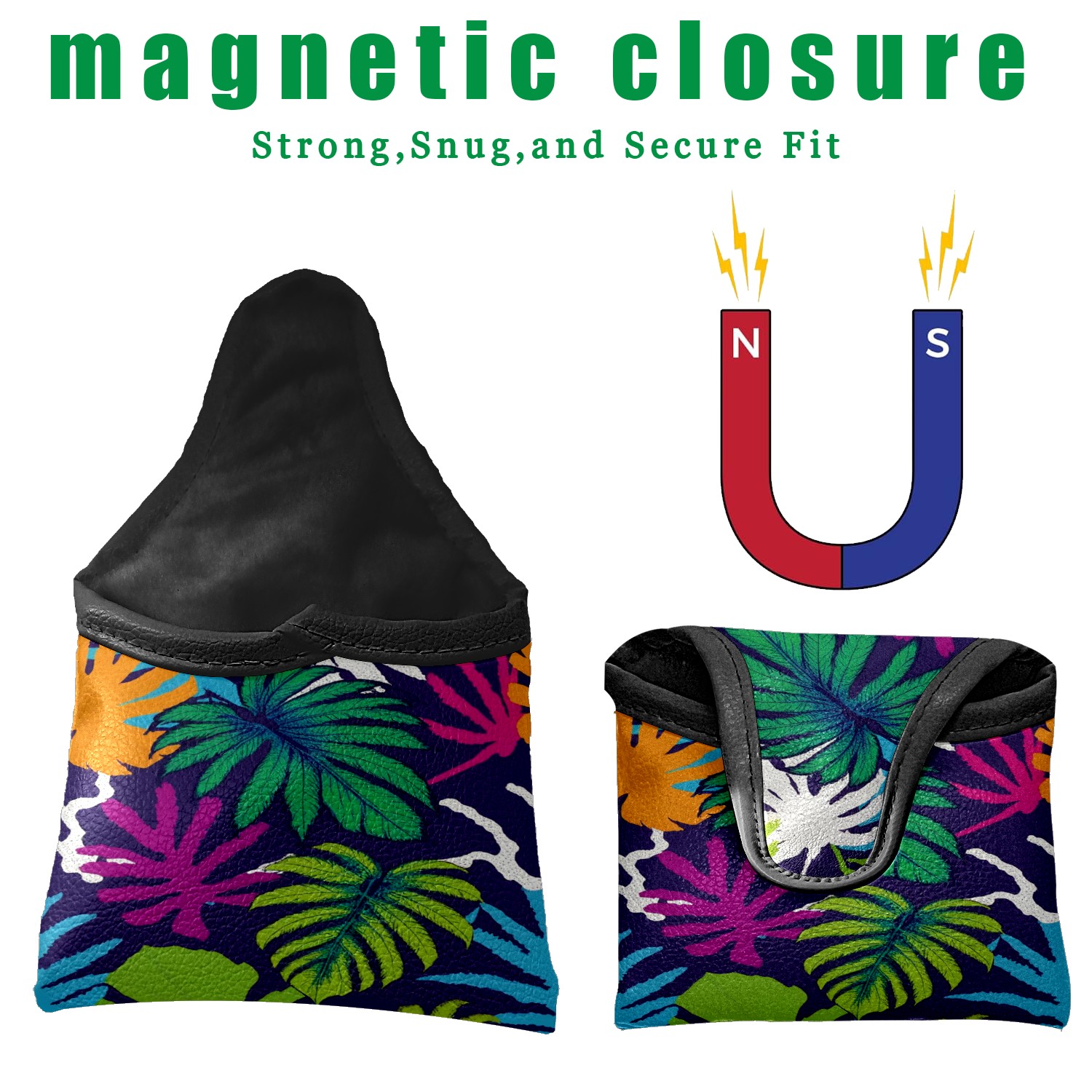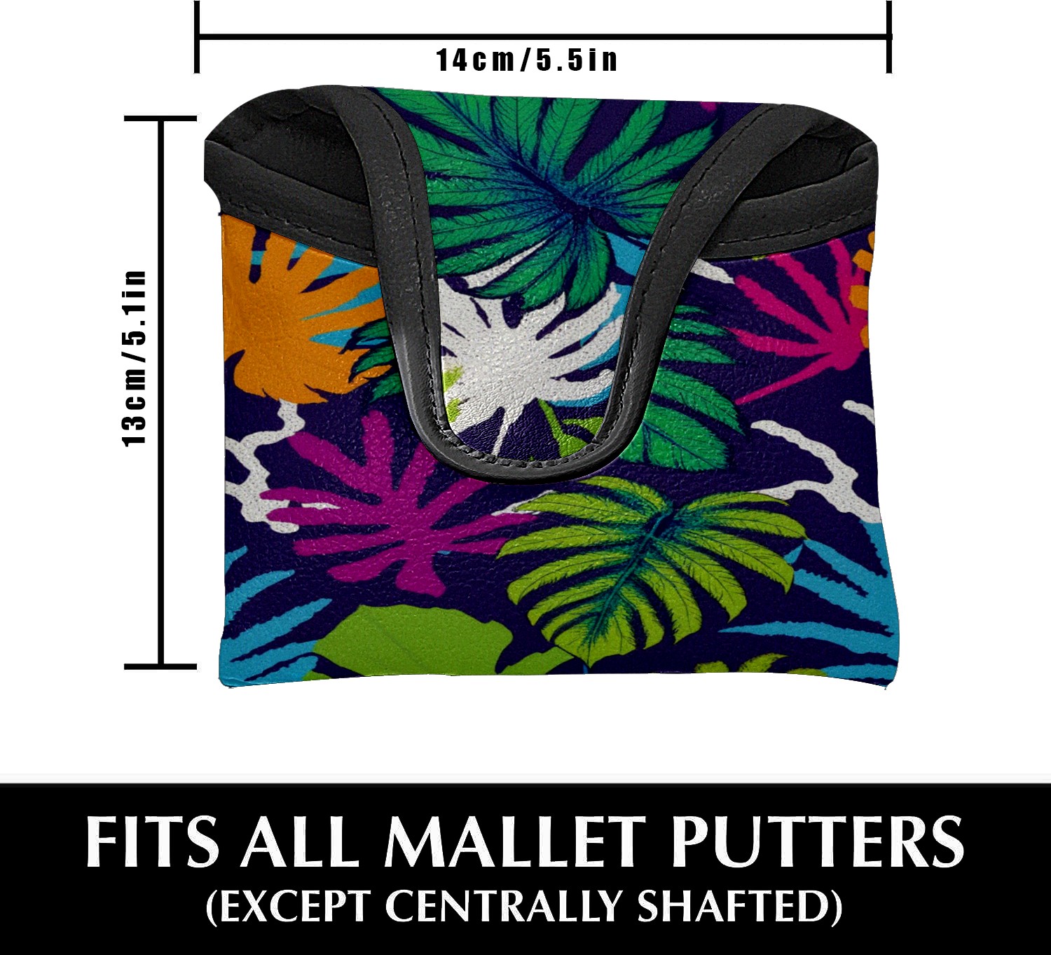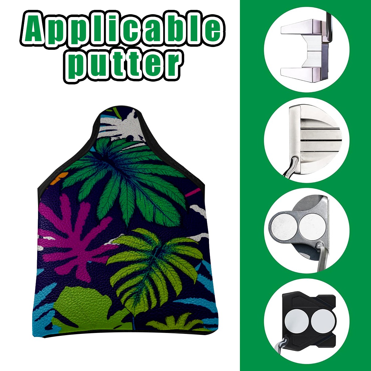 Mallet Putter Cover Magnetic PU Leather Golf Putter Headcover with Plush Lining, Mallet Putter Head Cover for Men Women Golf Club Covers (Tropical Leaves)
