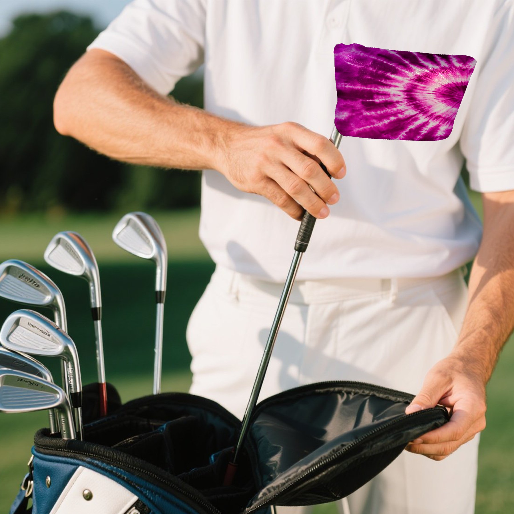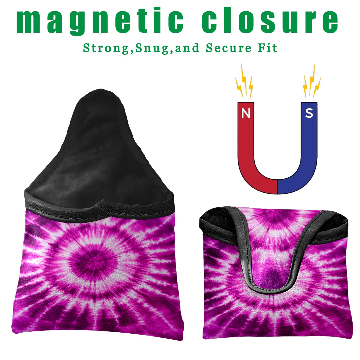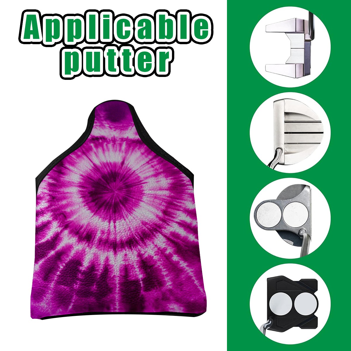 Mallet Putter Cover Magnetic PU Leather Golf Putter Headcover with Plush Lining, Mallet Putter Head Cover for Men Women Golf Club Covers (Purple Pink Tie Dye)
