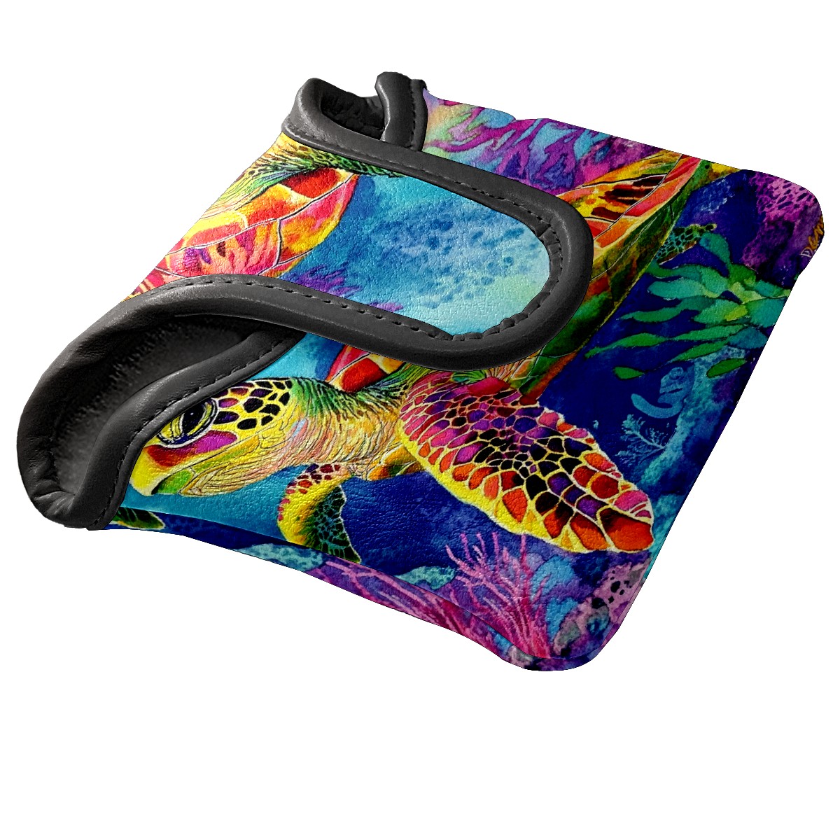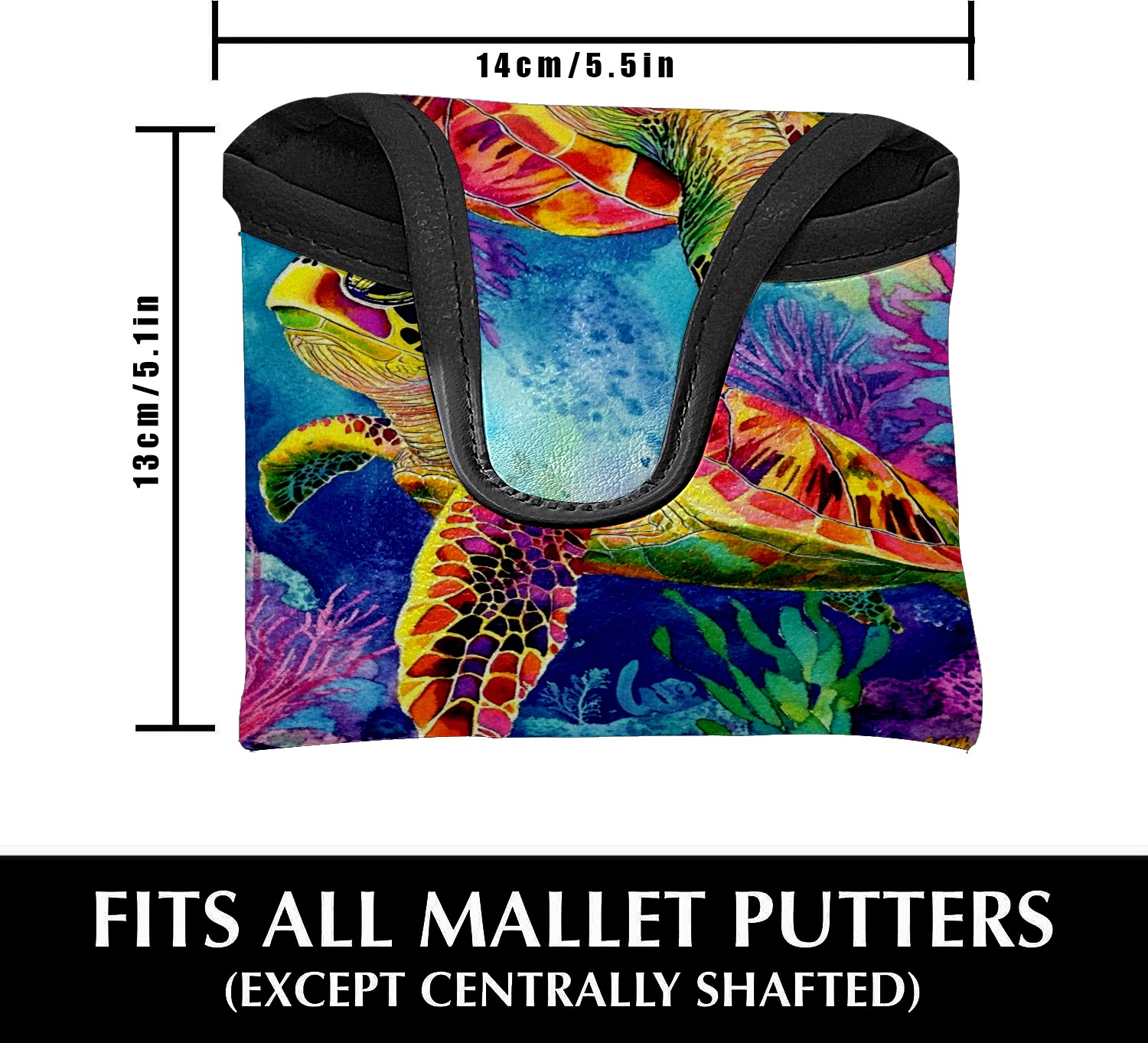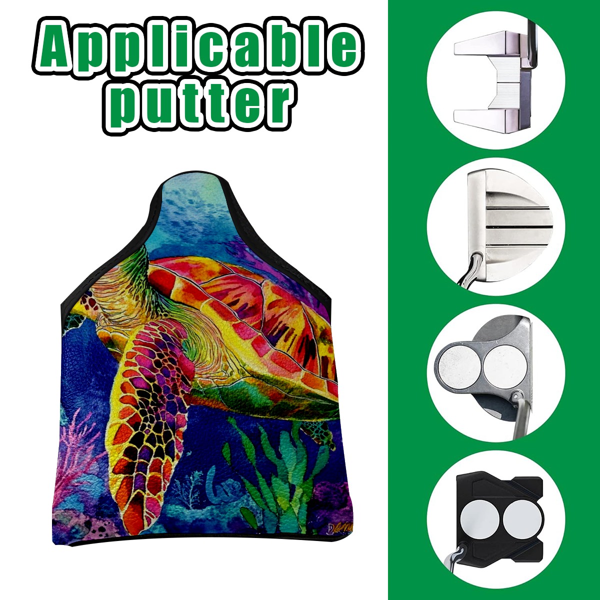 Mallet Putter Cover Magnetic PU Leather Golf Putter Headcover with Plush Lining, Mallet Putter Head Cover for Men Women Golf Club Covers (Colorful Sea Turtle)