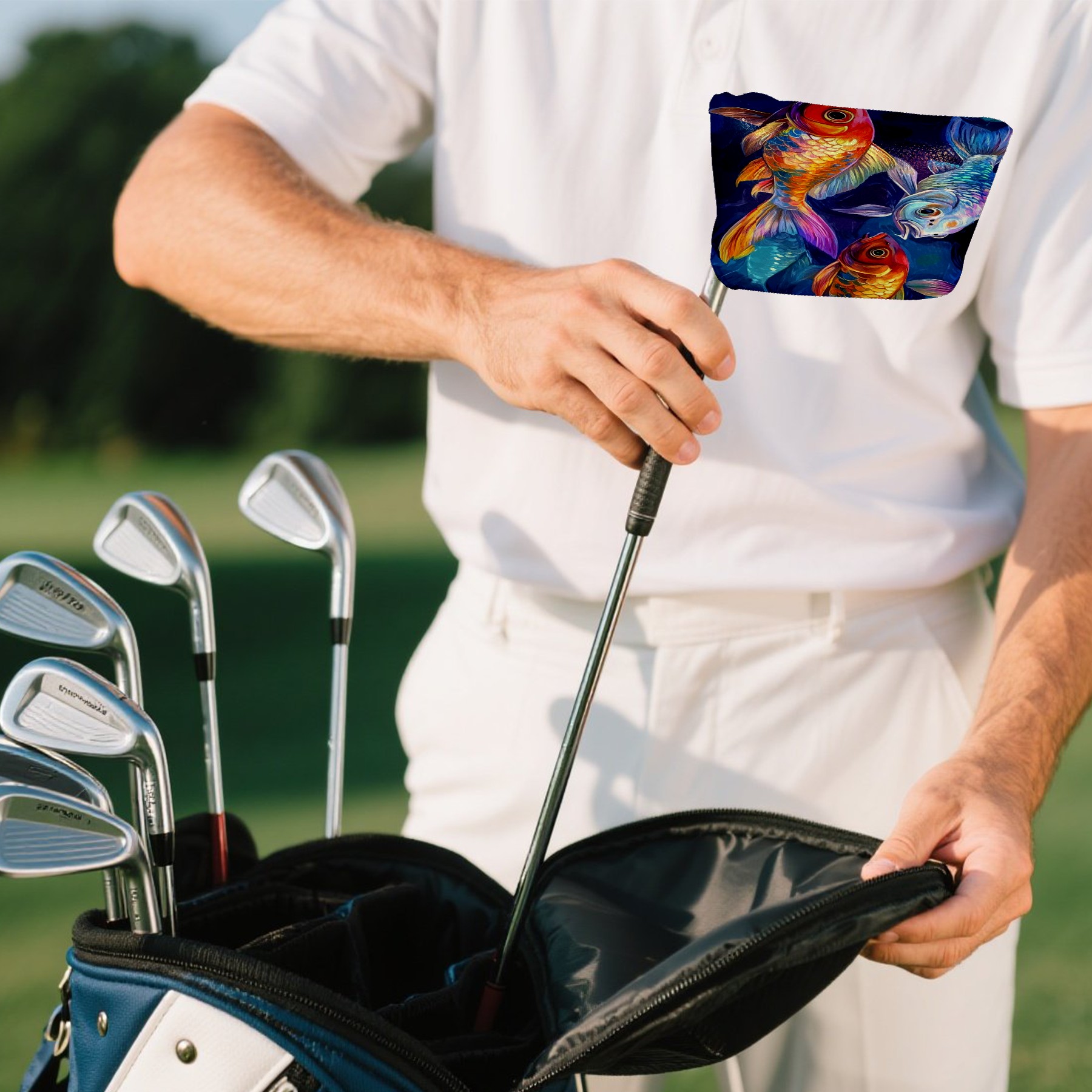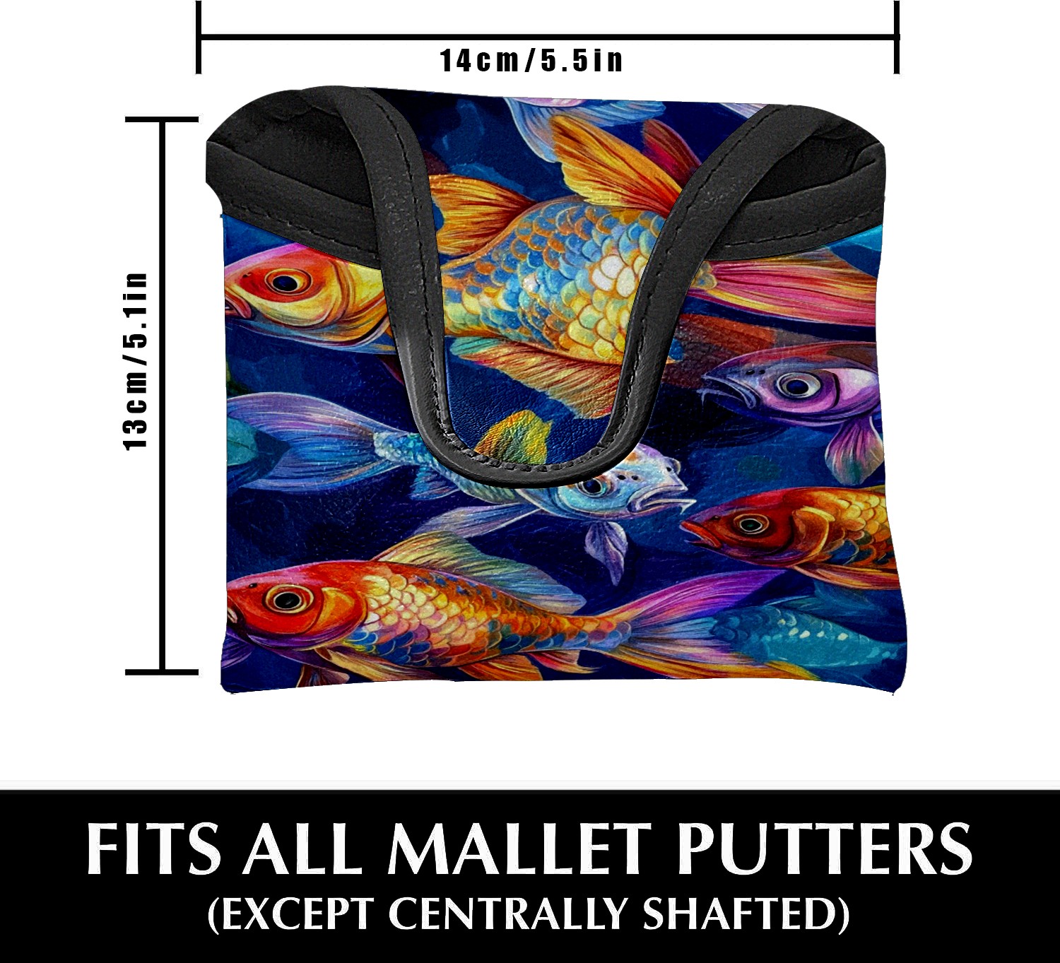Mallet Putter Cover Magnetic PU Leather Golf Putter Headcover with Plush Lining, Mallet Putter Head Cover for Men Women Golf Club Covers (Carp Fishes)