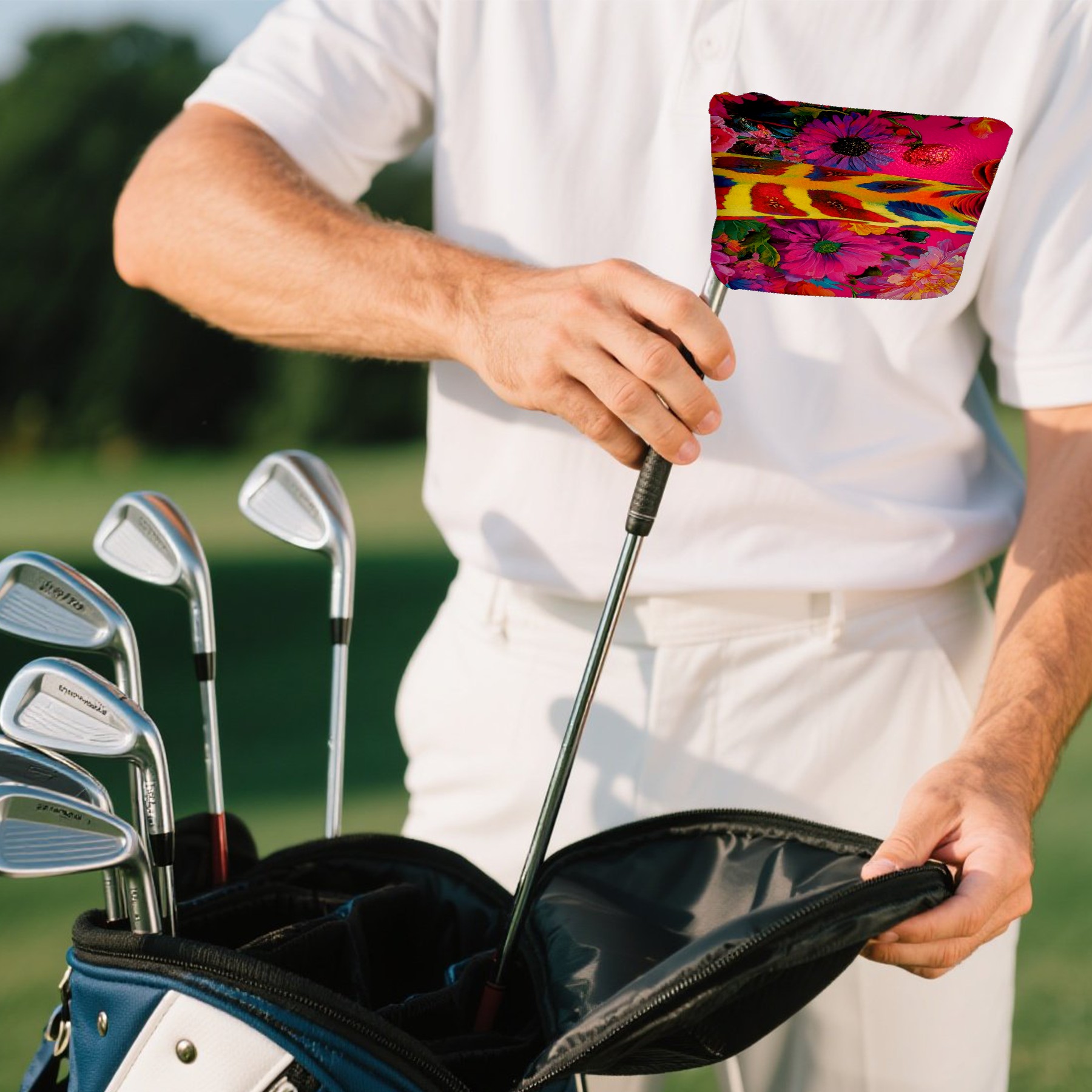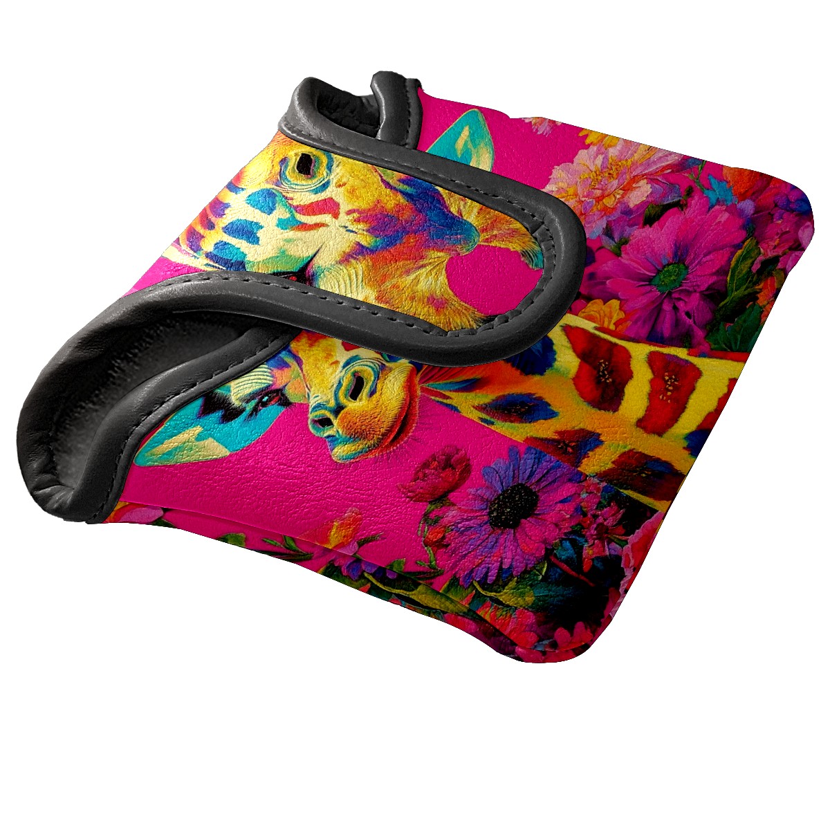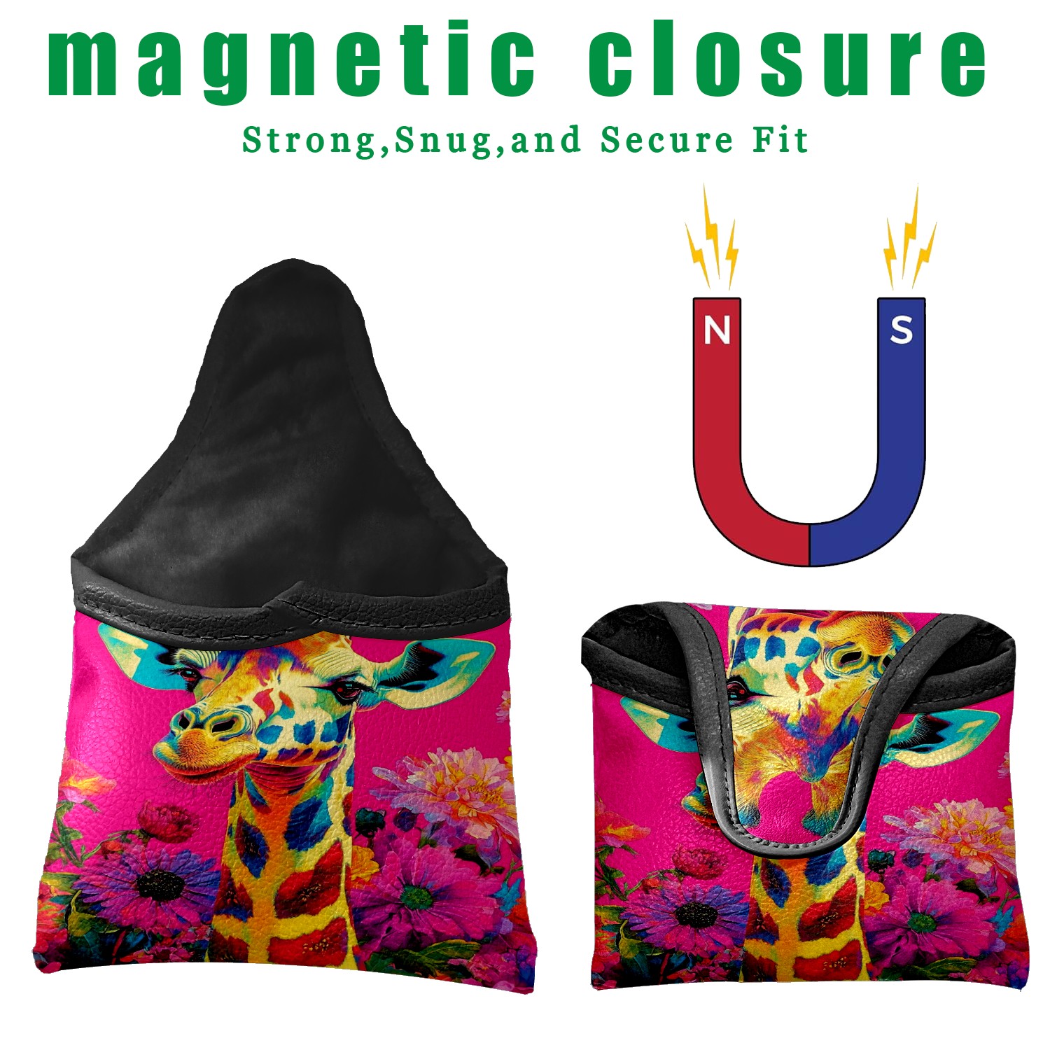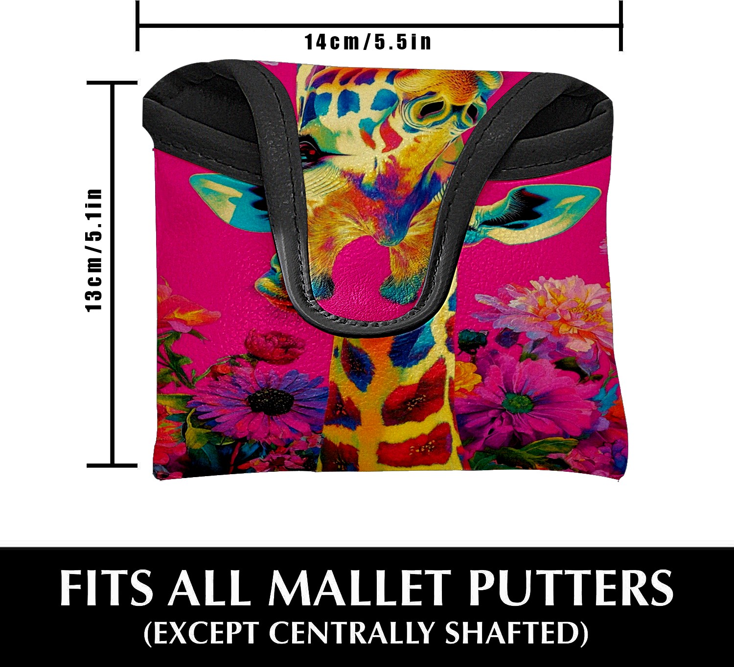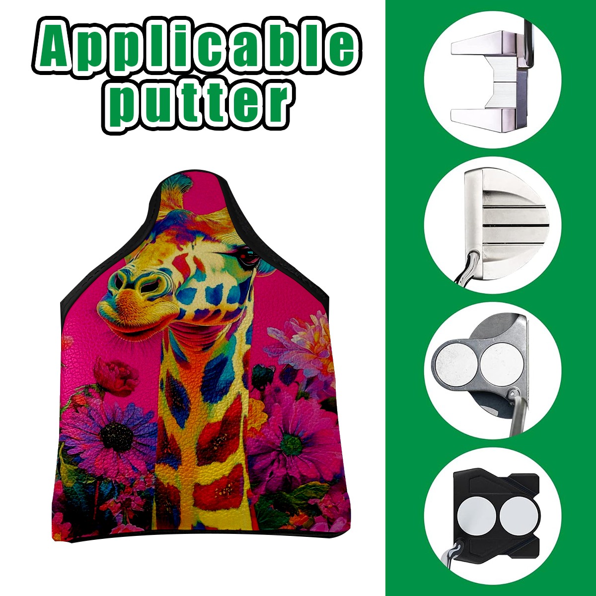 Mallet Putter Cover Magnetic PU Leather Golf Putter Headcover with Plush Lining, Mallet Putter Head Cover for Men Women Golf Club Covers (Colorful Giraffe Flowers)