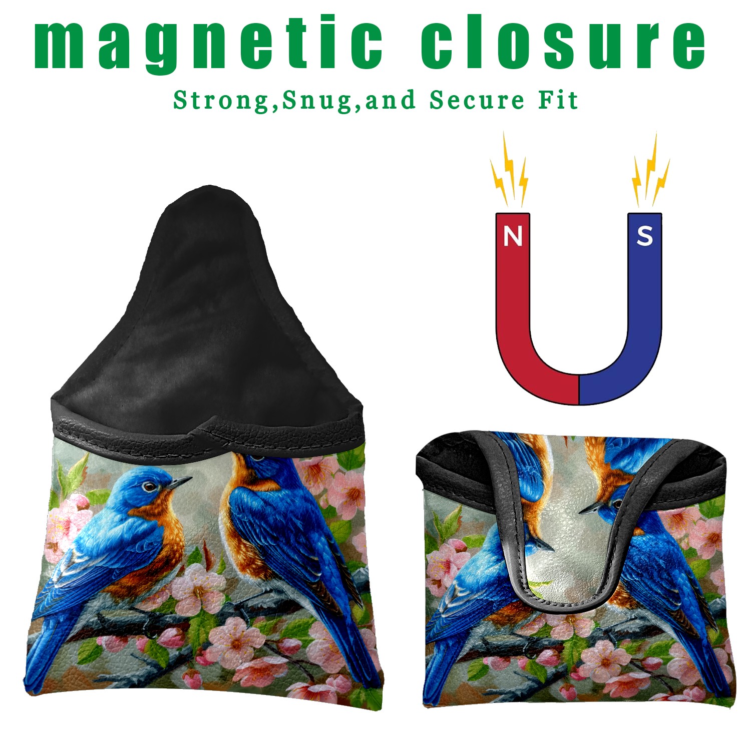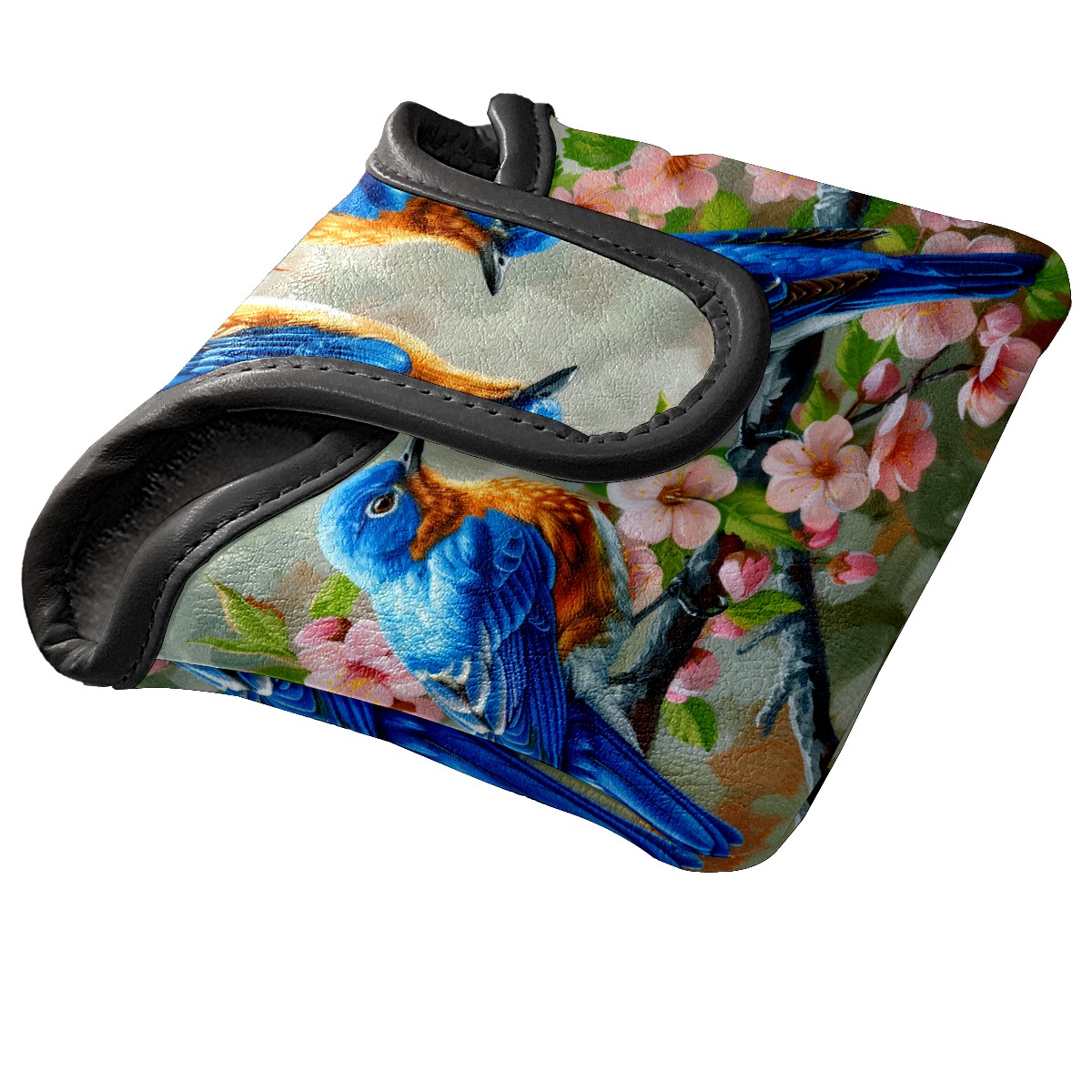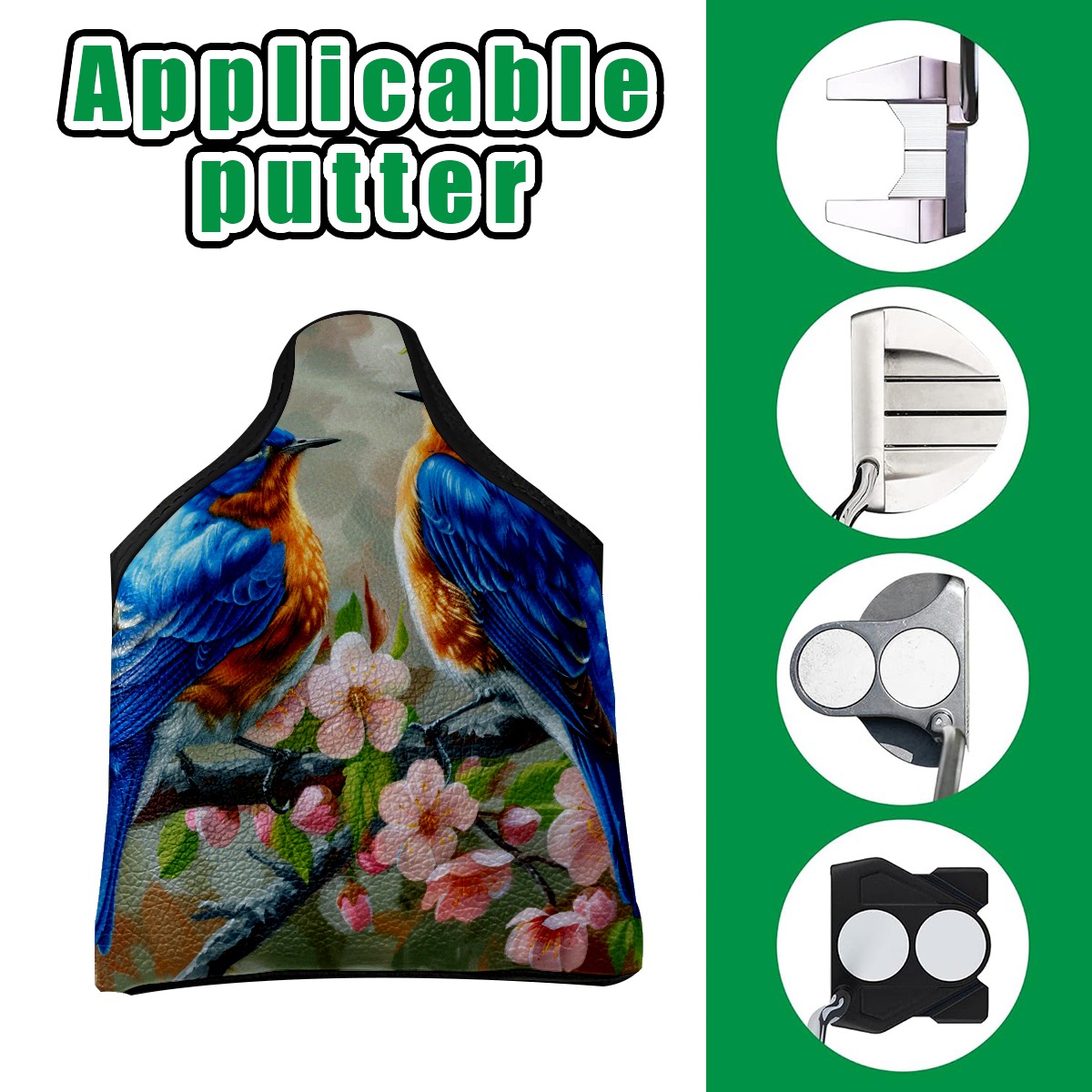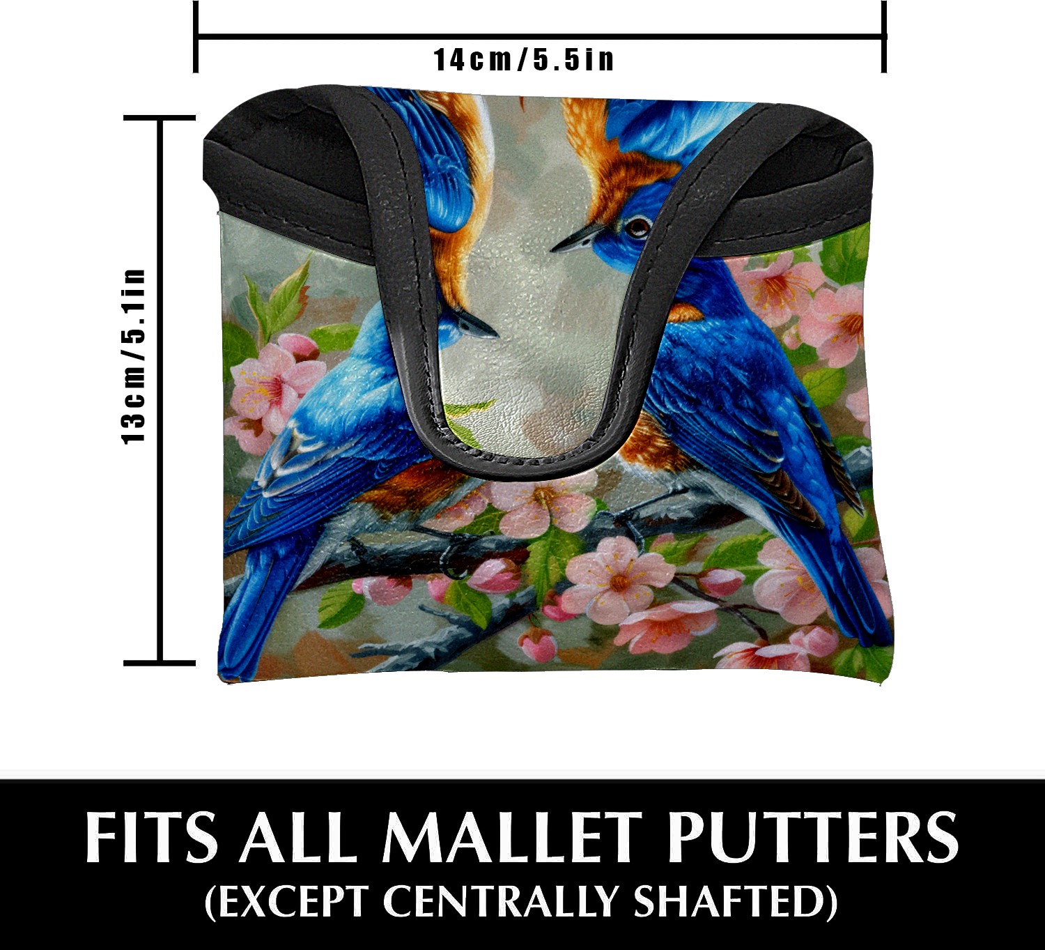 Mallet Putter Cover Magnetic PU Leather Golf Putter Headcover with Plush Lining, Mallet Putter Head Cover for Men Women Golf Club Covers (Blue Birds)