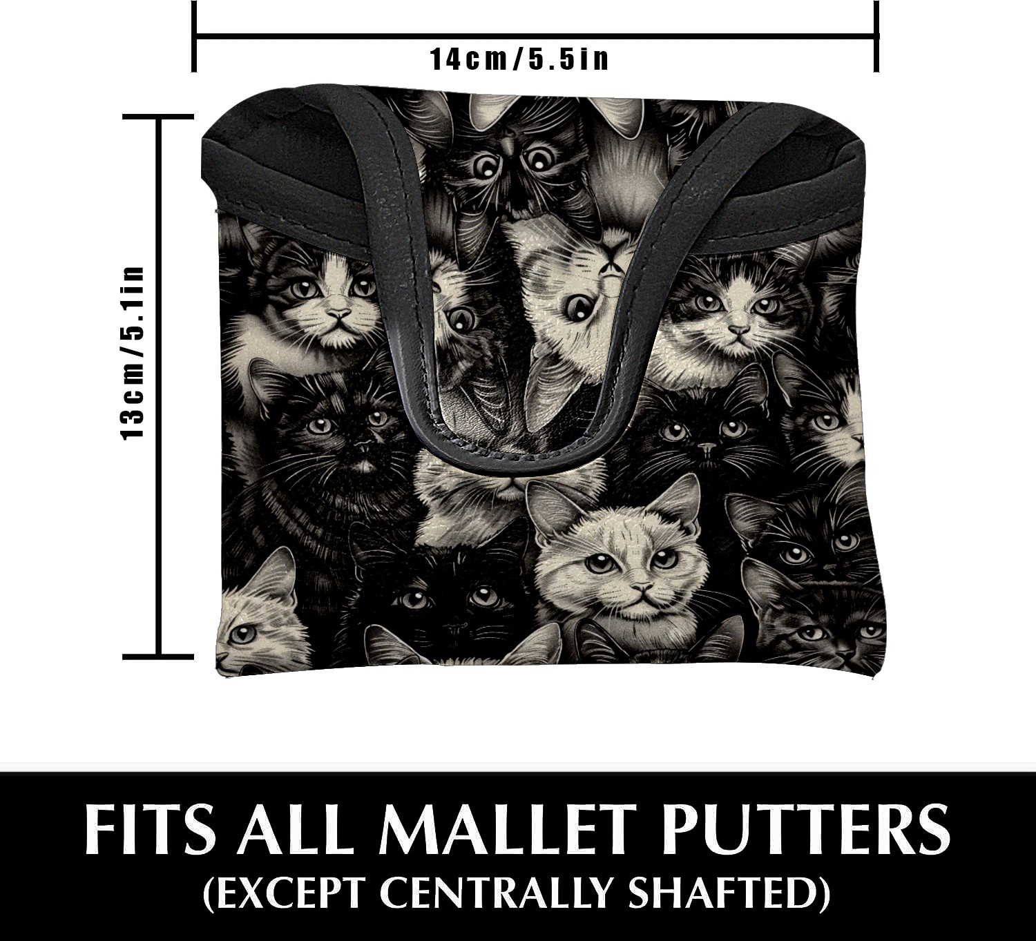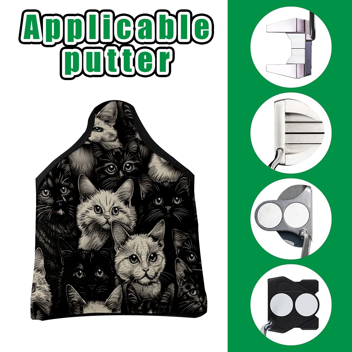 Mallet Putter Cover Magnetic PU Leather Golf Putter Headcover with Plush Lining, Mallet Putter Head Cover for Men Women Golf Club Covers (Cats Black)