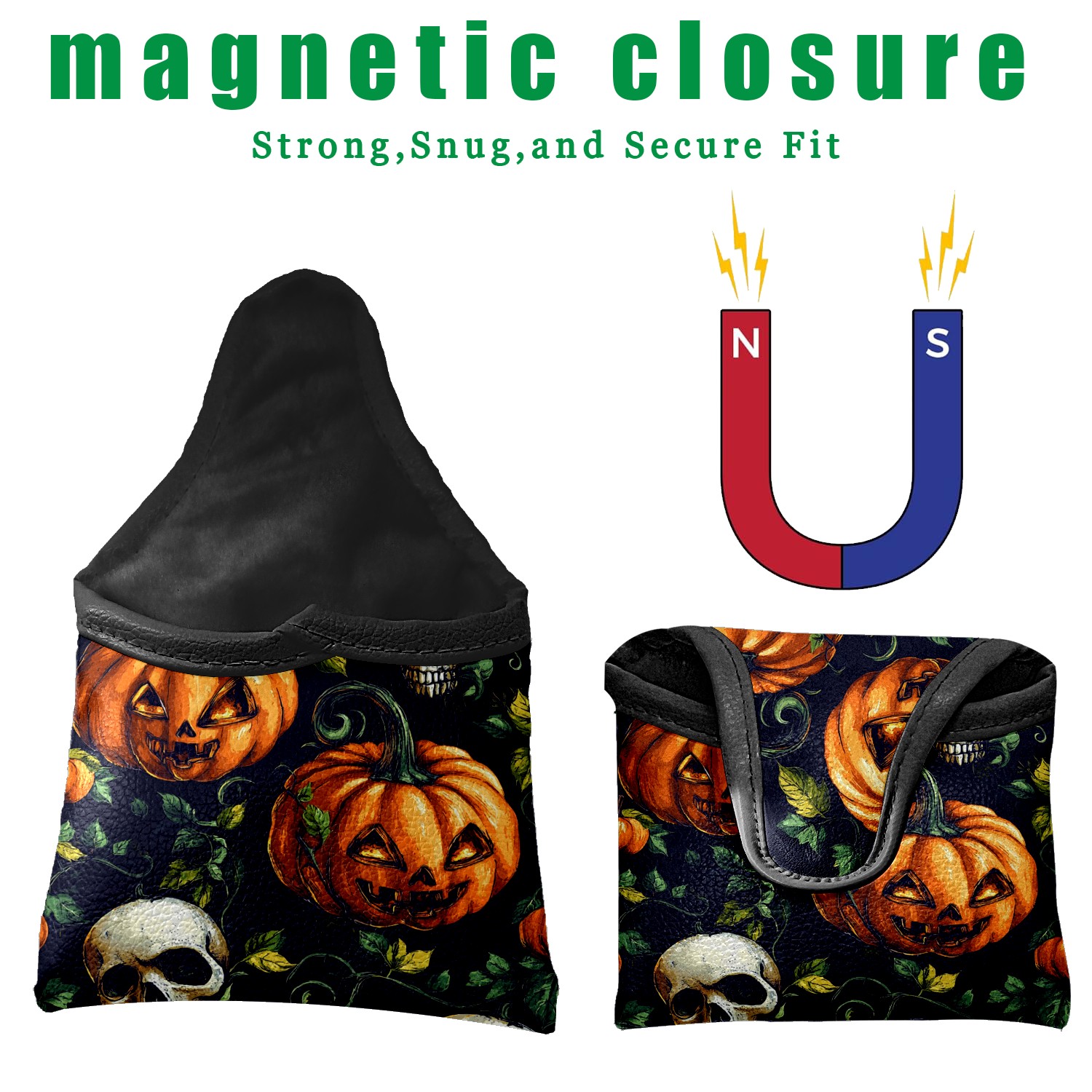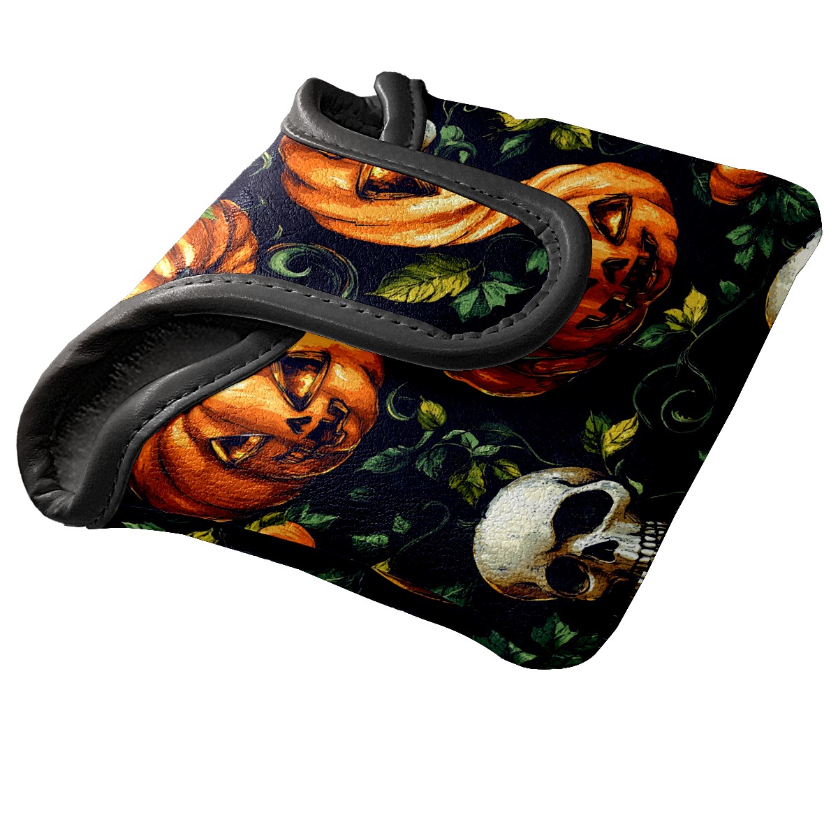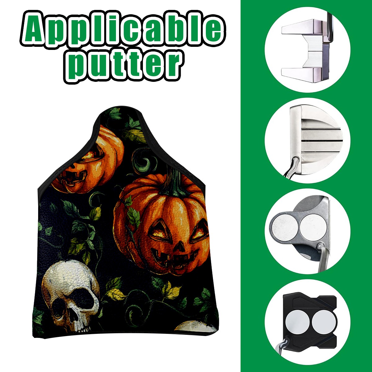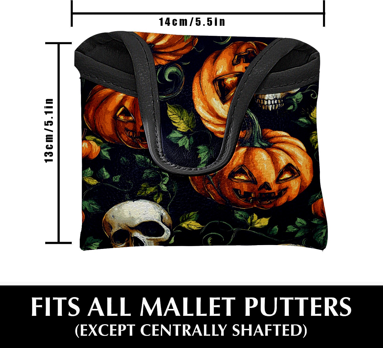 Mallet Putter Cover Magnetic PU Leather Golf Putter Headcover with Plush Lining, Mallet Putter Head Cover for Men Women Golf Club Covers (Orange Pumpkin Skull)