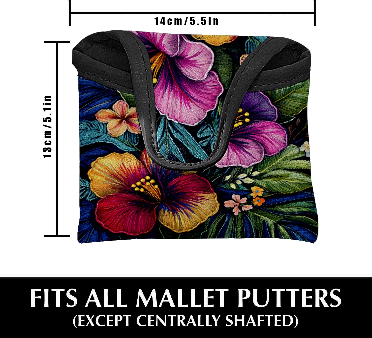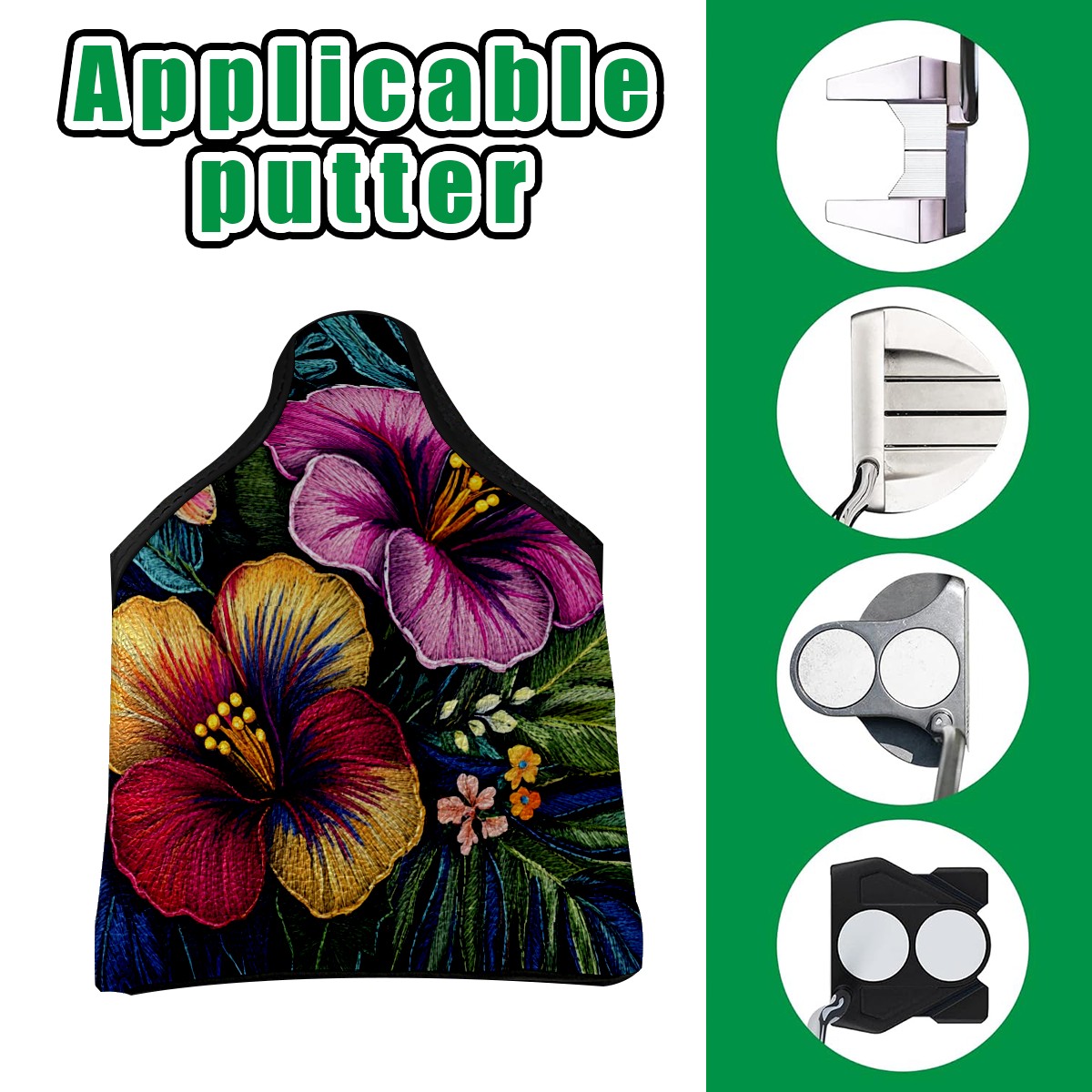 Mallet Putter Cover Magnetic PU Leather Golf Putter Headcover with Plush Lining, Mallet Putter Head Cover for Men Women Golf Club Covers (Colorful Tropical Exotic Flowers)
