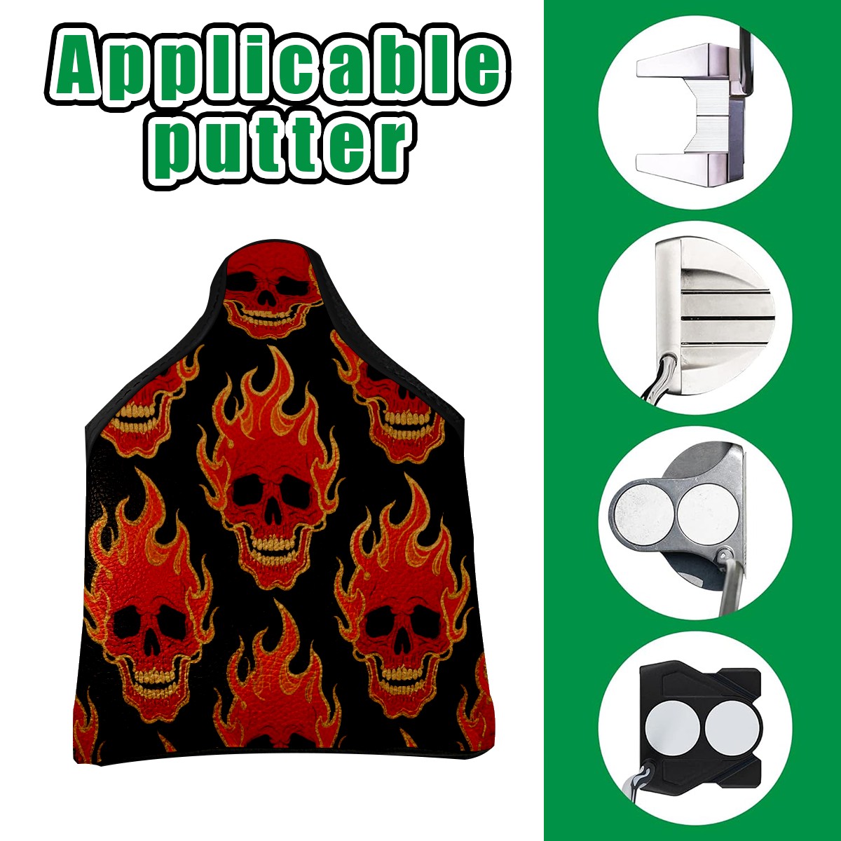 Mallet Putter Cover Magnetic PU Leather Golf Putter Headcover with Plush Lining, Mallet Putter Head Cover for Men Women Golf Club Covers (Skull)
