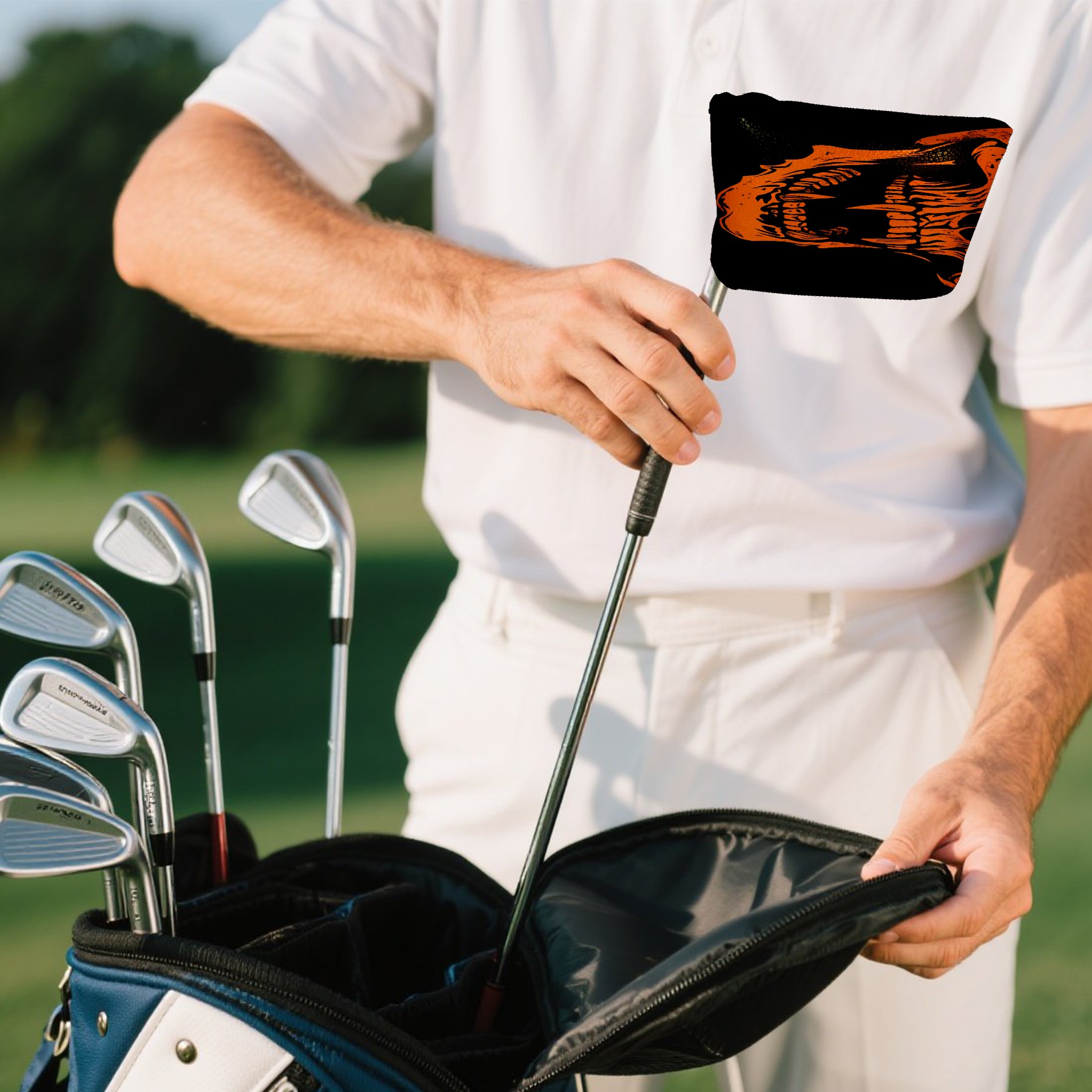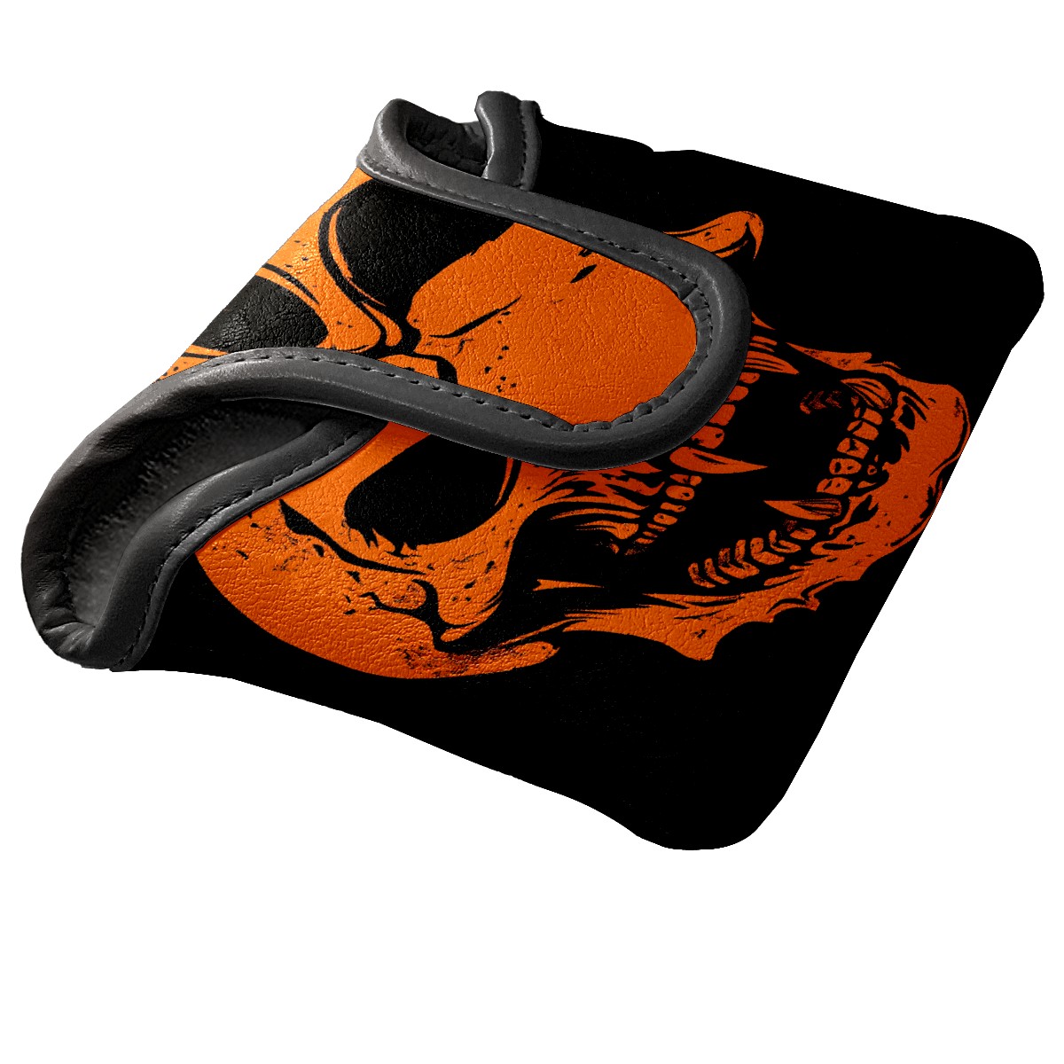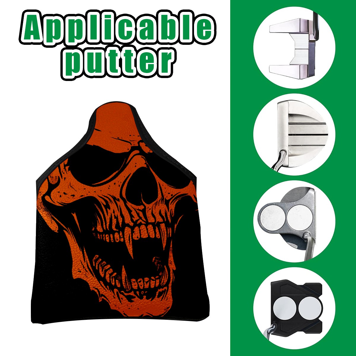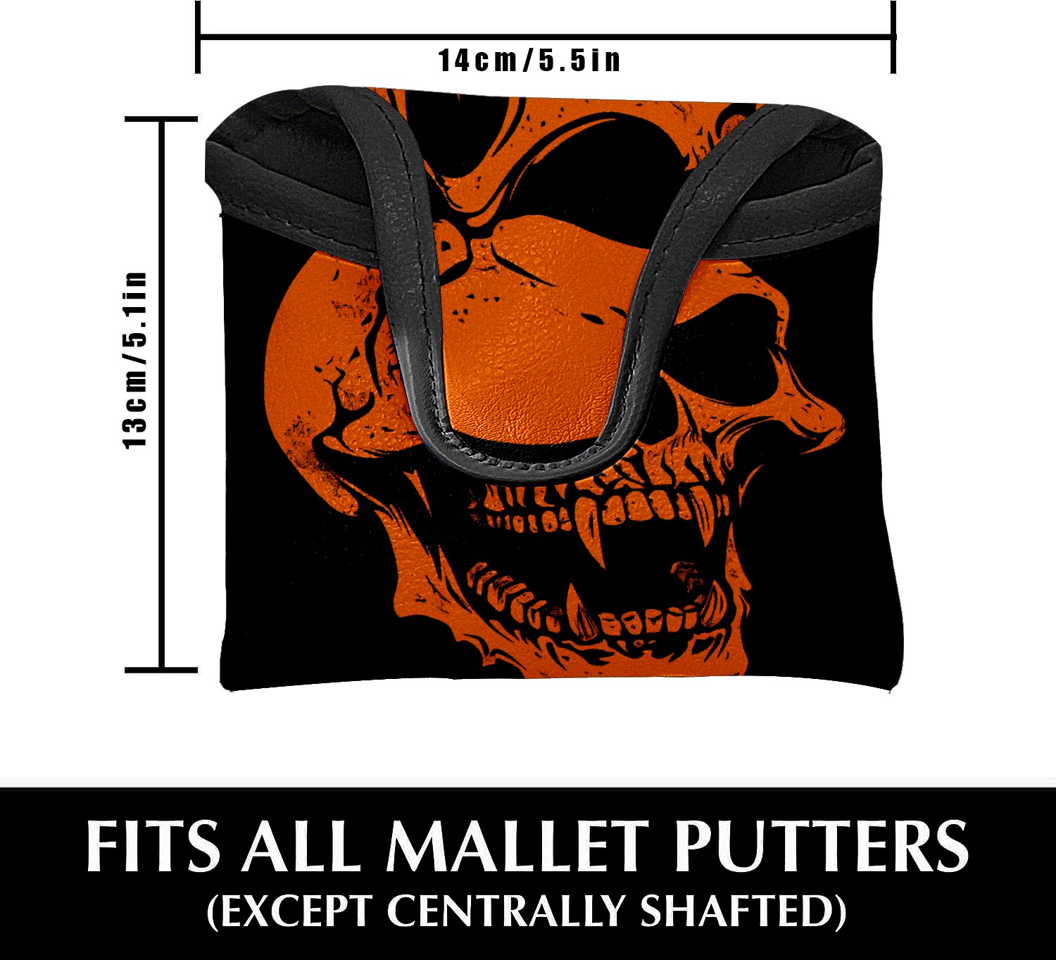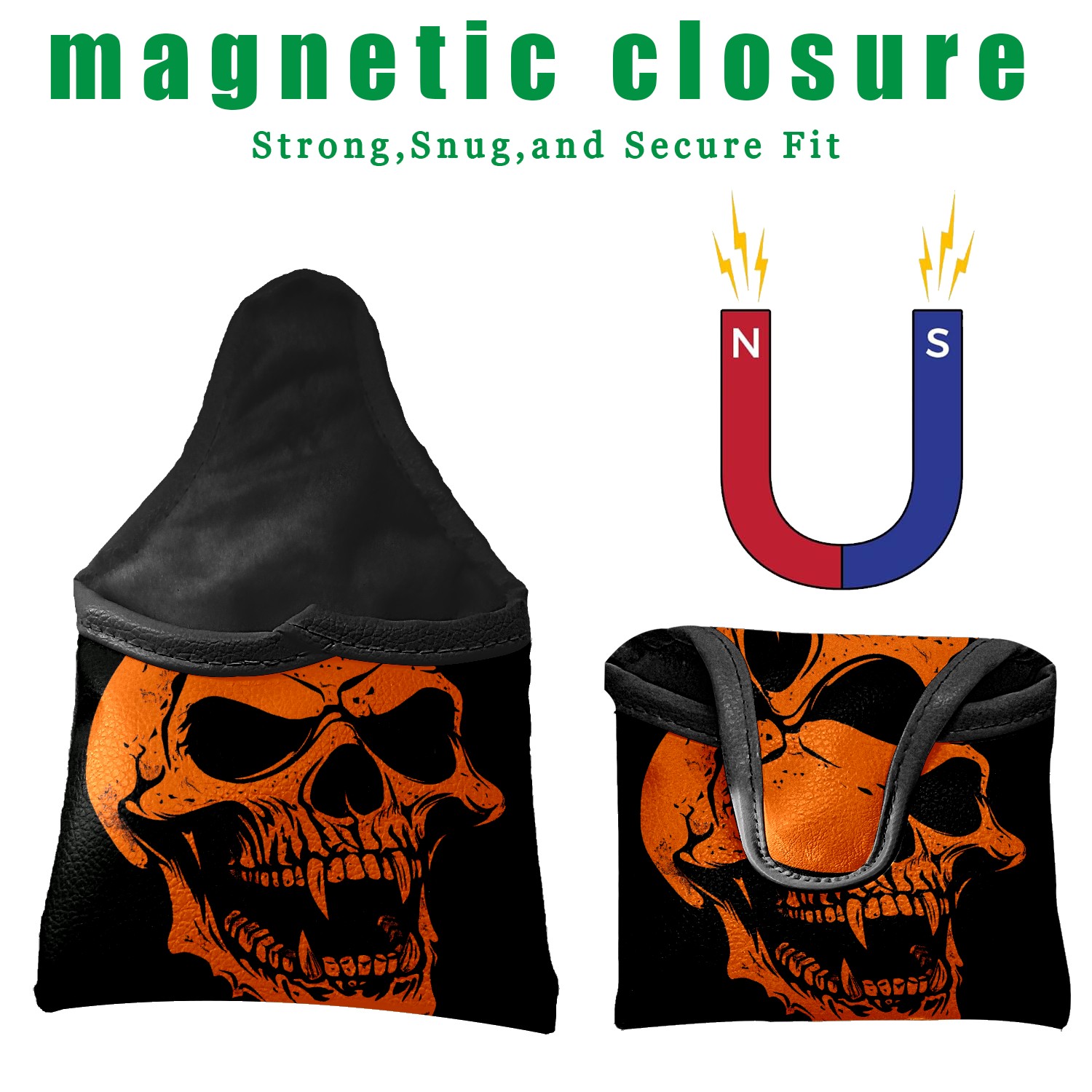 Mallet Putter Cover Magnetic PU Leather Golf Putter Headcover with Plush Lining, Mallet Putter Head Cover for Men Women Golf Club Covers (Skull Orange)