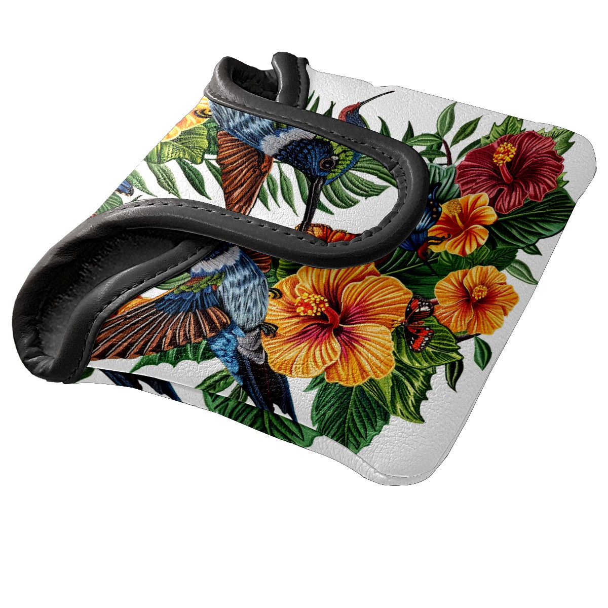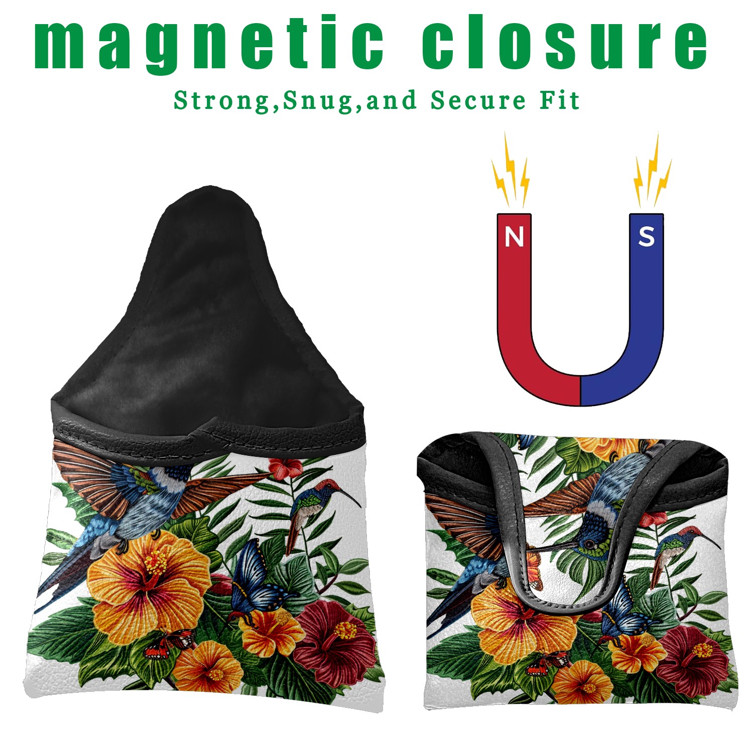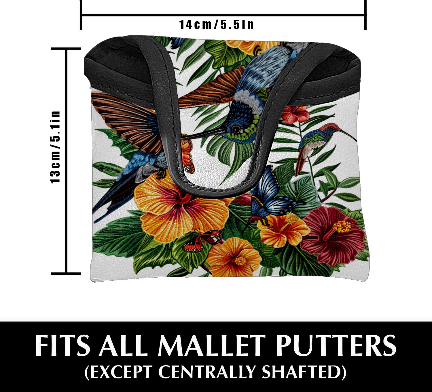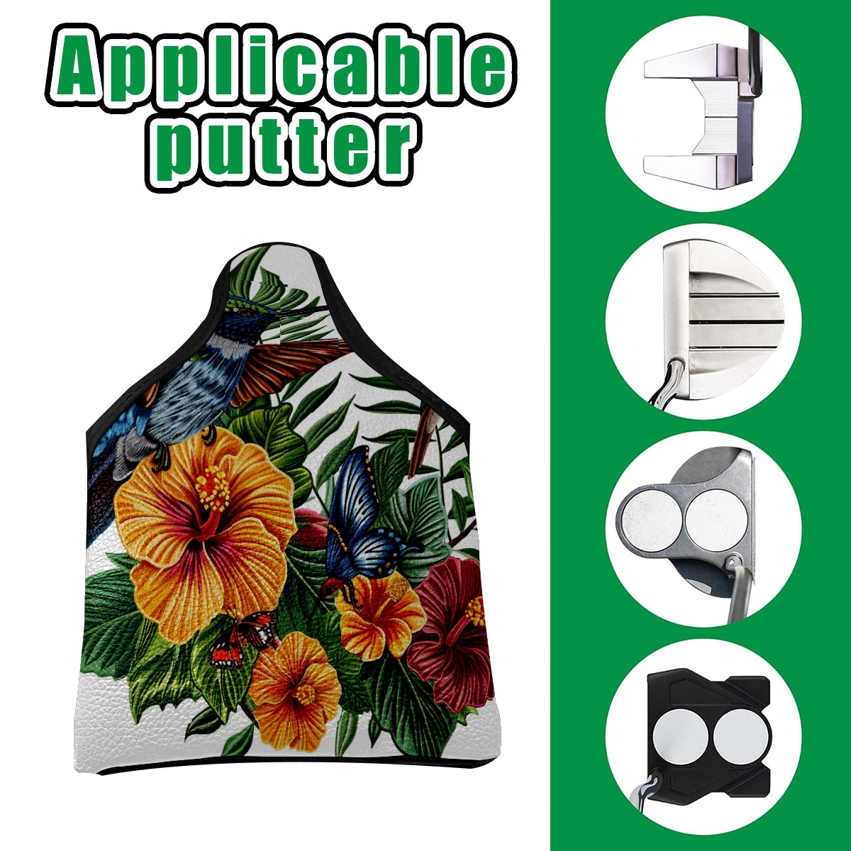 Mallet Putter Cover Magnetic PU Leather Golf Putter Headcover with Plush Lining, Mallet Putter Head Cover for Men Women Golf Club Covers (Hummingbird Flowers)