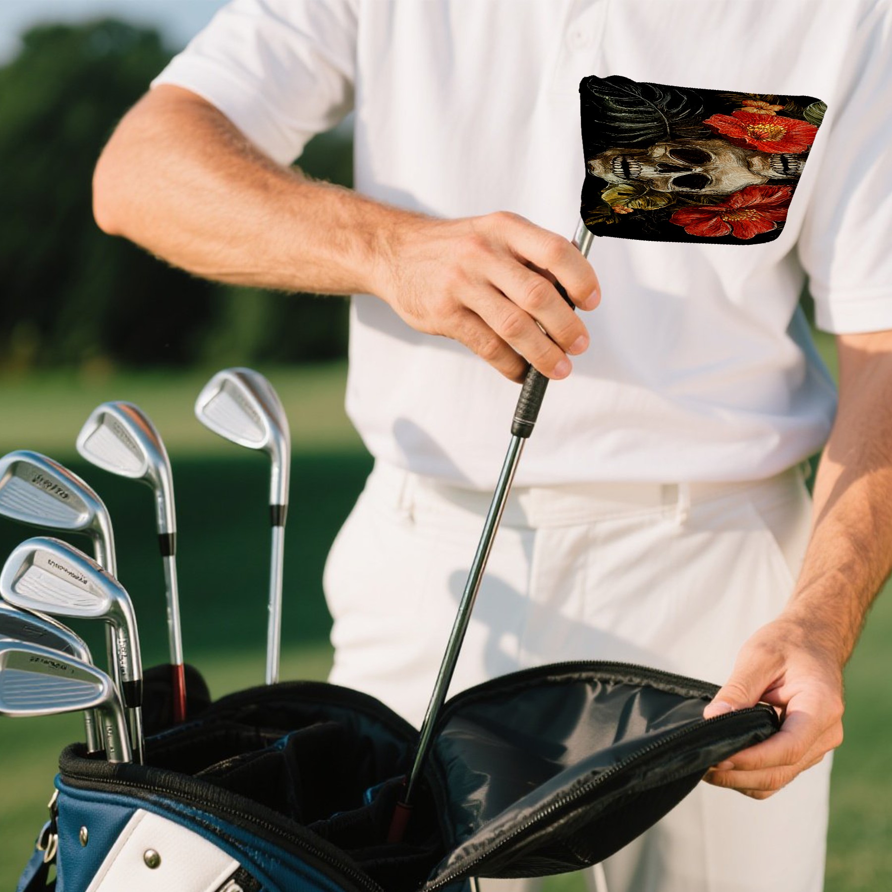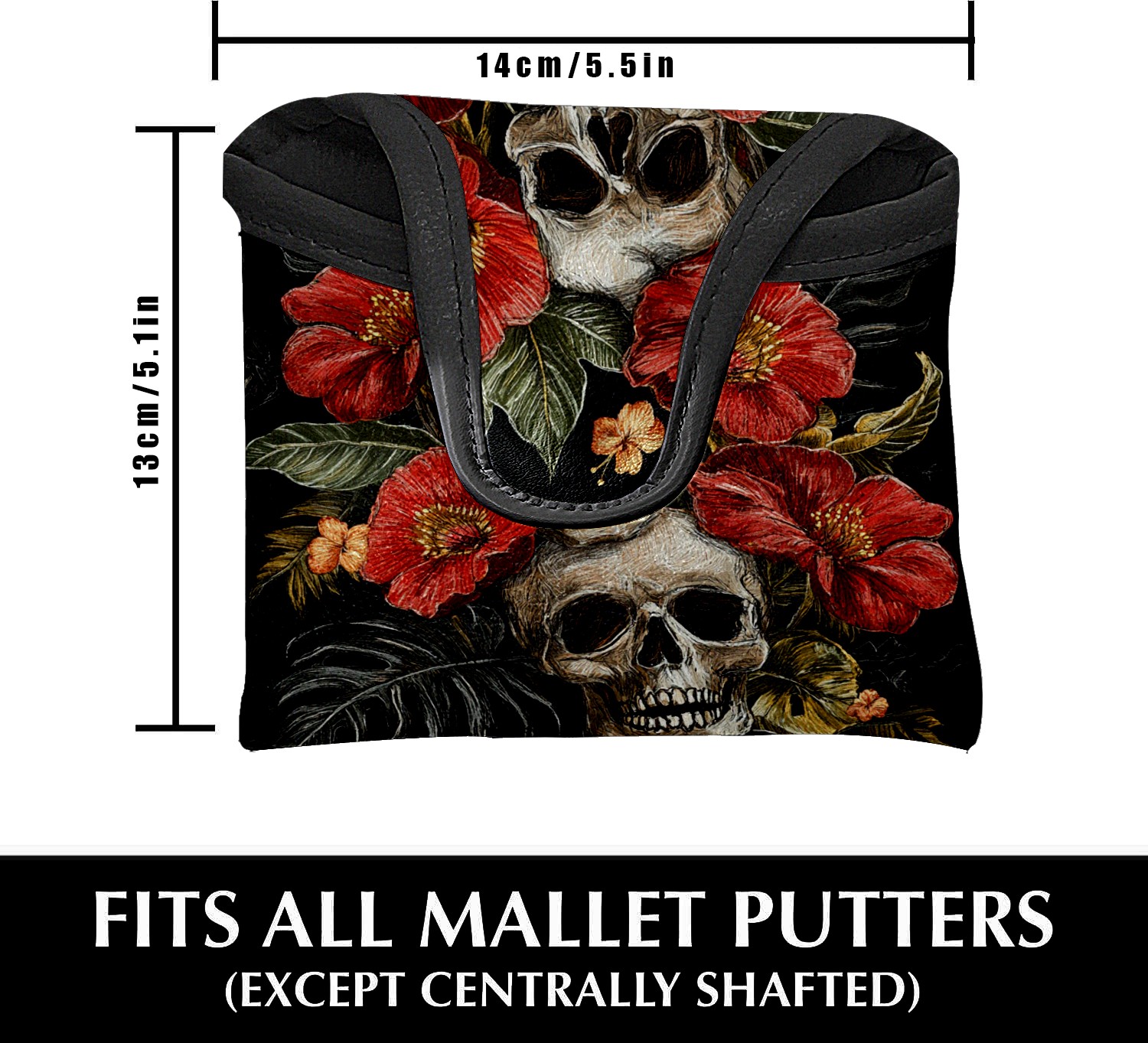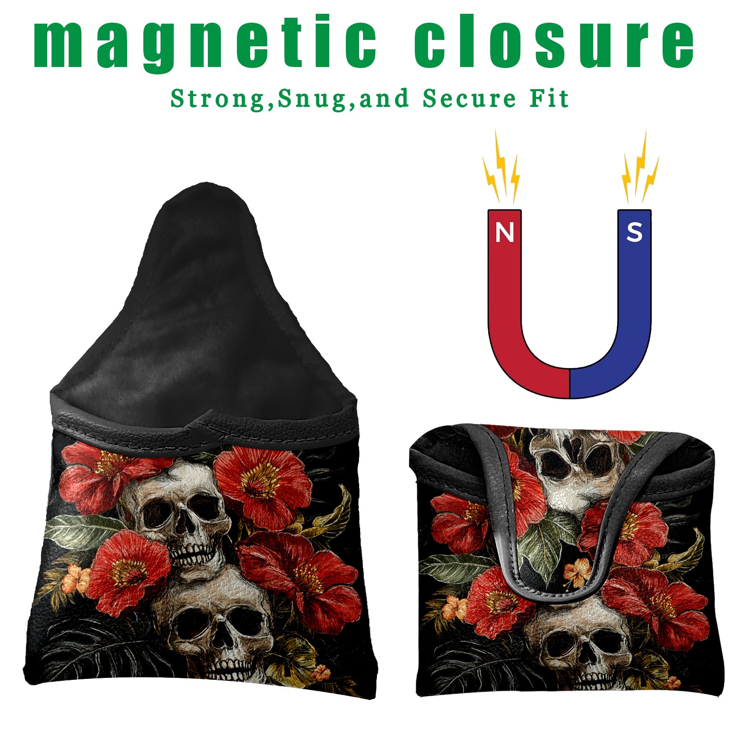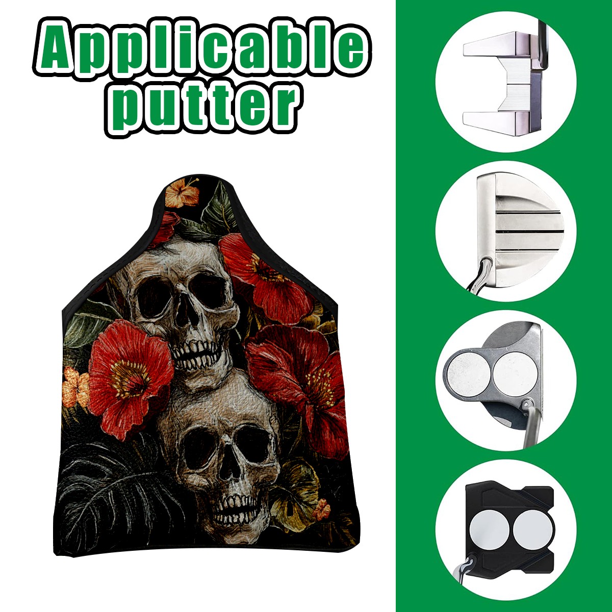Mallet Putter Cover Magnetic PU Leather Golf Putter Headcover with Plush Lining, Mallet Putter Head Cover for Men Women Golf Club Covers (Skulls Red Flowers)