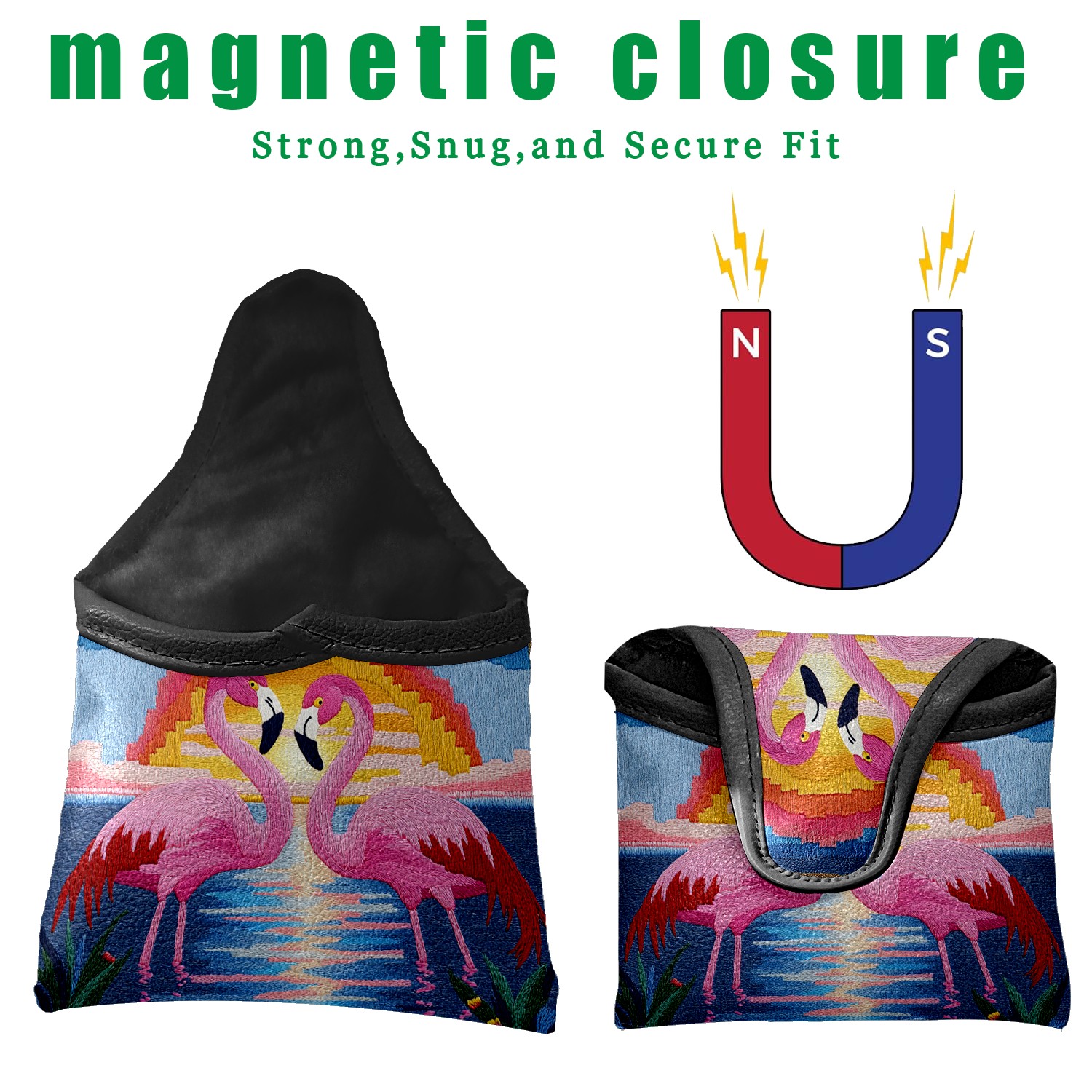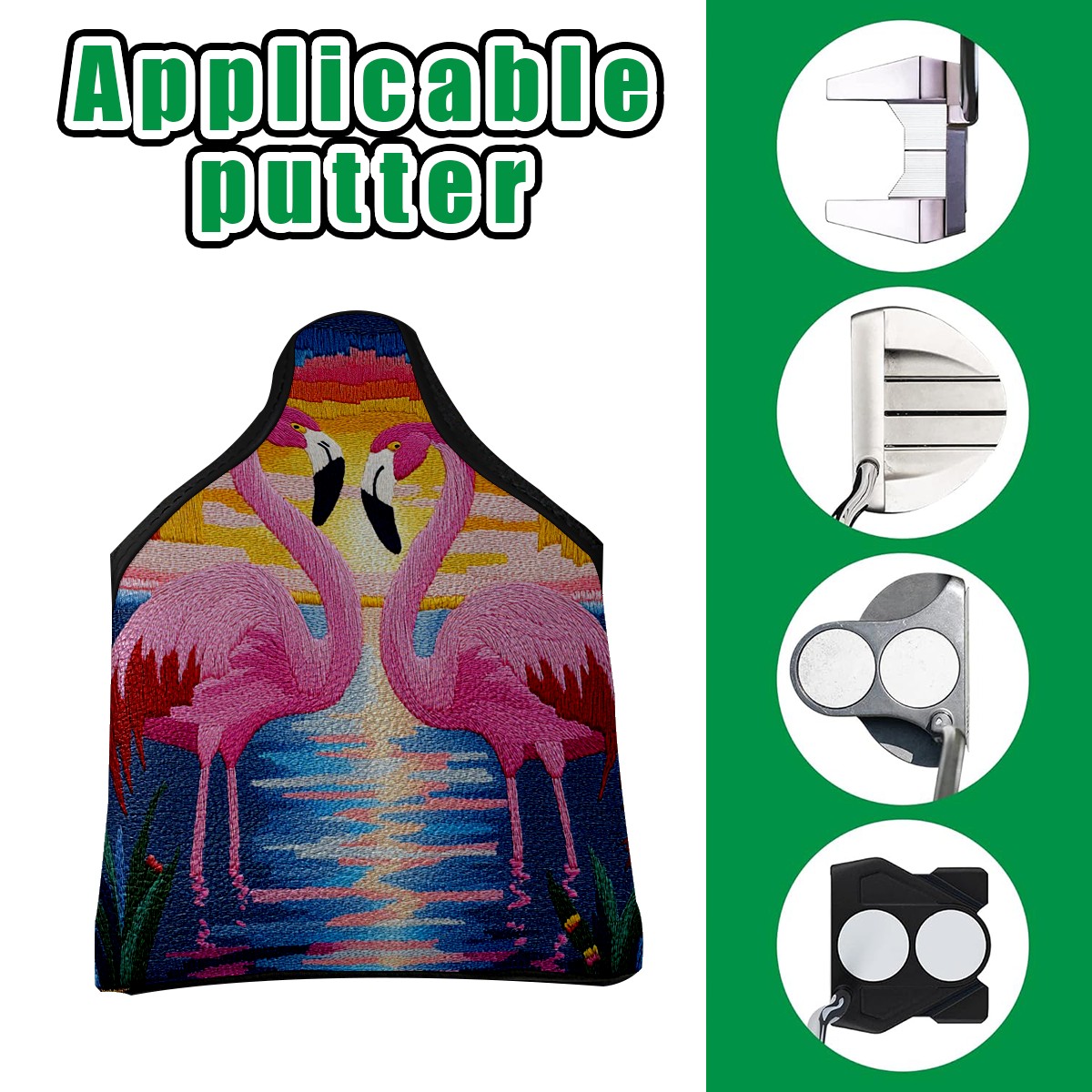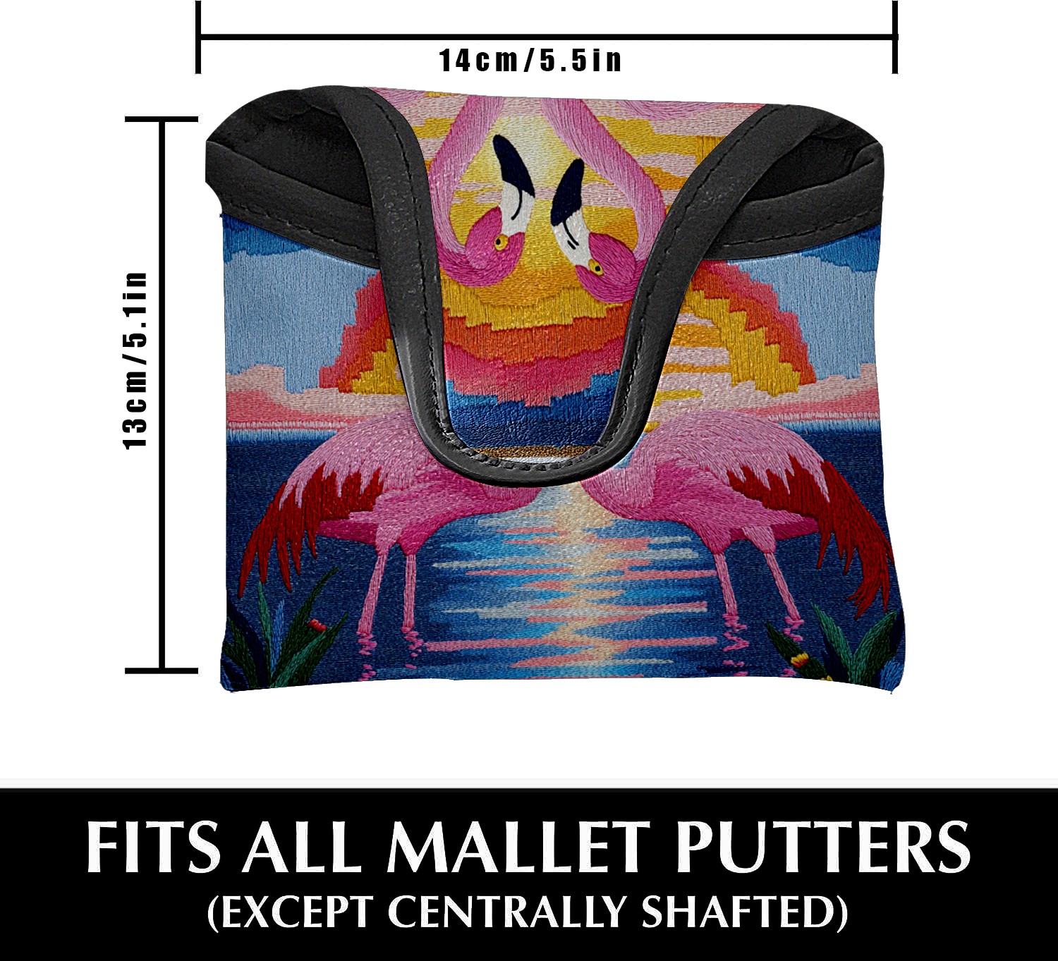 Mallet Putter Cover Magnetic PU Leather Golf Putter Headcover with Plush Lining, Mallet Putter Head Cover for Men Women Golf Club Covers (Pink Flamingos)