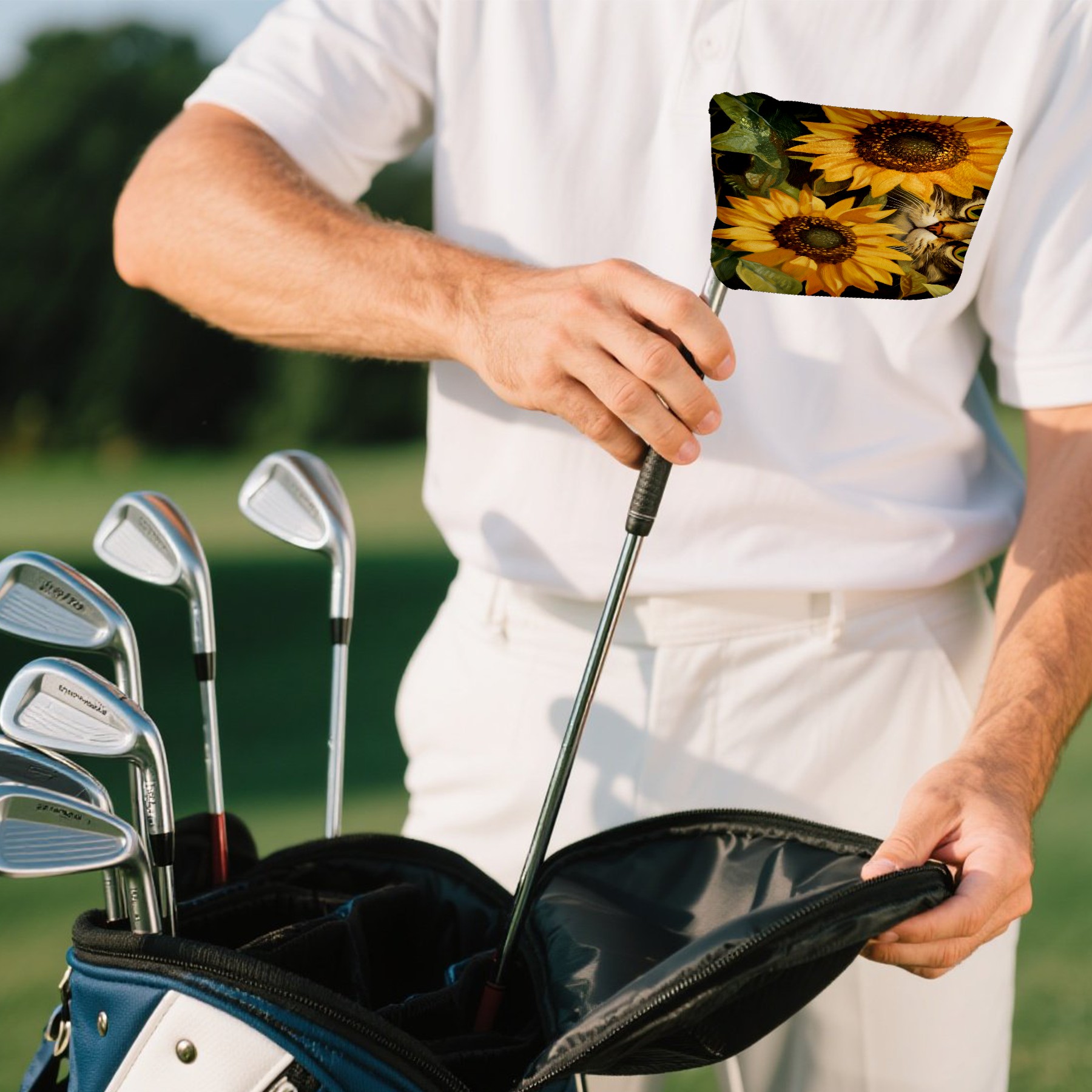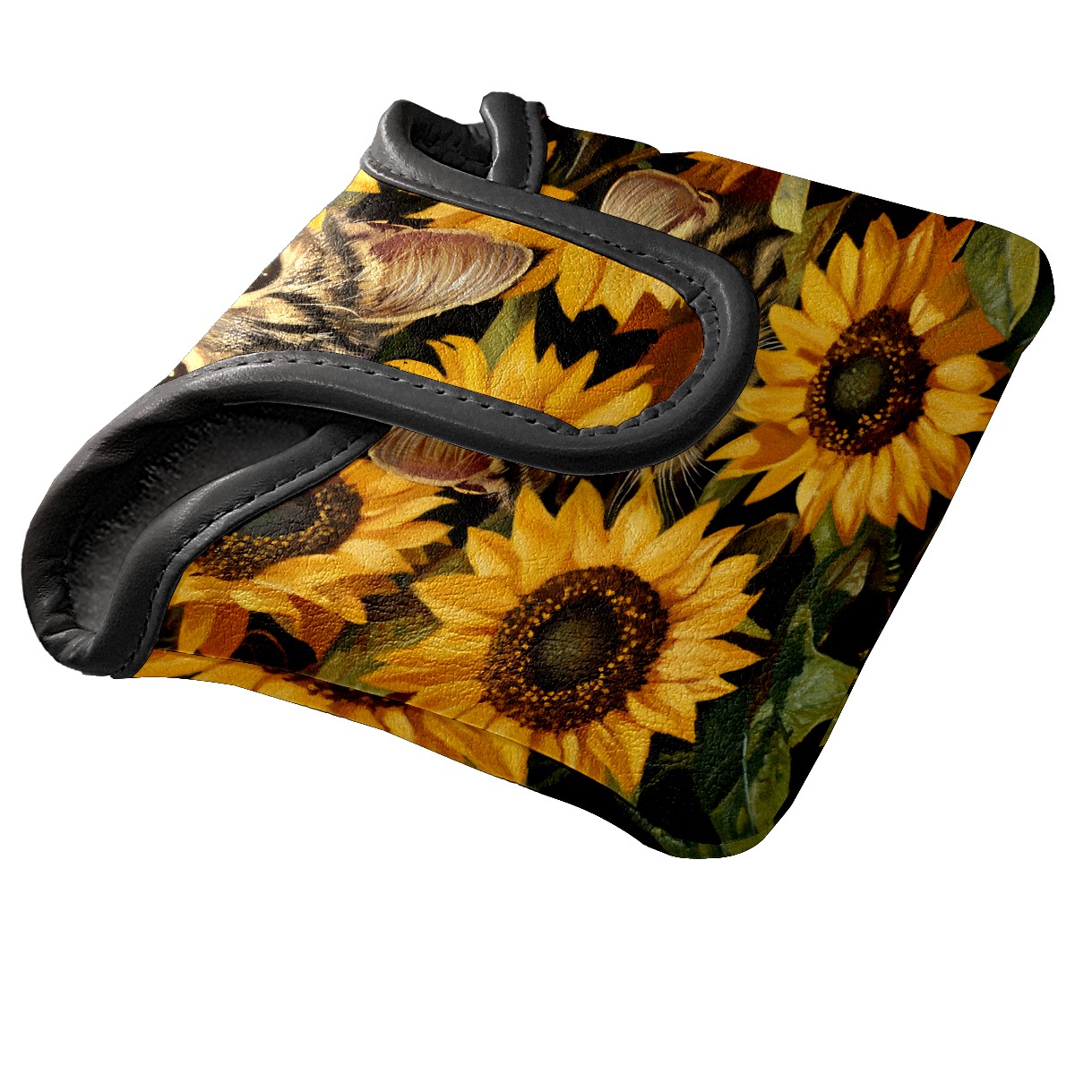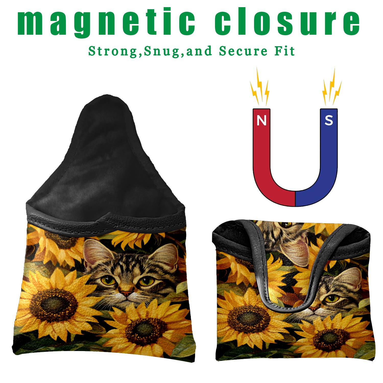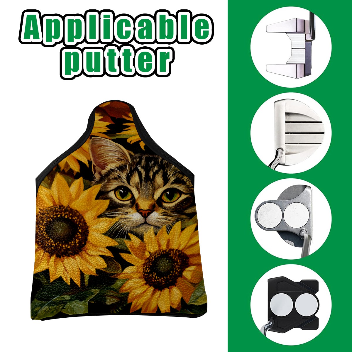 Mallet Putter Cover Magnetic PU Leather Golf Putter Headcover with Plush Lining, Mallet Putter Head Cover for Men Women Golf Club Covers (Cat Sunflowers)