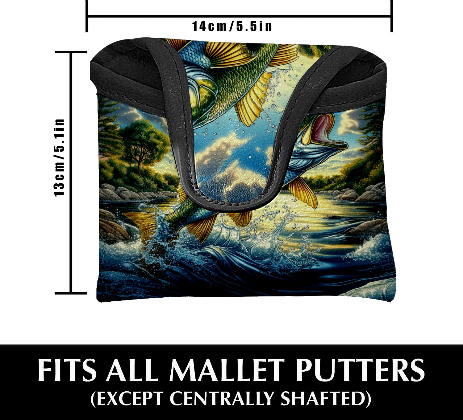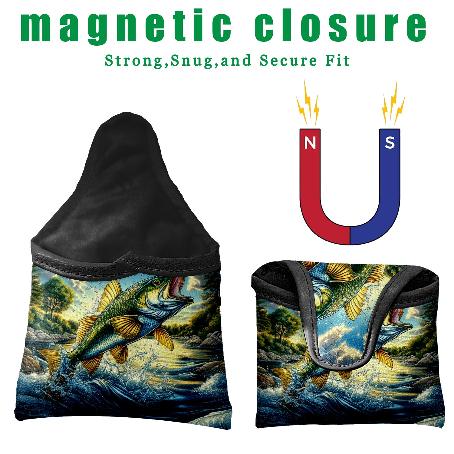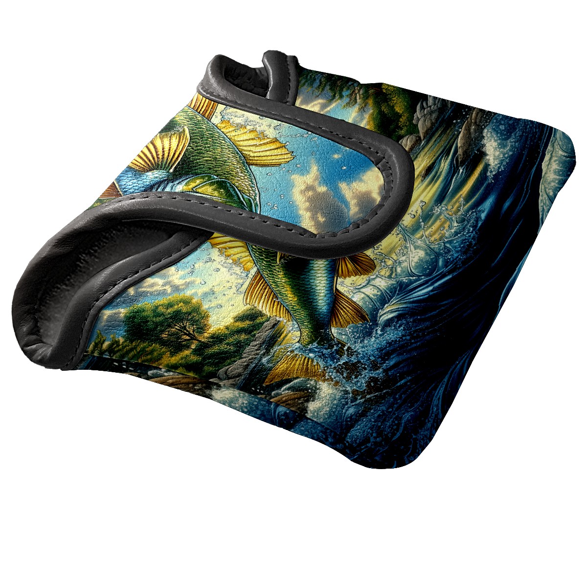 Mallet Putter Cover Magnetic PU Leather Golf Putter Headcover with Plush Lining, Mallet Putter Head Cover for Men Women Golf Club Covers (Largemouth Bass Fish)