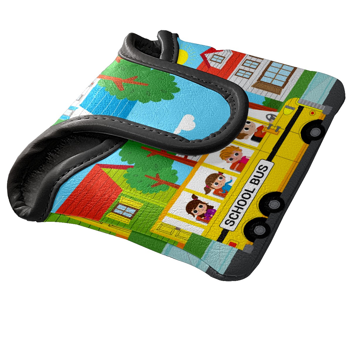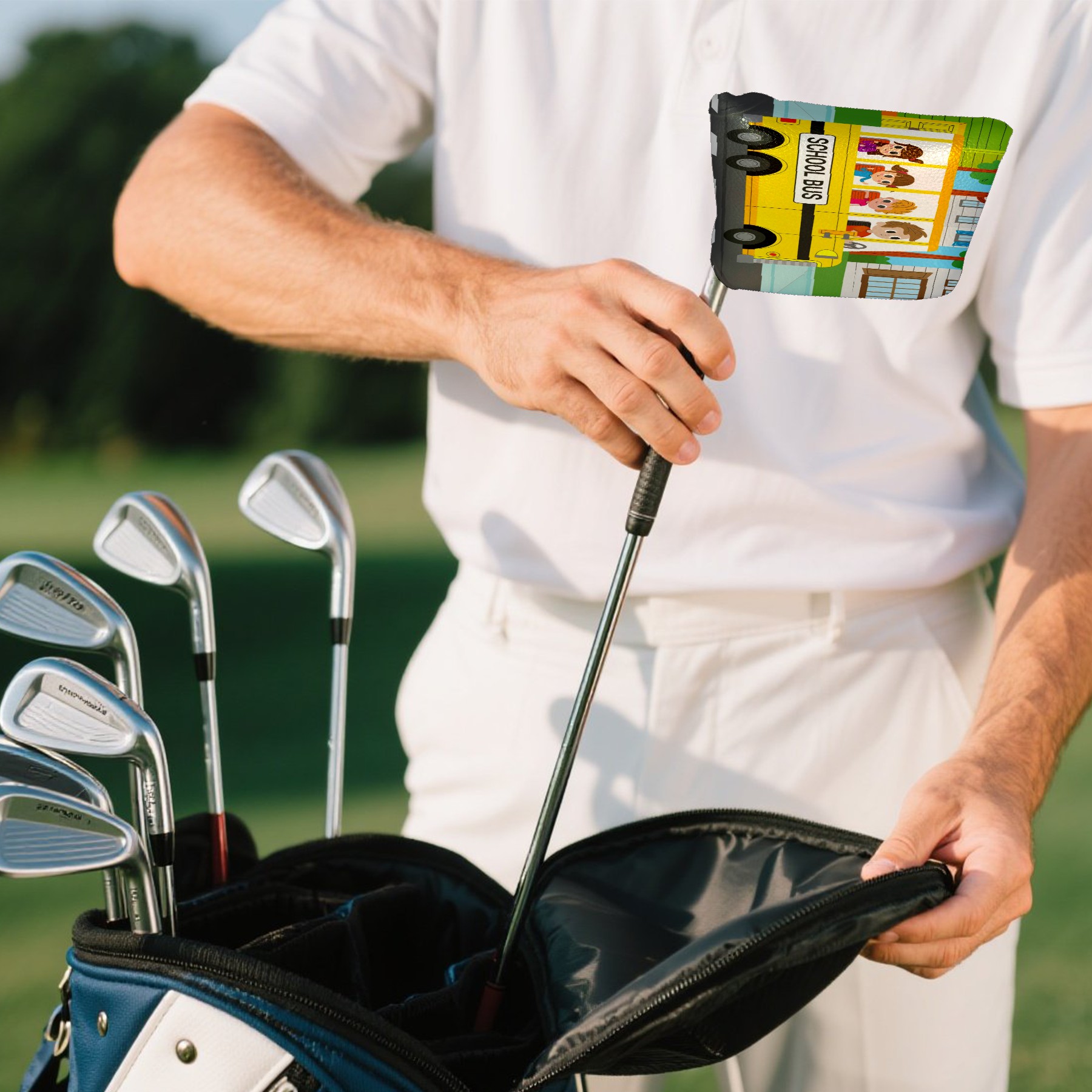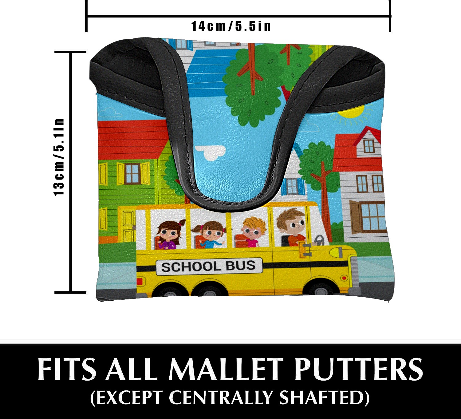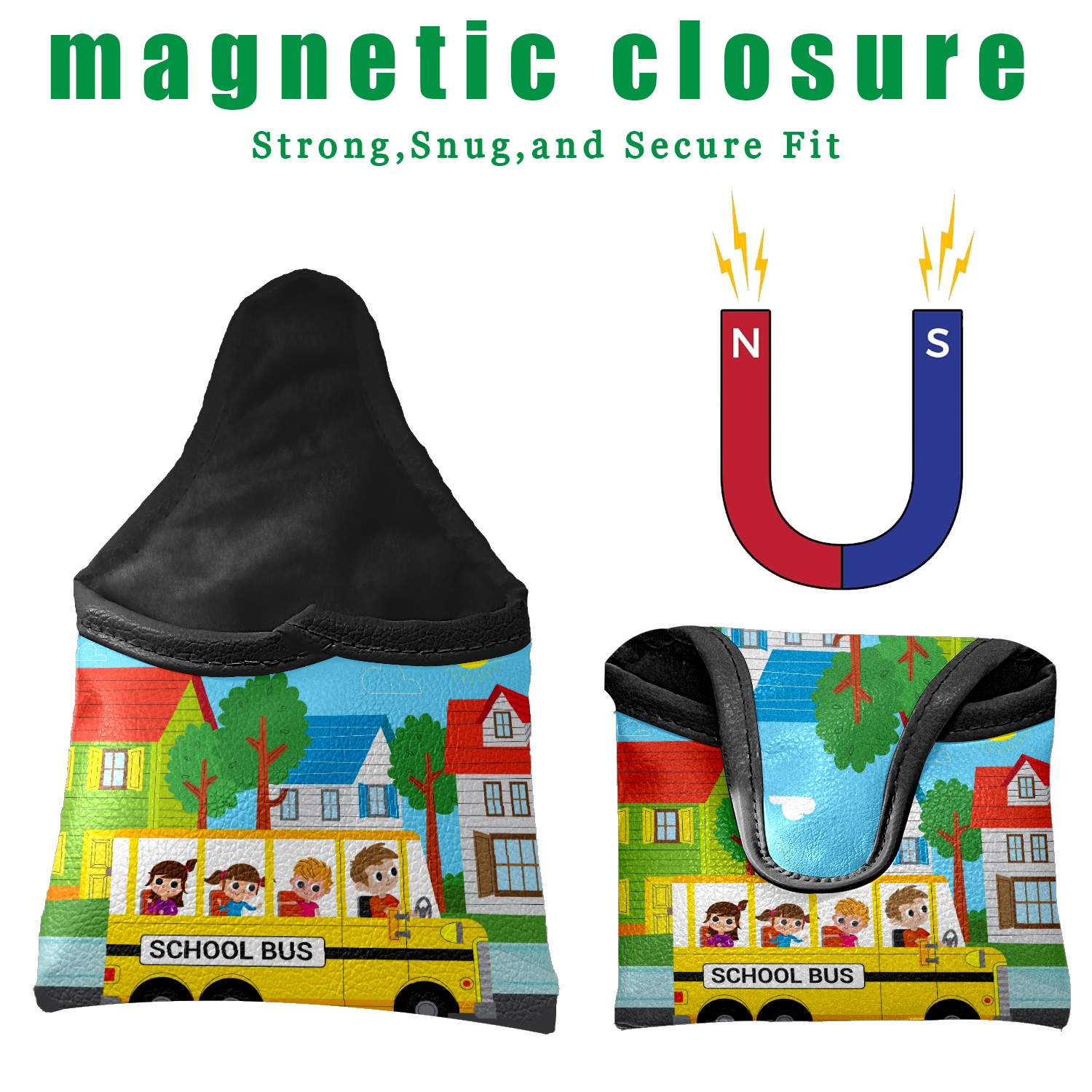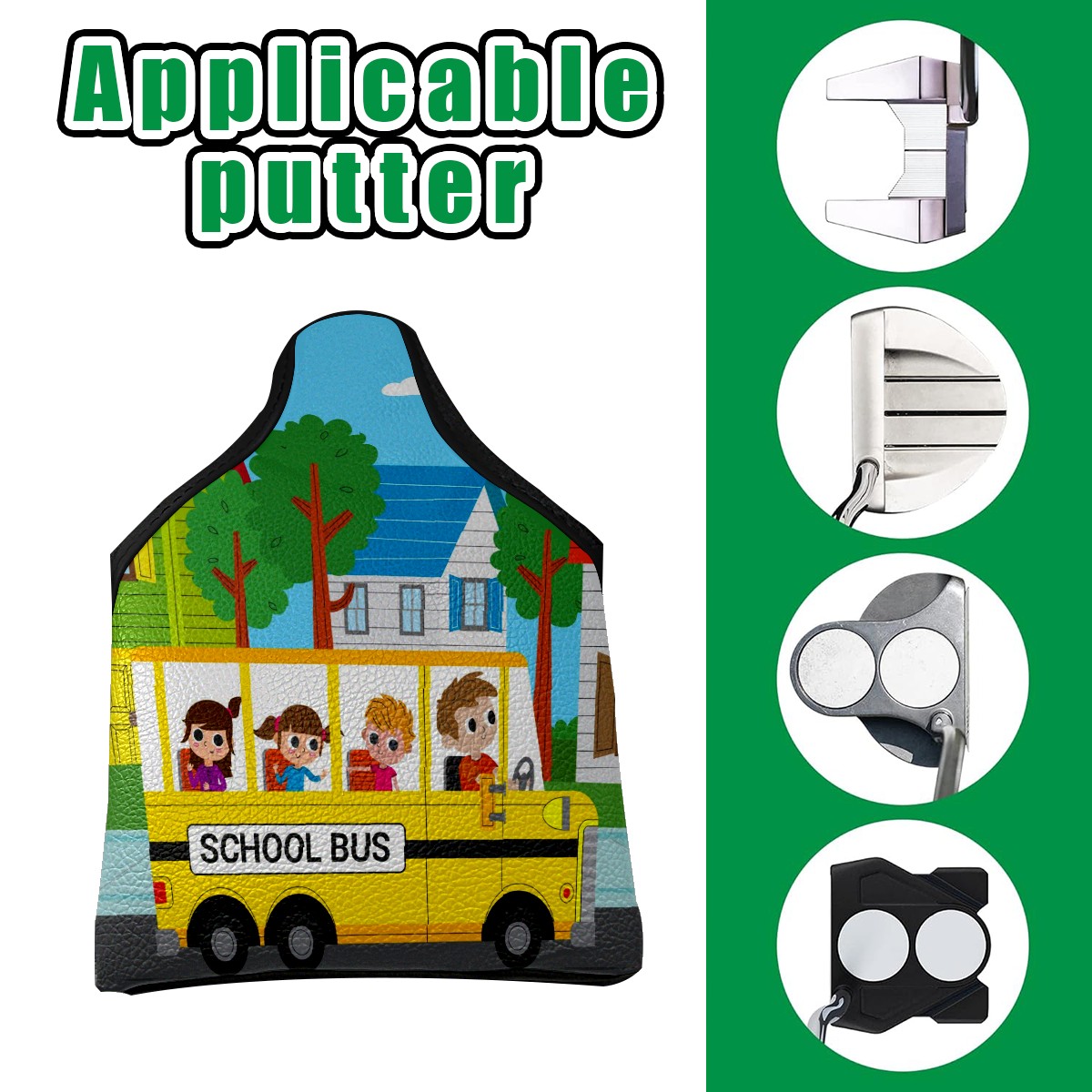Mallet Putter Cover Magnetic PU Leather Golf Putter Headcover with Plush Lining, Mallet Putter Head Cover for Men Women Golf Club Covers (Cartoon Kids School Bus Pattern)