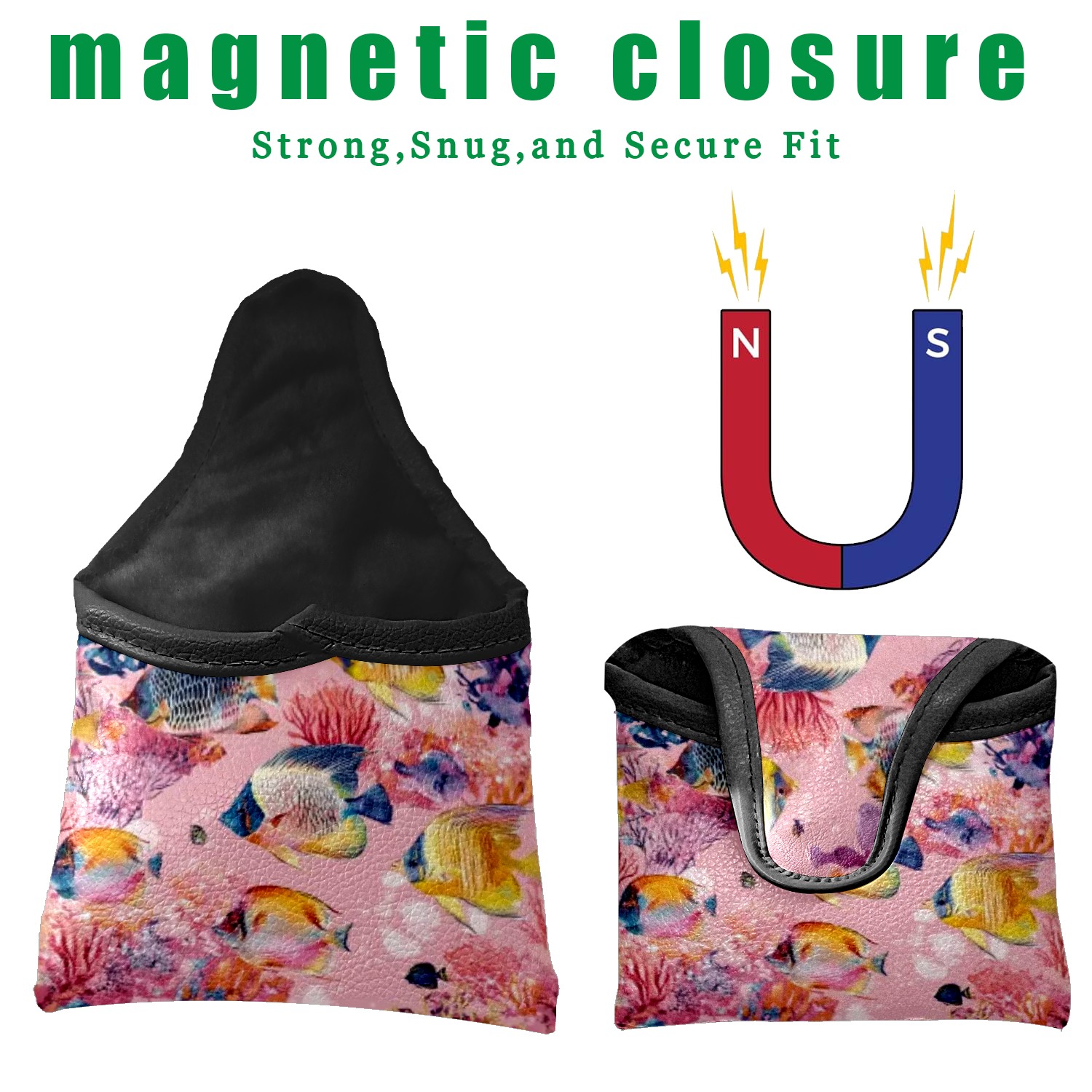 Mallet Putter Cover Magnetic PU Leather Golf Putter Headcover with Plush Lining, Mallet Putter Head Cover for Men Women Golf Club Covers (Tropical Fish)