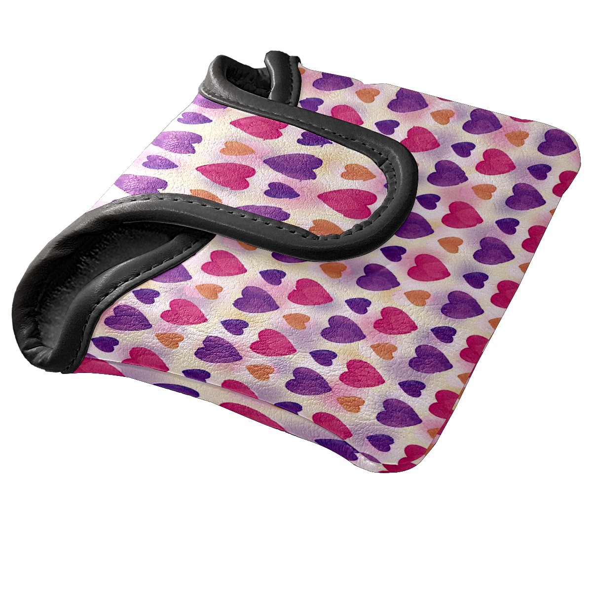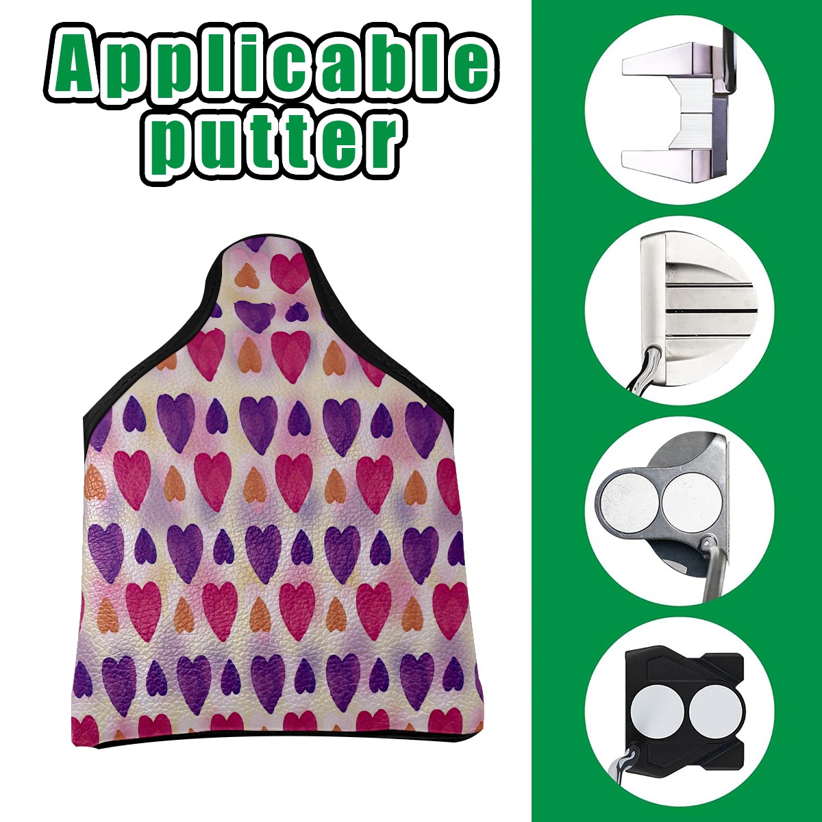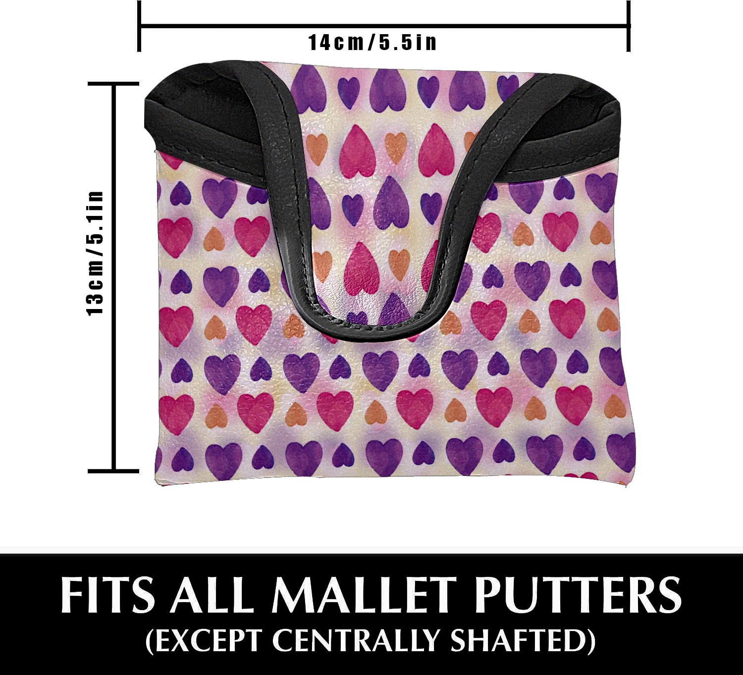 Mallet Putter Cover Magnetic PU Leather Golf Putter Headcover with Plush Lining, Mallet Putter Head Cover for Men Women Golf Club Covers (Pink Purple Orange Love Heart Pattern)