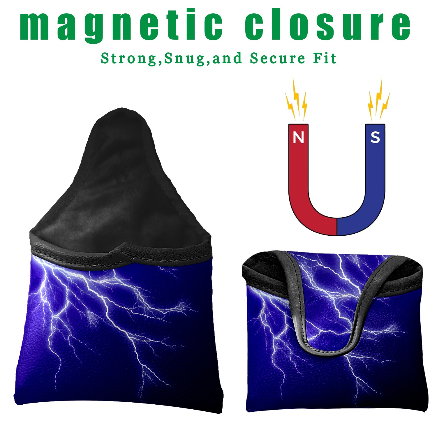 Mallet Putter Cover Magnetic PU Leather Golf Putter Headcover with Plush Lining, Mallet Putter Head Cover for Men Women Golf Club Covers (Lightning Purple)