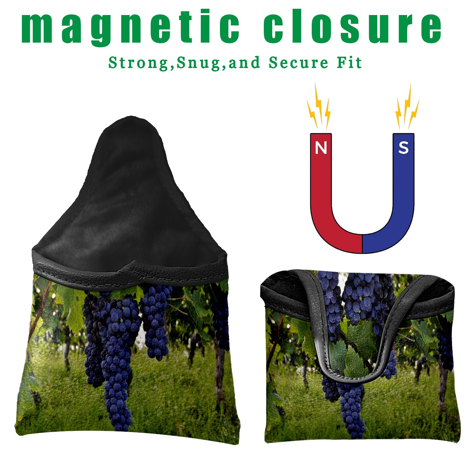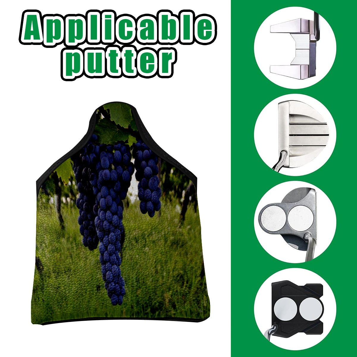 Mallet Putter Cover Magnetic PU Leather Golf Putter Headcover with Plush Lining, Mallet Putter Head Cover for Men Women Golf Club Covers (Purple Grape Wines)