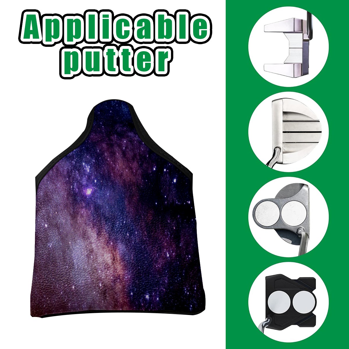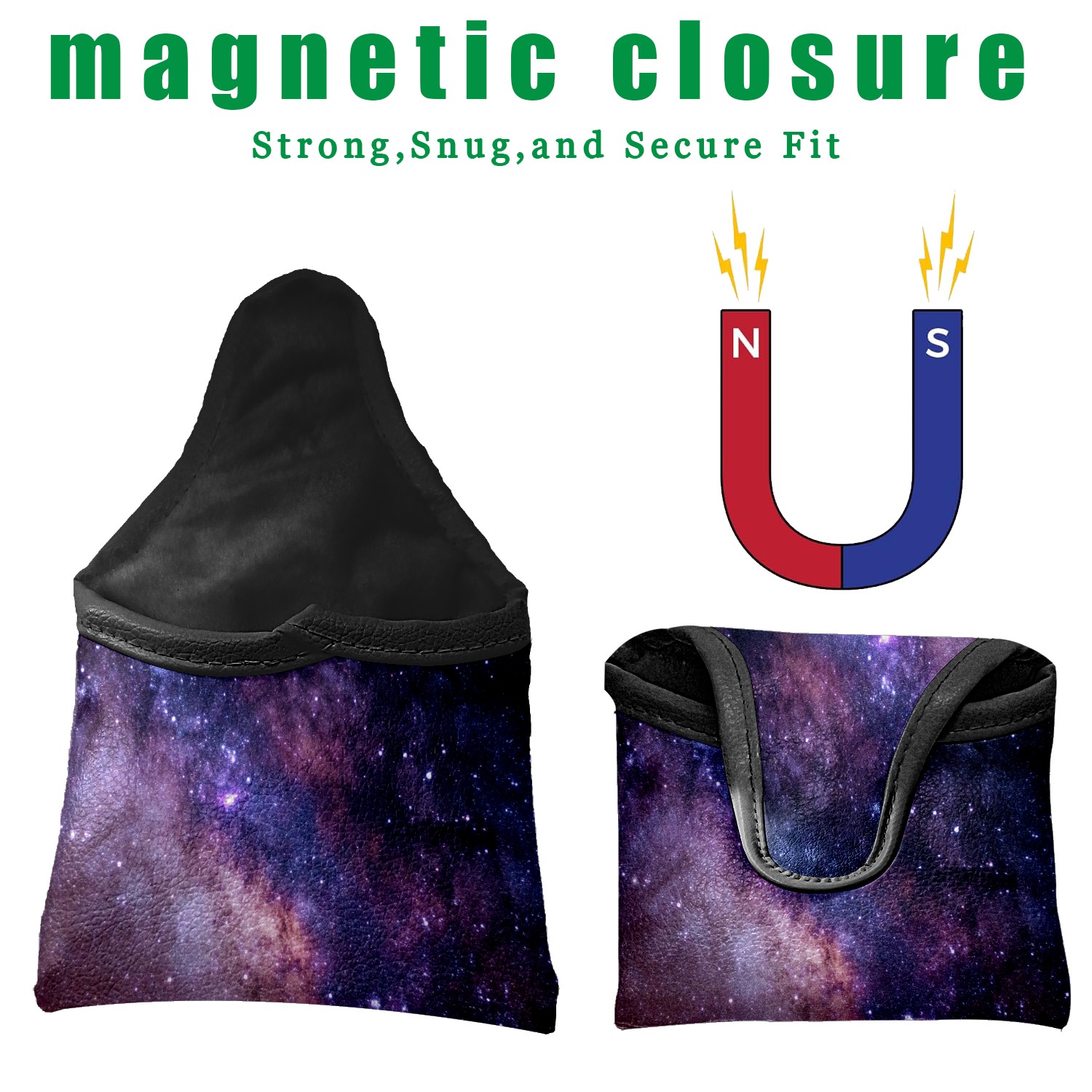 Mallet Putter Cover Magnetic PU Leather Golf Putter Headcover with Plush Lining, Mallet Putter Head Cover for Men Women Golf Club Covers (Purple Night Sky Galaxy)