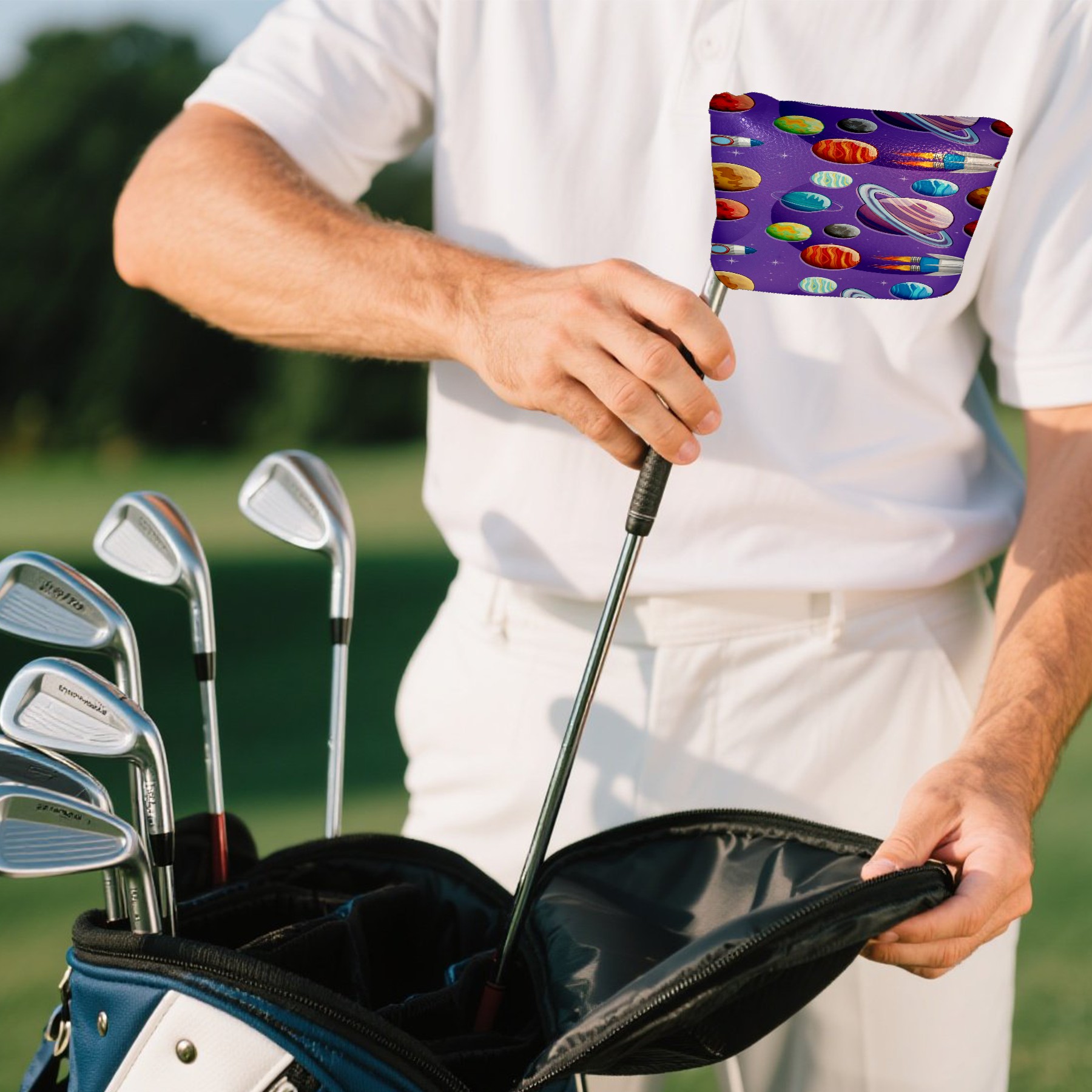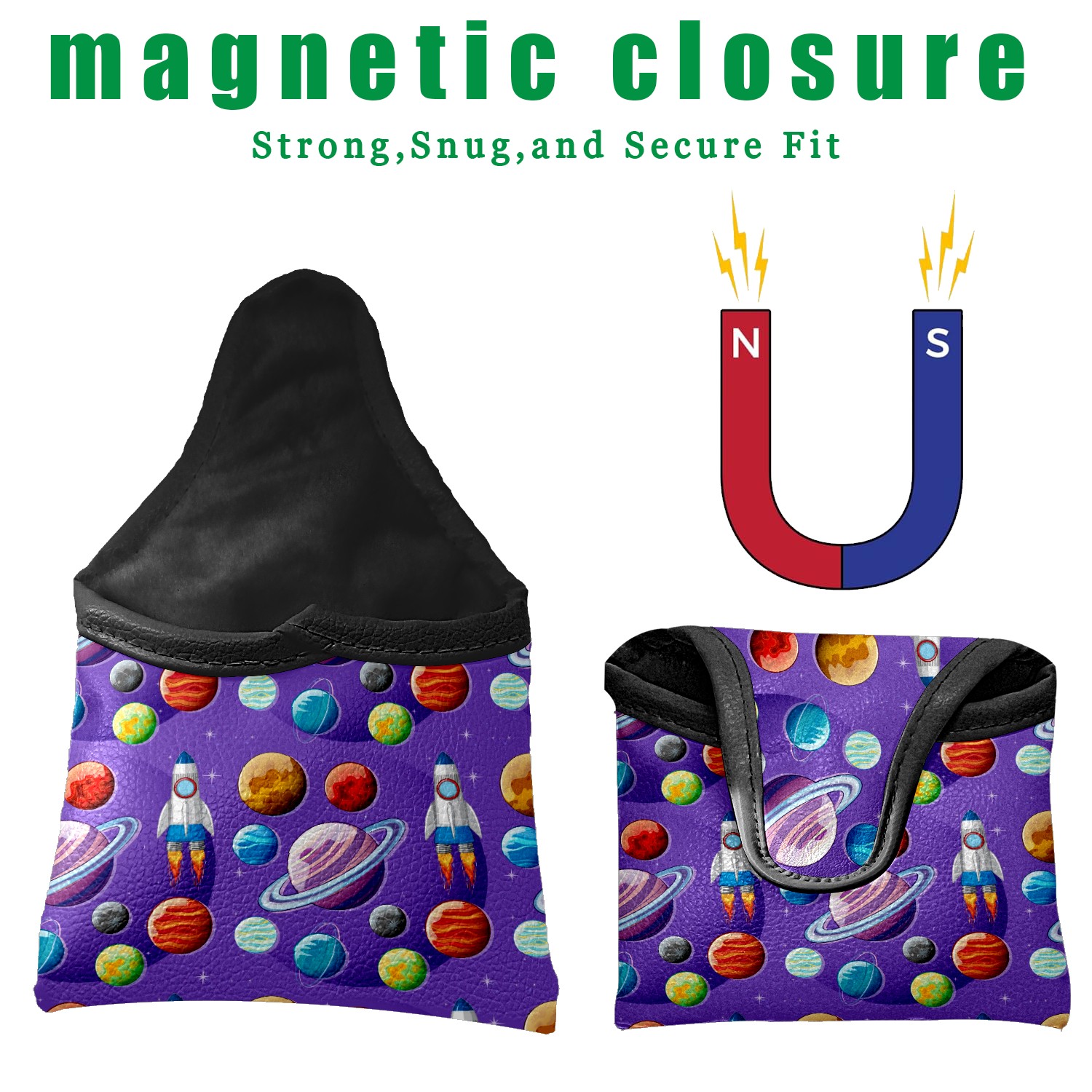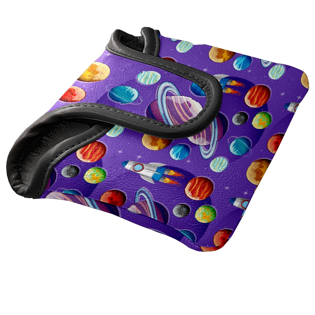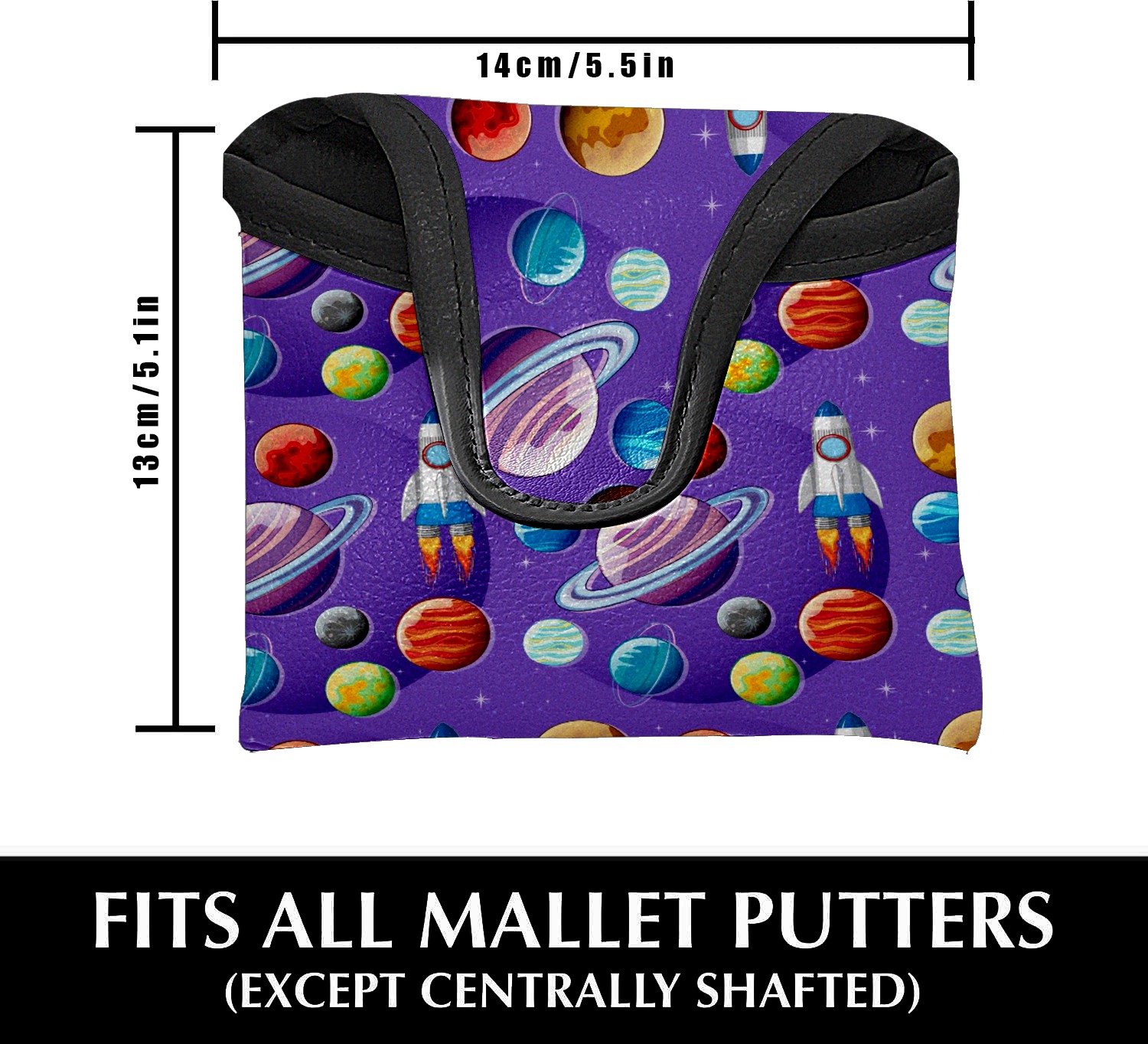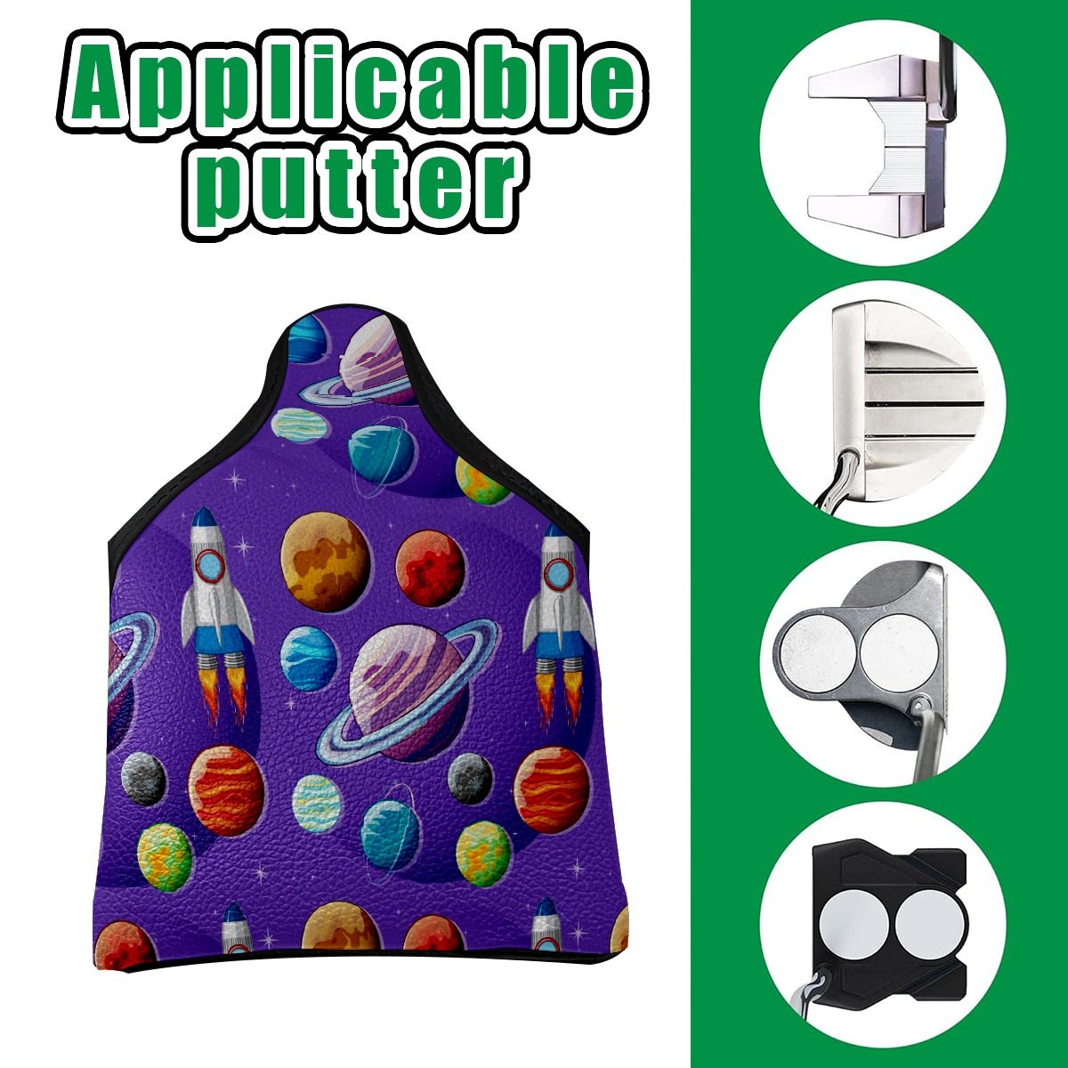 Mallet Putter Cover Magnetic PU Leather Golf Putter Headcover with Plush Lining, Mallet Putter Head Cover for Men Women Golf Club Covers (Outer Space Planets Purple)