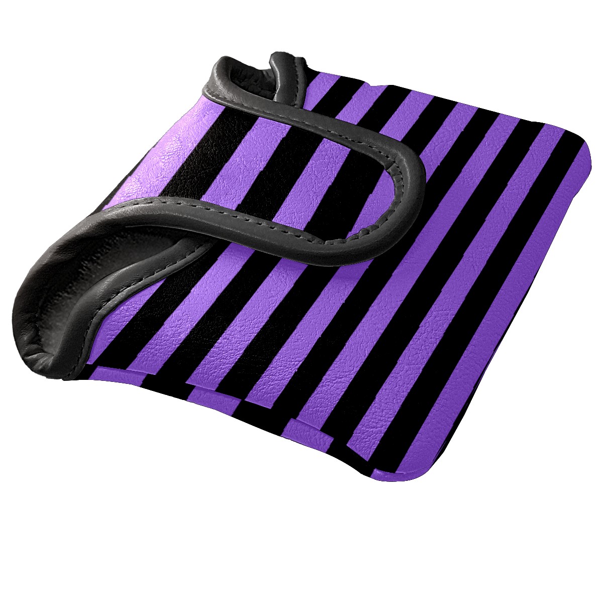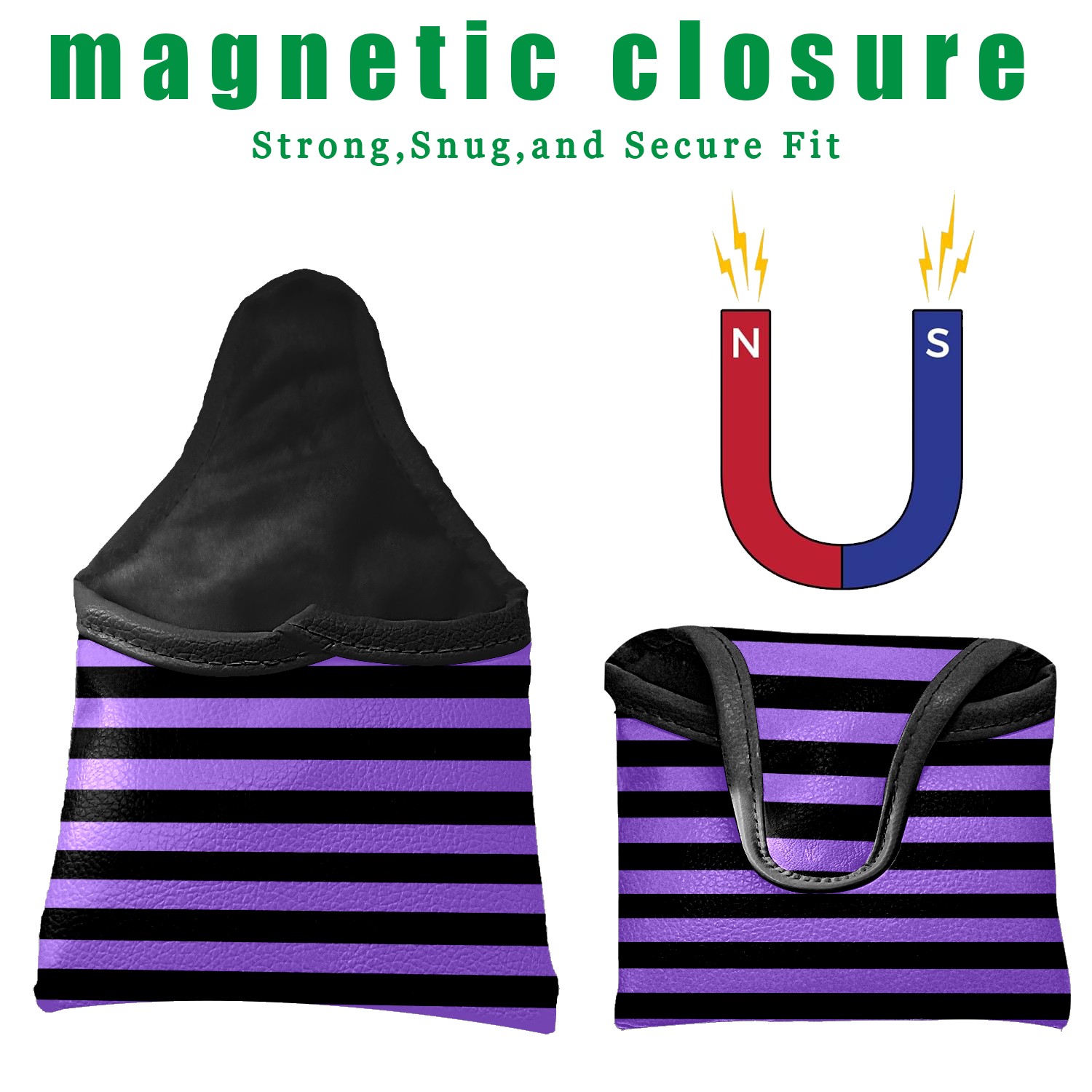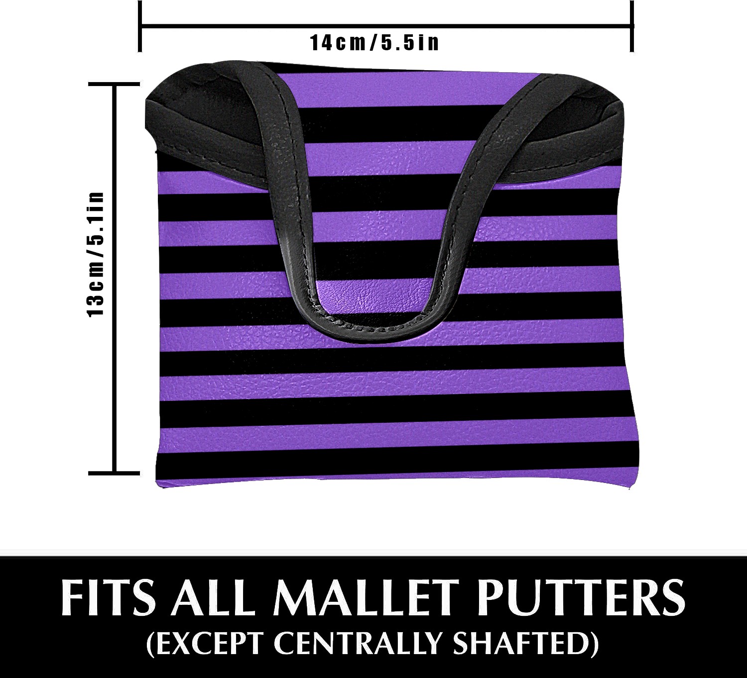 Mallet Putter Cover Magnetic PU Leather Golf Putter Headcover with Plush Lining, Mallet Putter Head Cover for Men Women Golf Club Covers (Black And Purple Stripe Pattern)