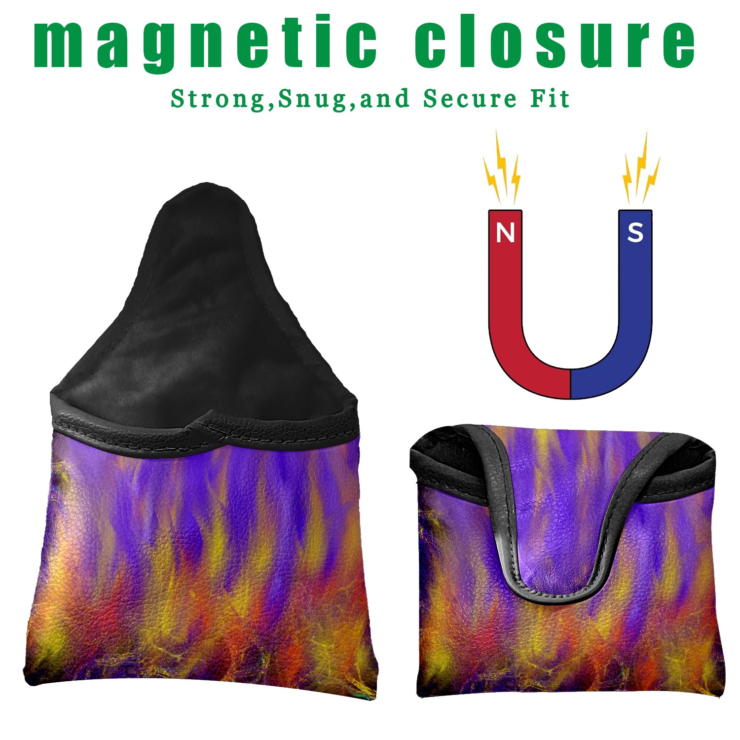 Mallet Putter Cover Magnetic PU Leather Golf Putter Headcover with Plush Lining, Mallet Putter Head Cover for Men Women Golf Club Covers (Abstract Art Purple Holy Spirit Fire)