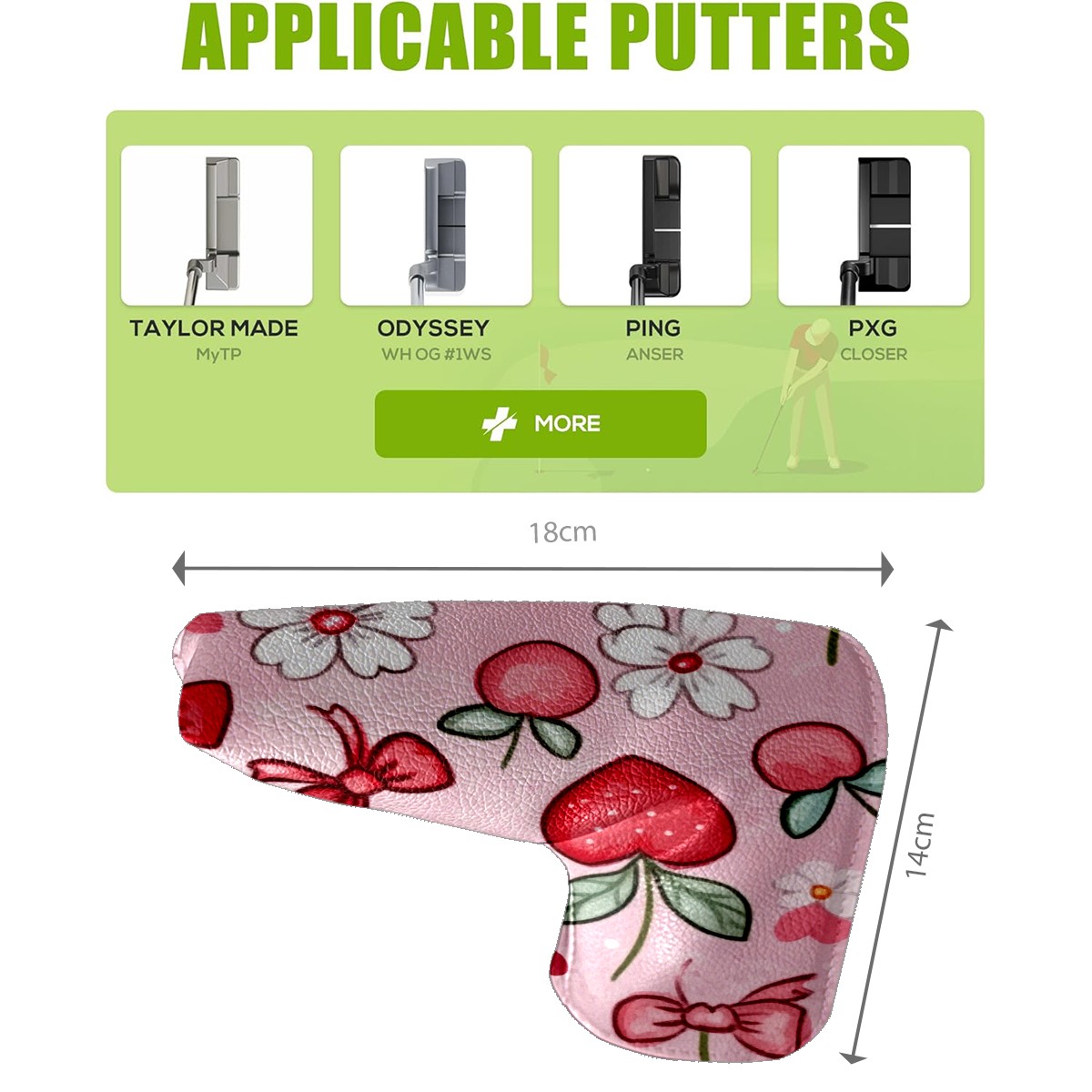 Golf Club Head Covers for Blade Putter, Waterproof Leather Headcovers for Golf Clubs, Ideal Golf Accessories Gift for Men Women (Red And White Hearts)