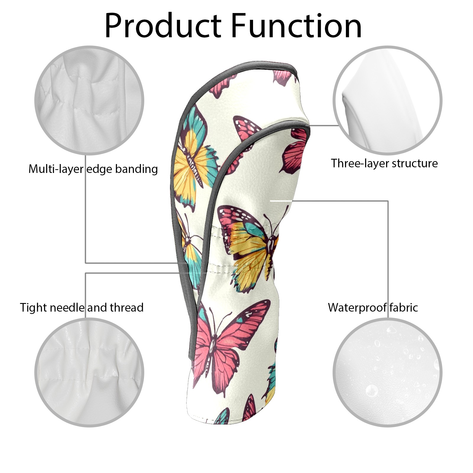Golf Club Head Cover Golf Club Covers For driver club cover waterproof Head covers Colorful Butterflies